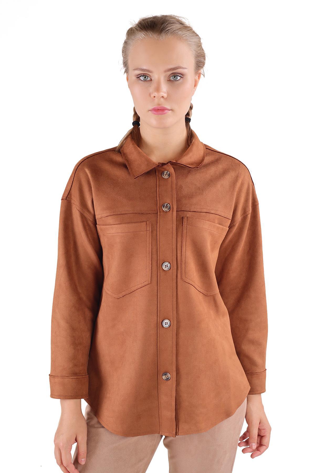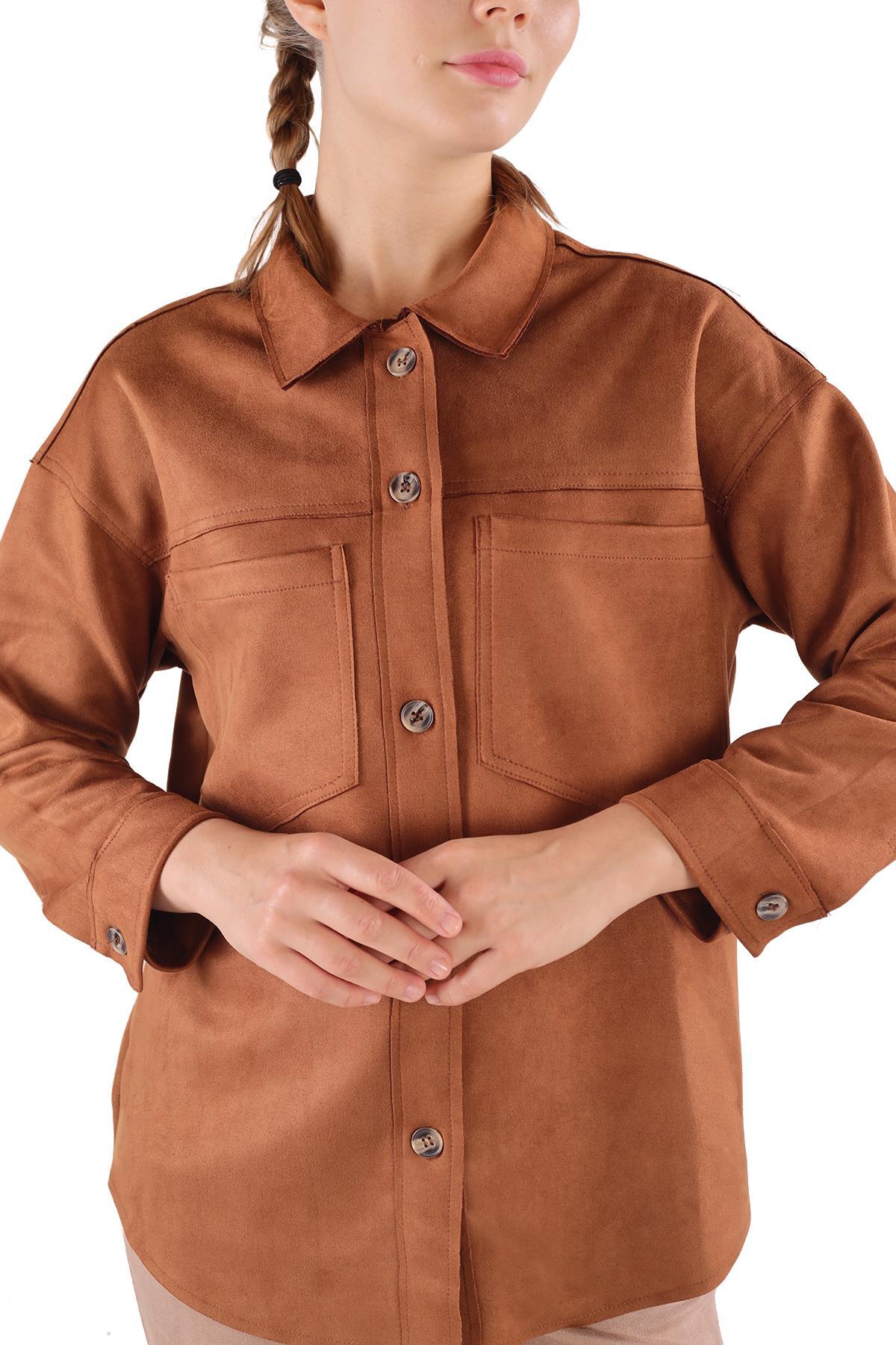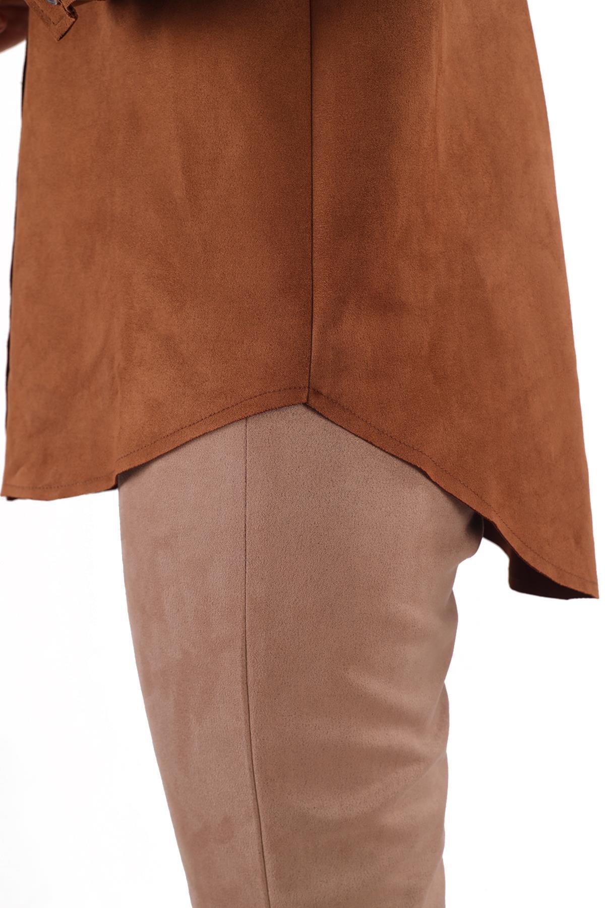 Taba Spor Dikiş Cep Detay Süet Gömlek 7325A