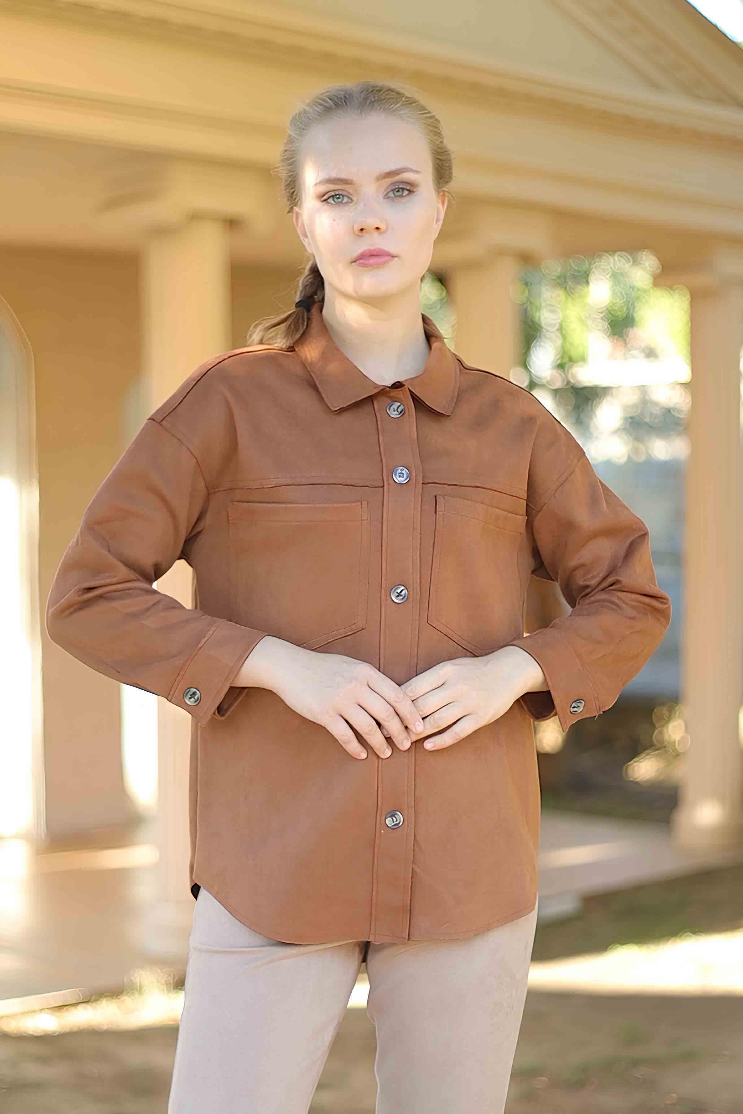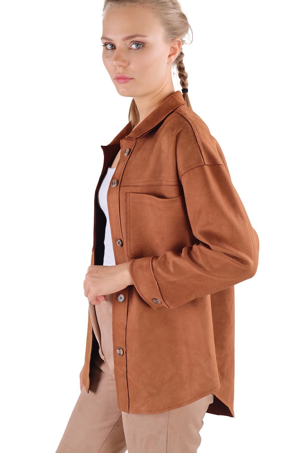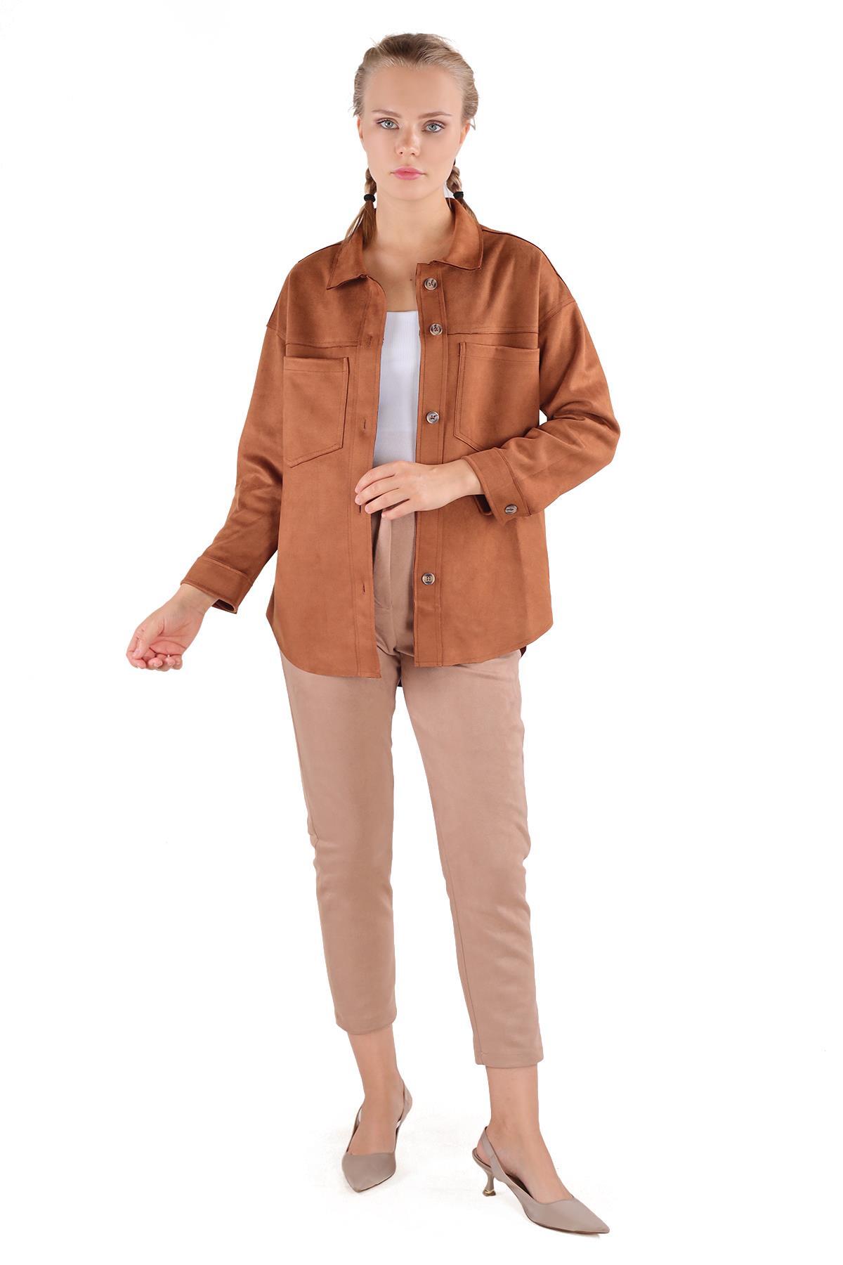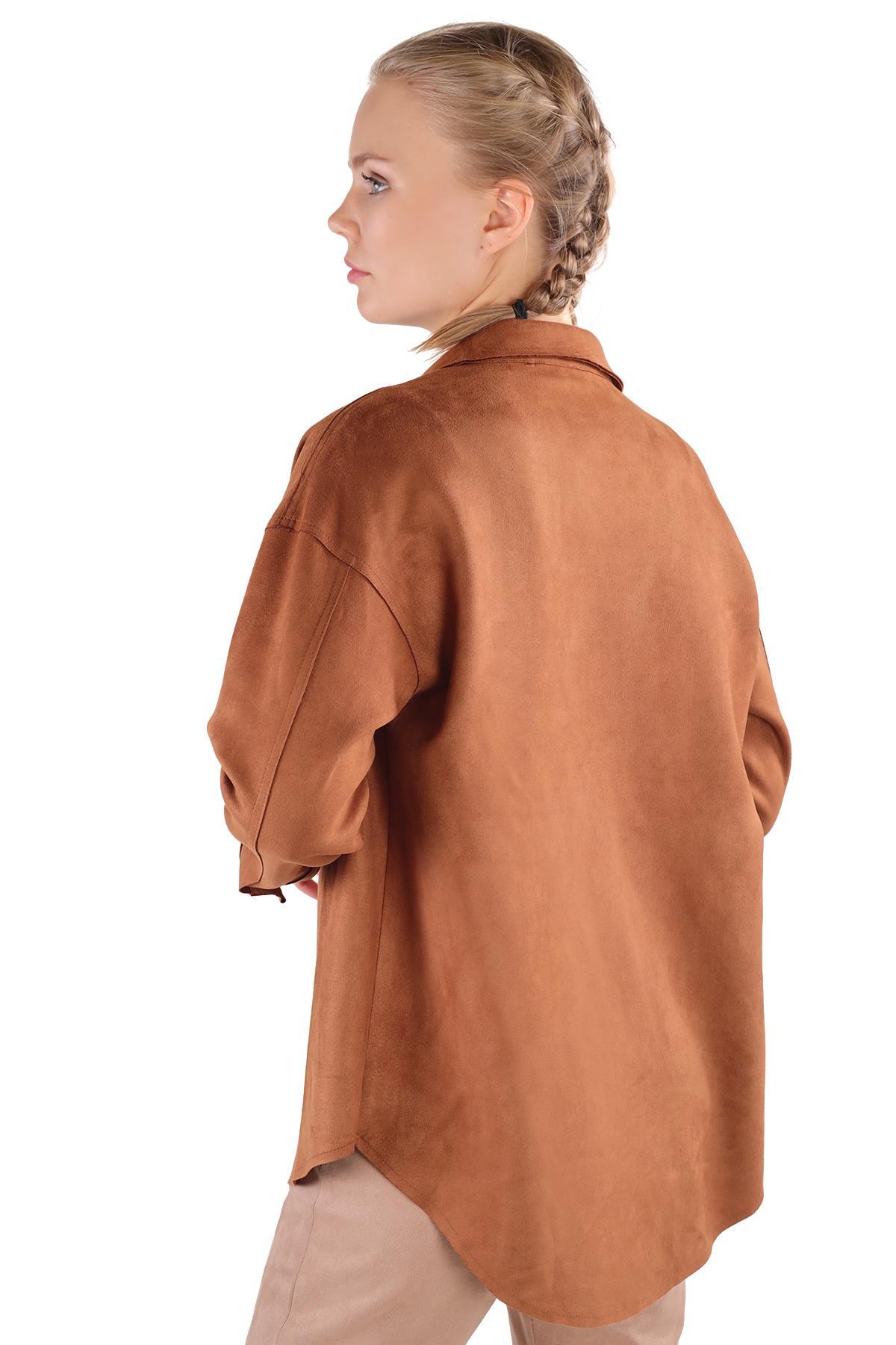 Taba Spor Dikiş Cep Detay Süet Gömlek 7325A
