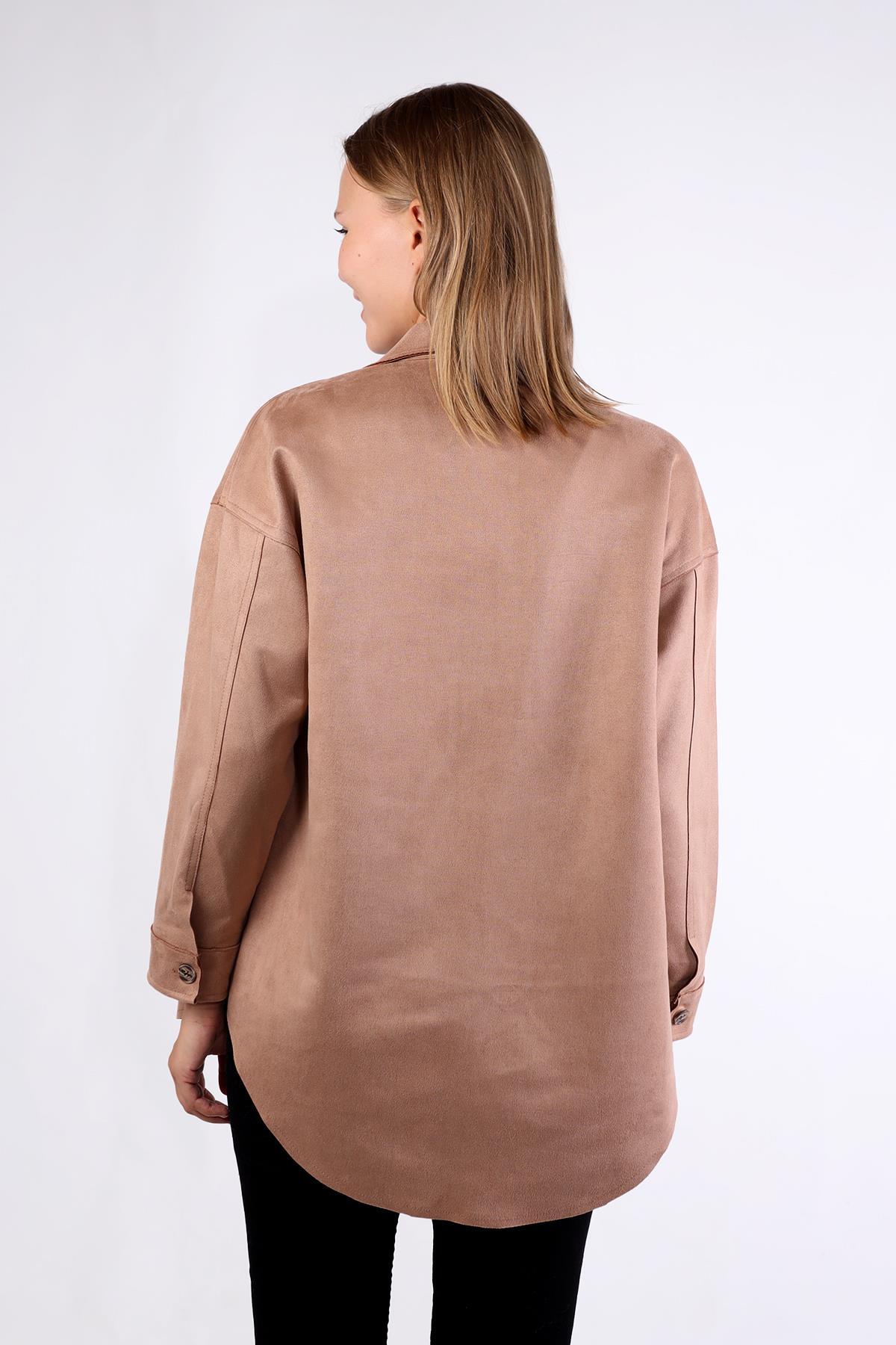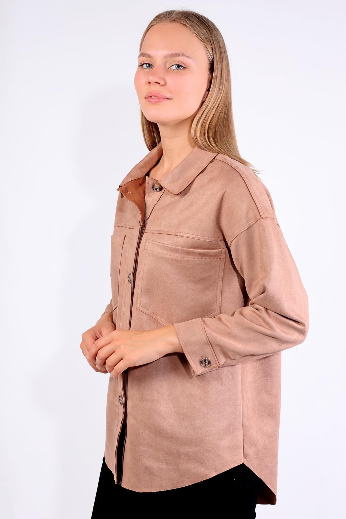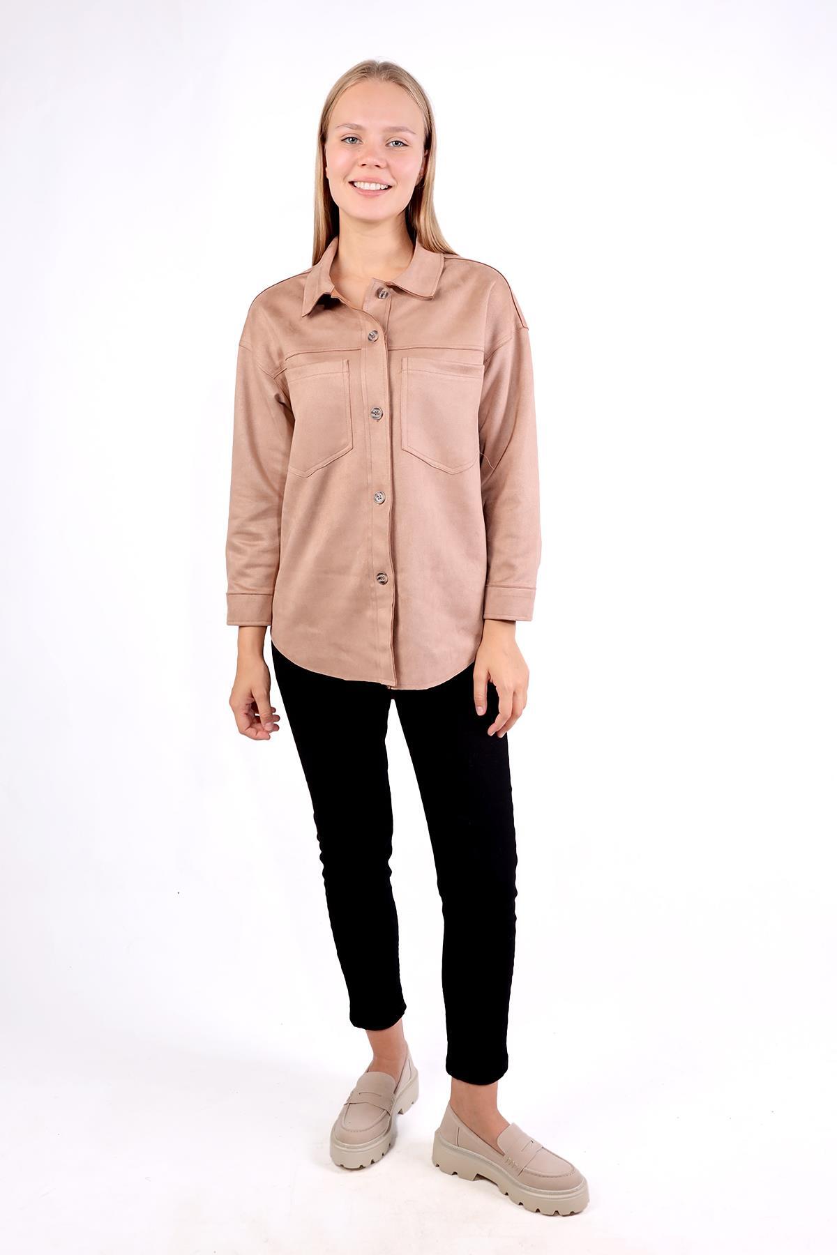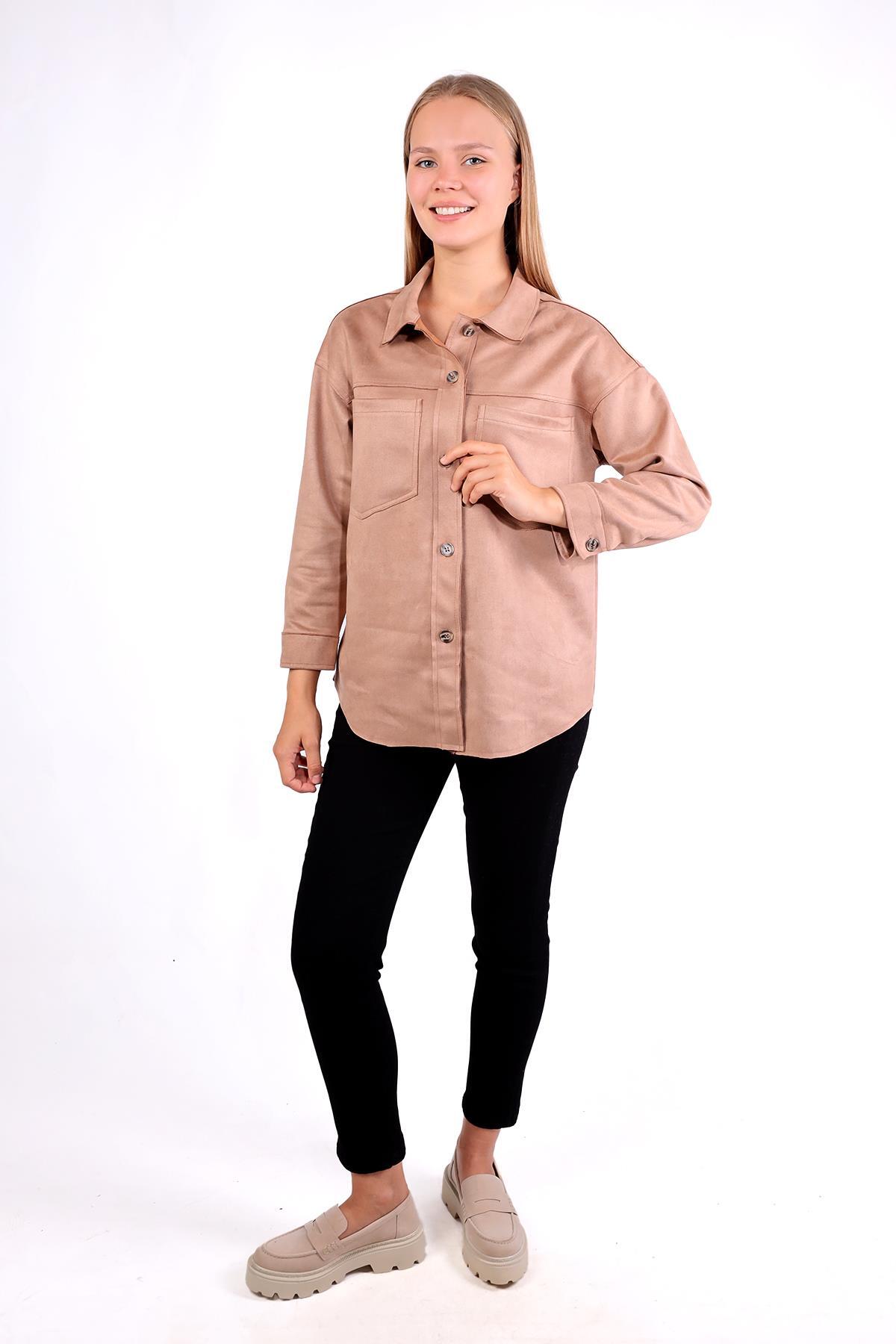 Vizon Spor Dikiş Cep Detay Süet Gömlek 7325A