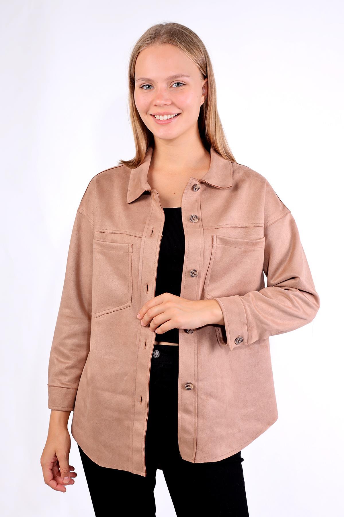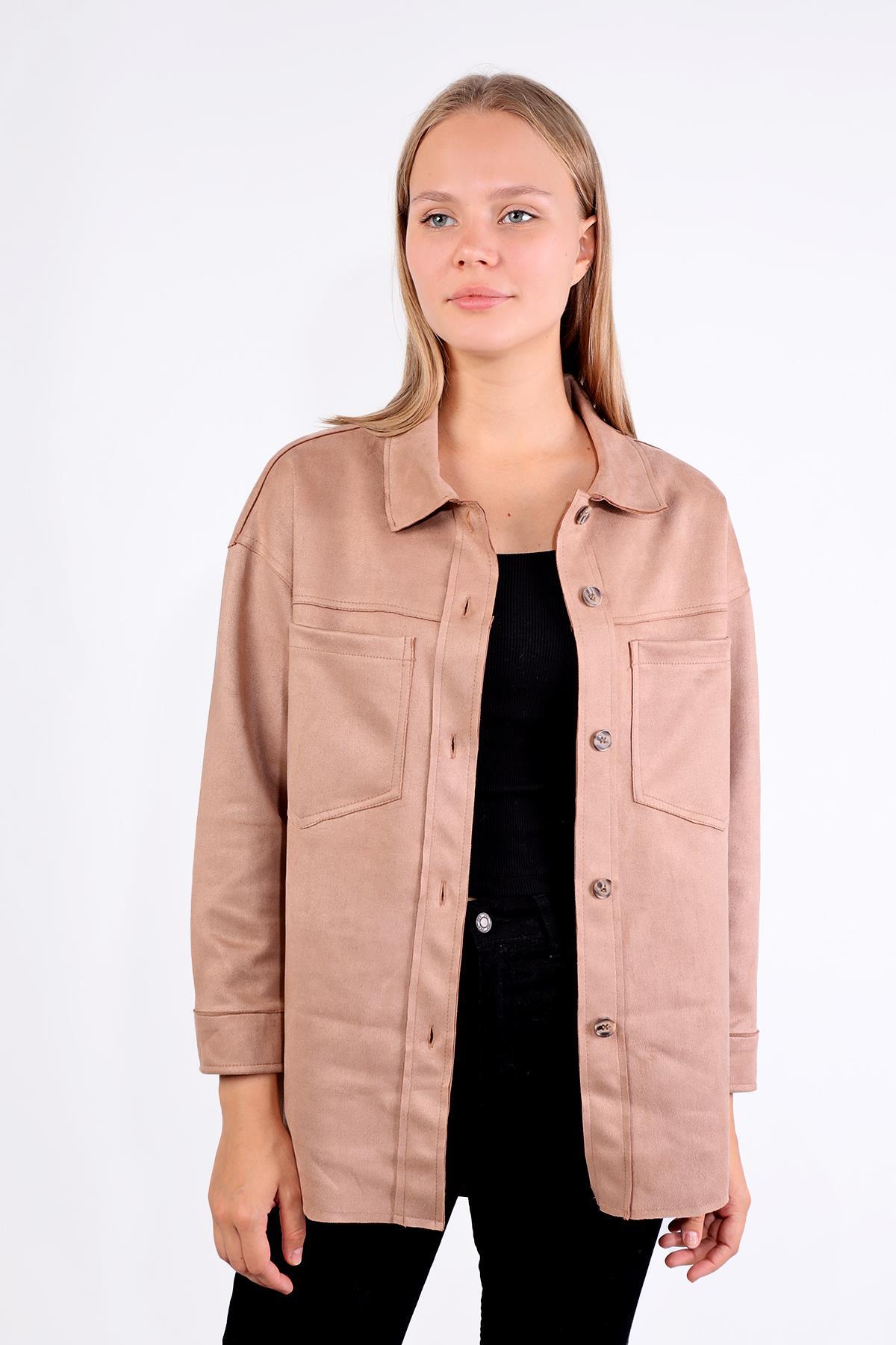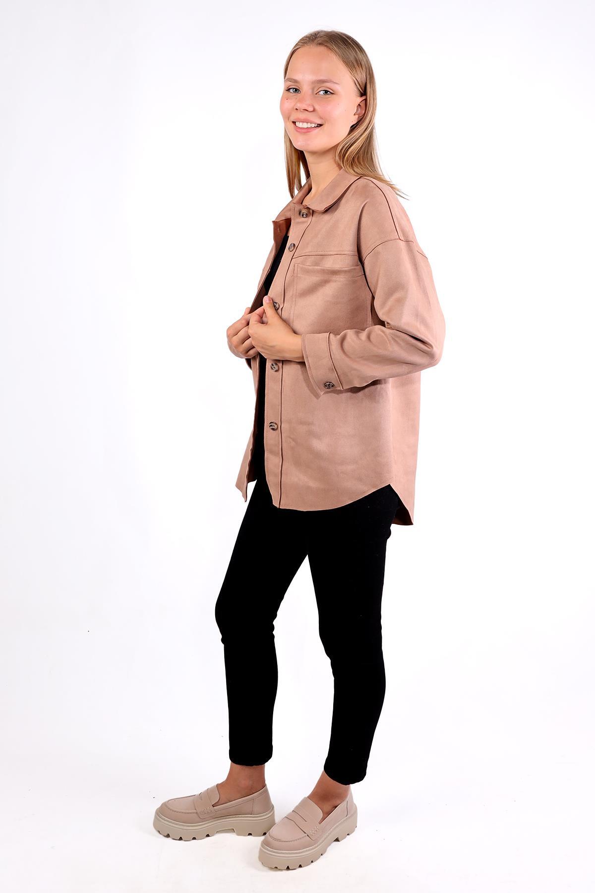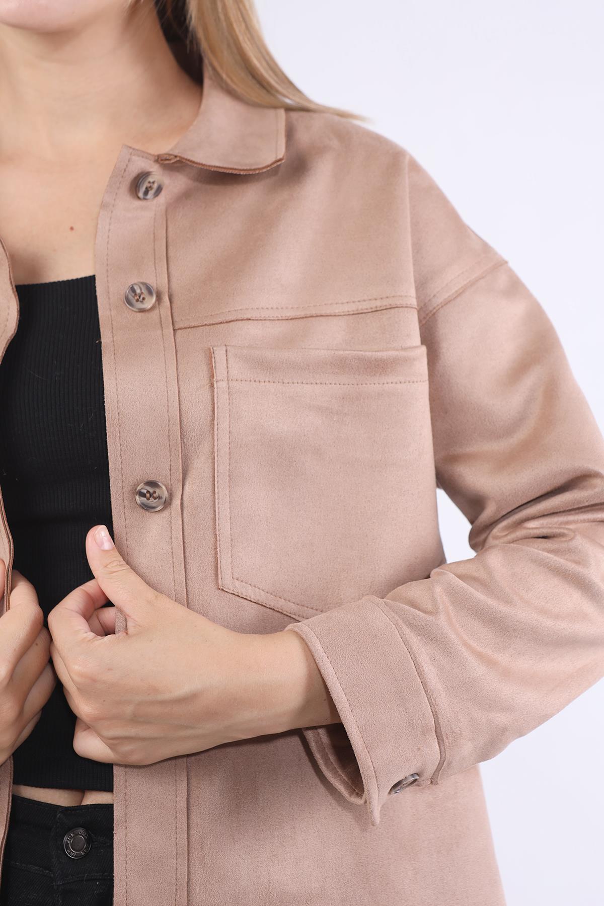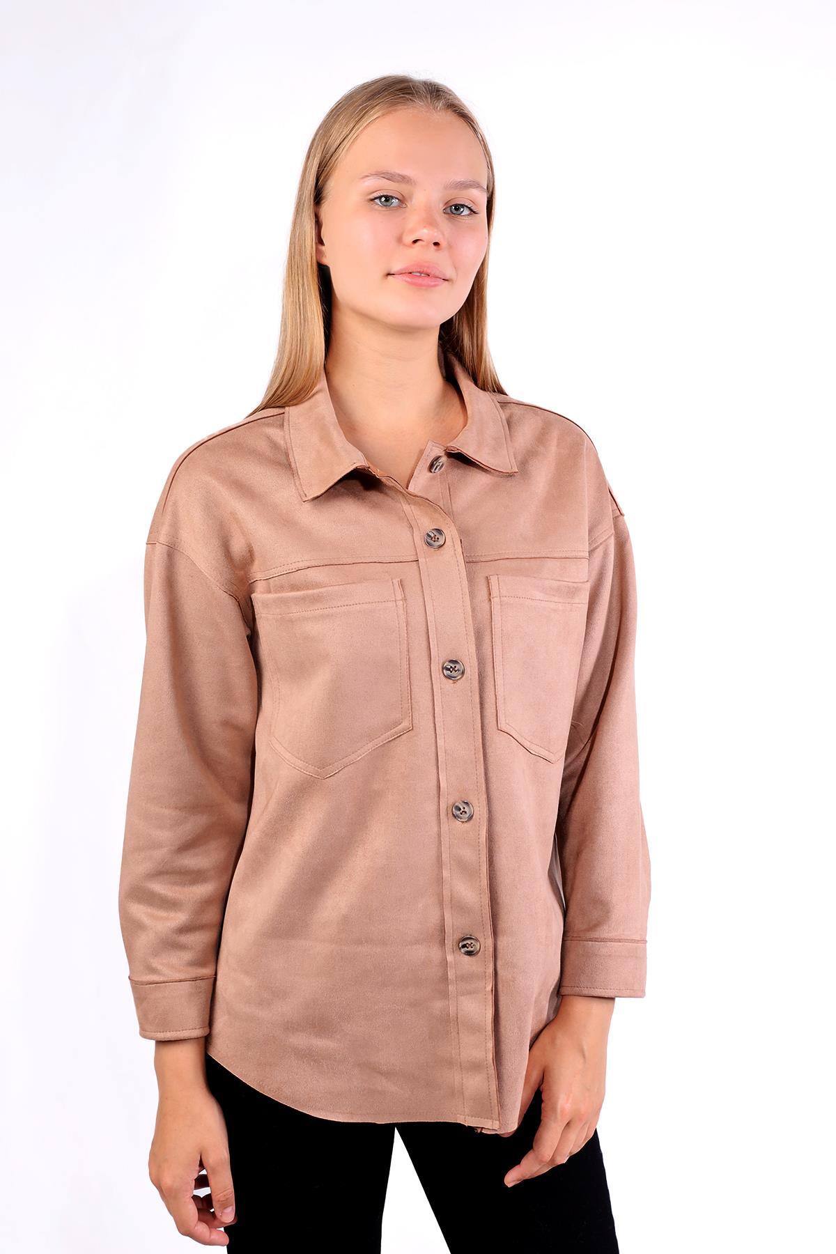 Vizon Spor Dikiş Cep Detay Süet Gömlek 7325A