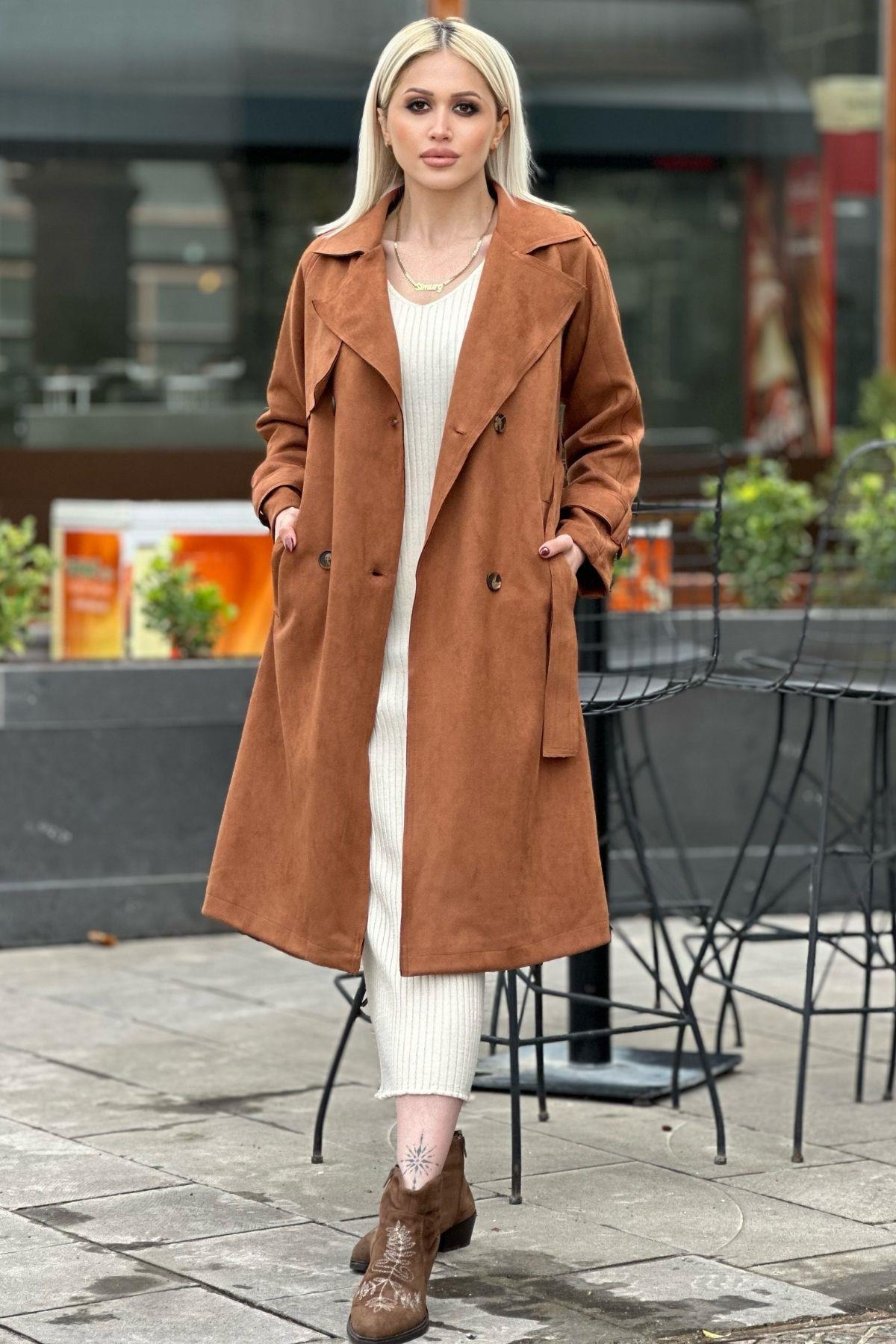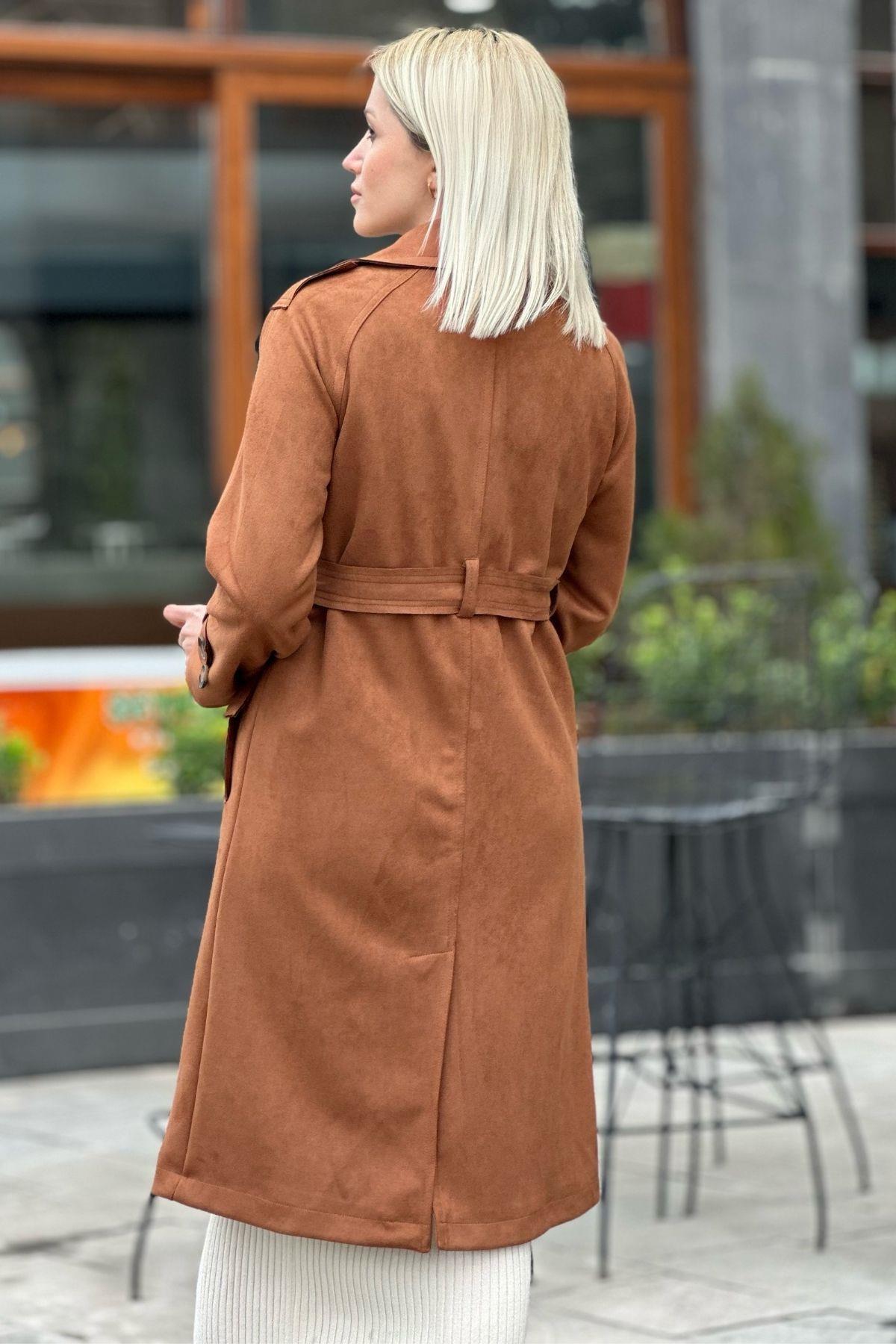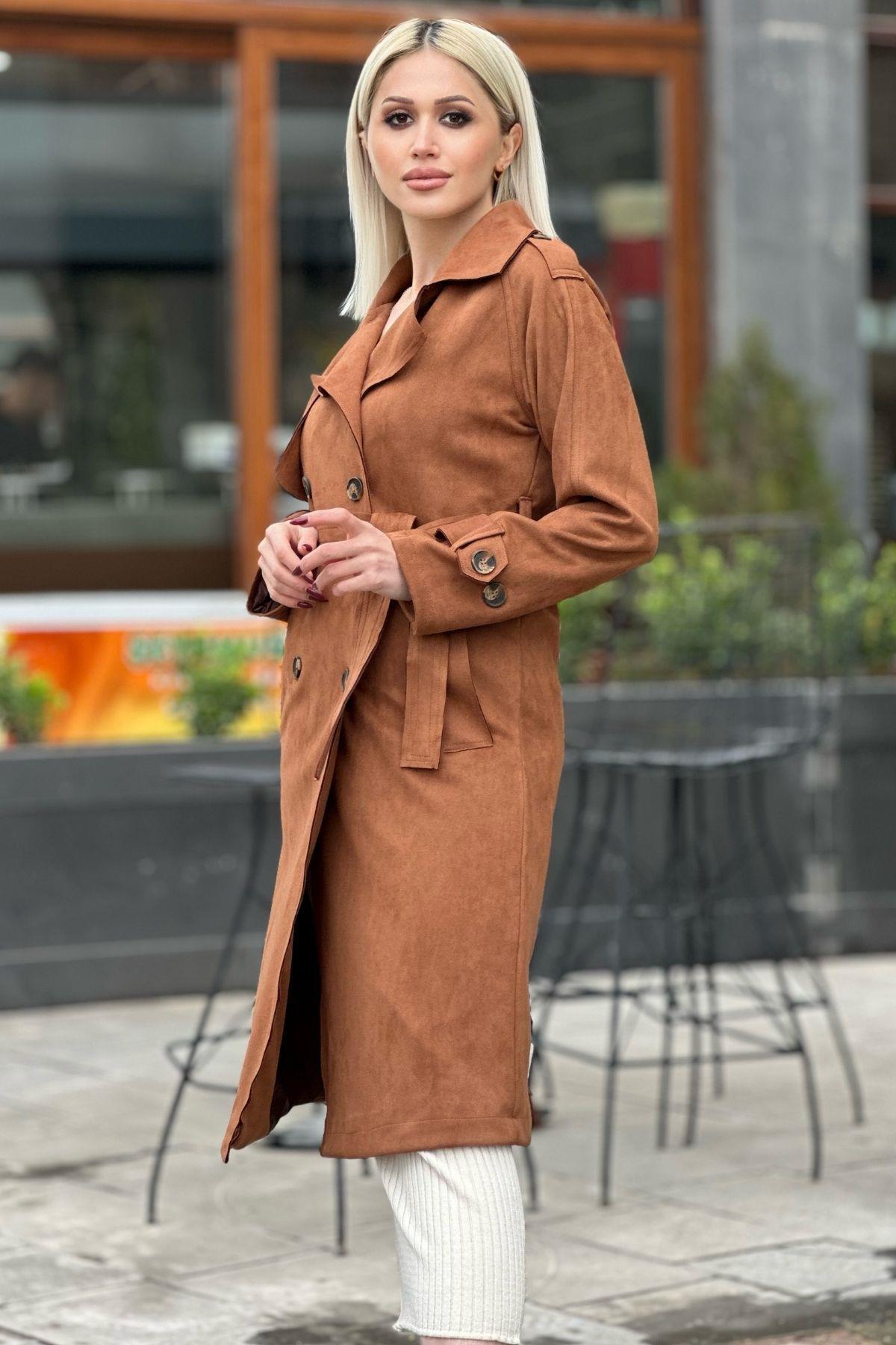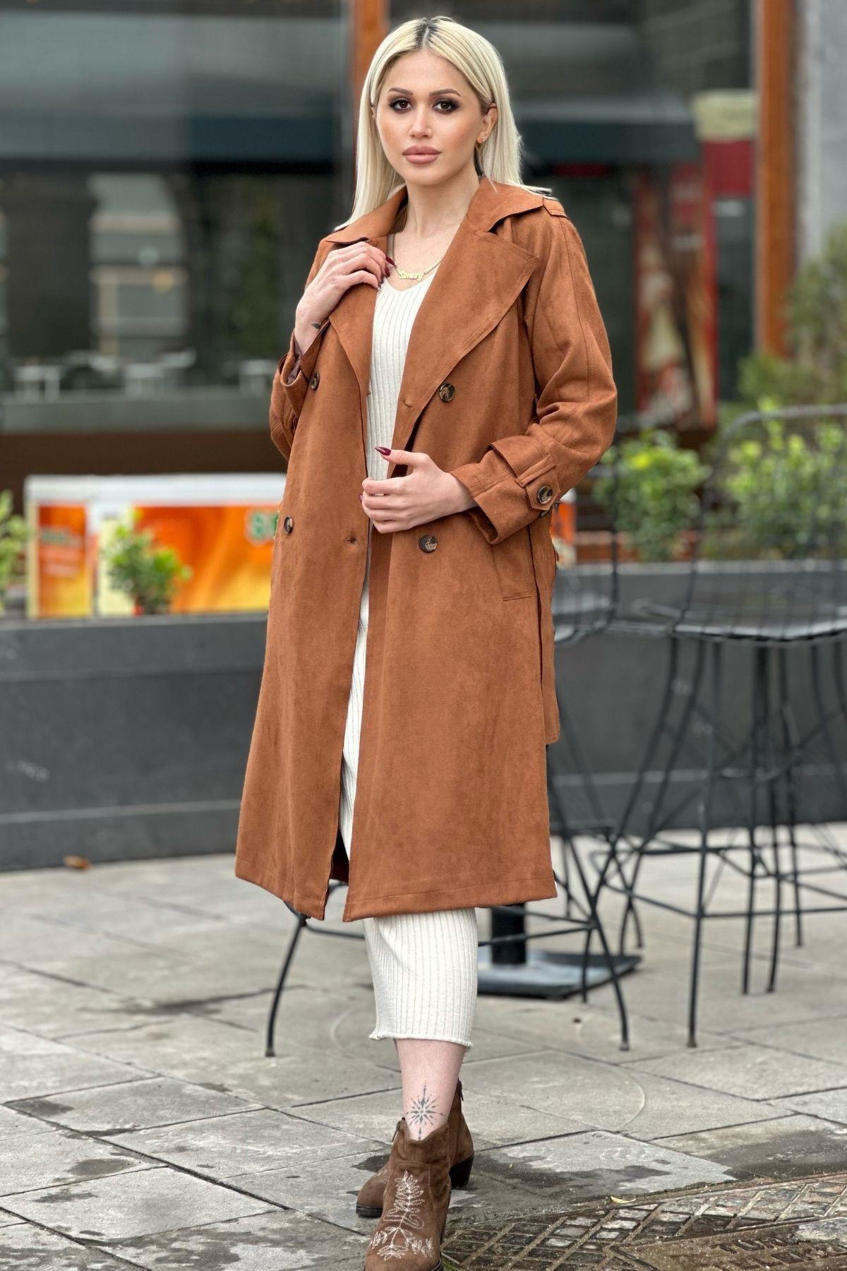 Taba Parça Detay Düğmeli Trençkot 7328A