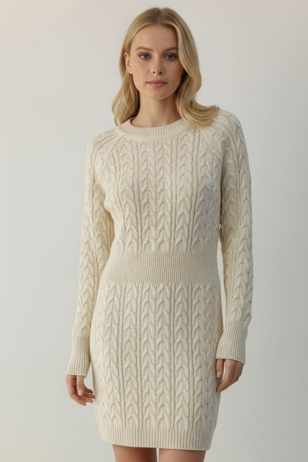 7330 Bisiklet Yaka Örgülü Elbise Natural