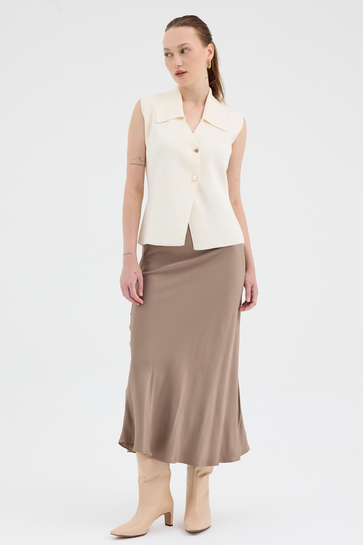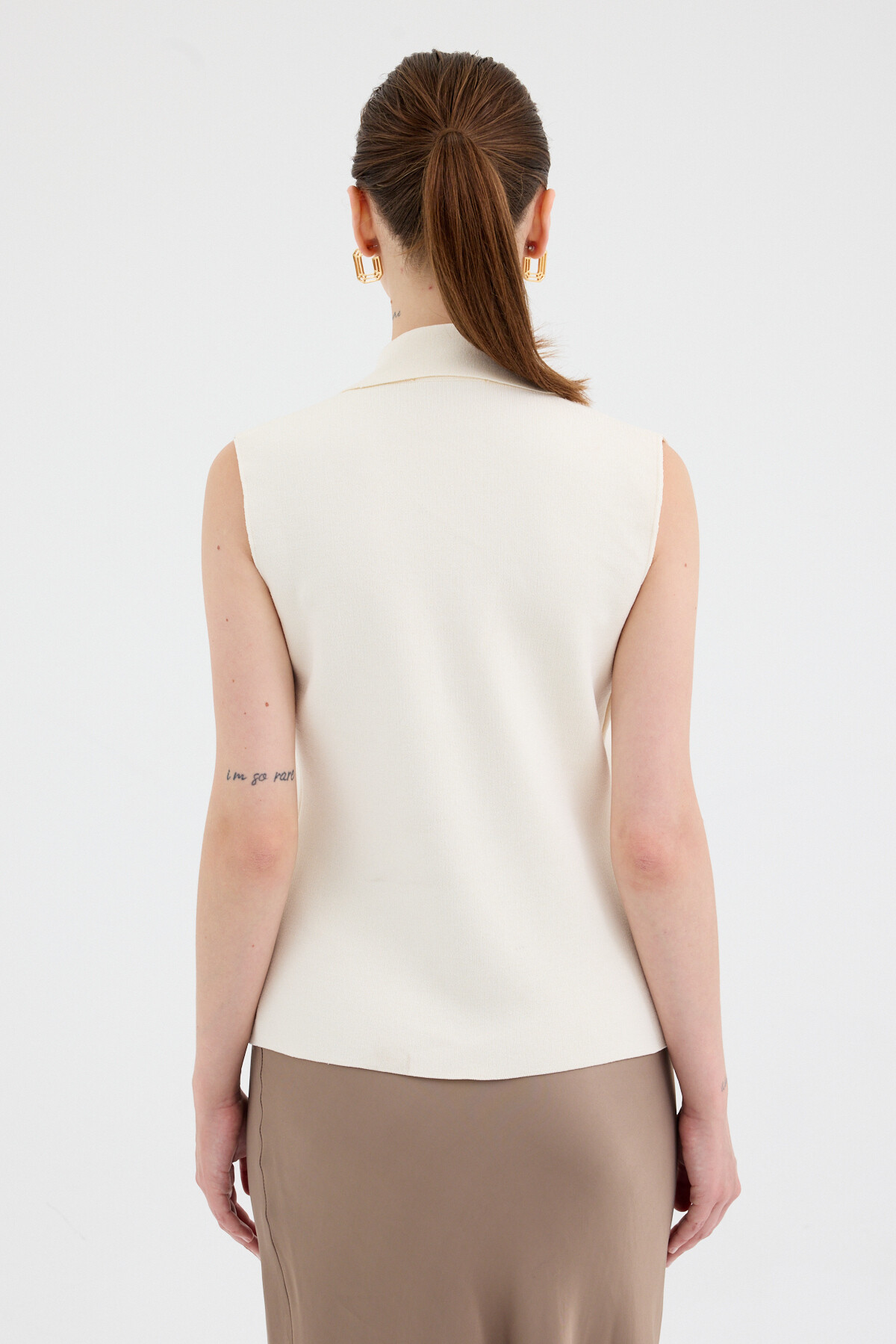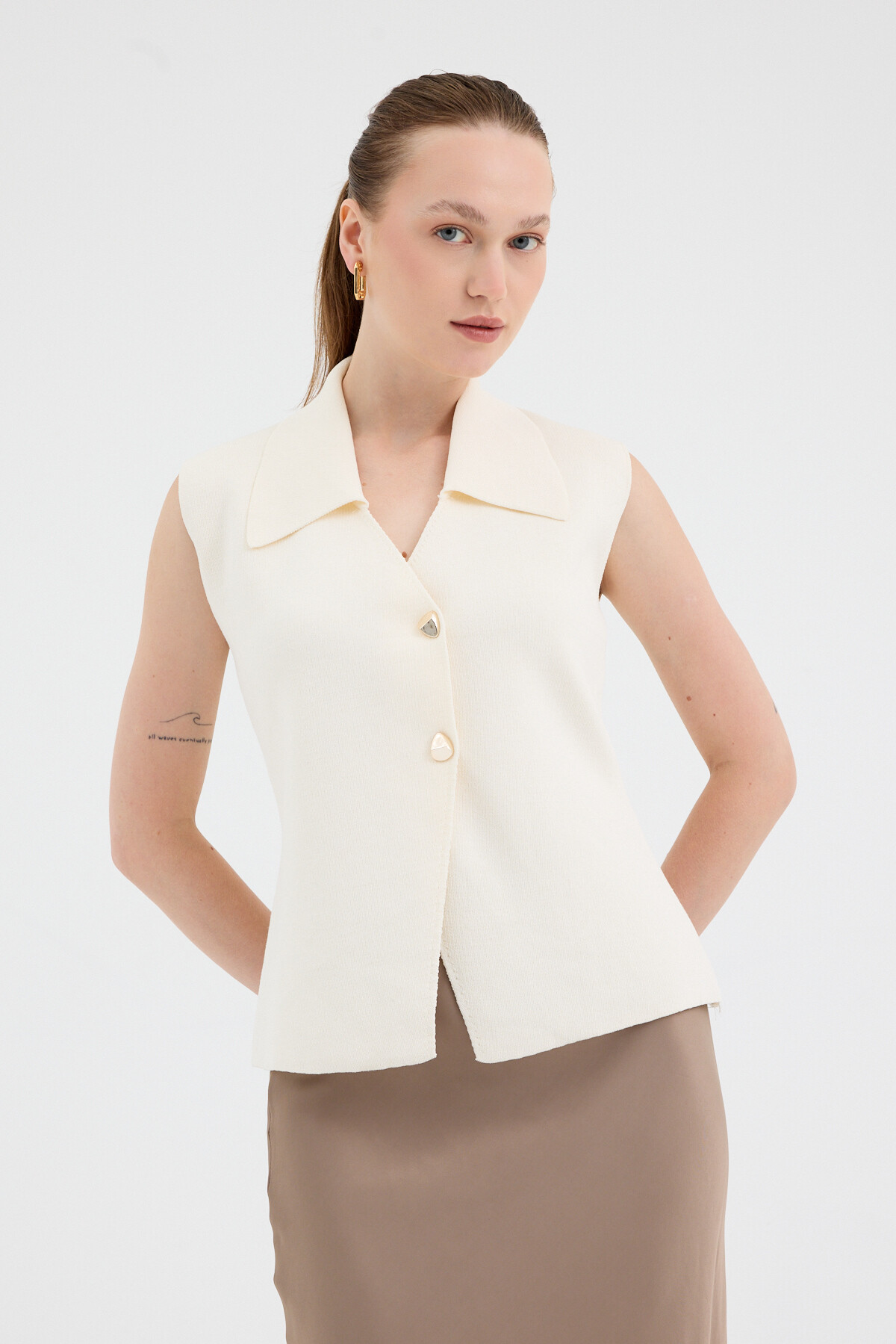 Natural Yaka Detaylı Düğmeli Triko Kadın Yelek 7355