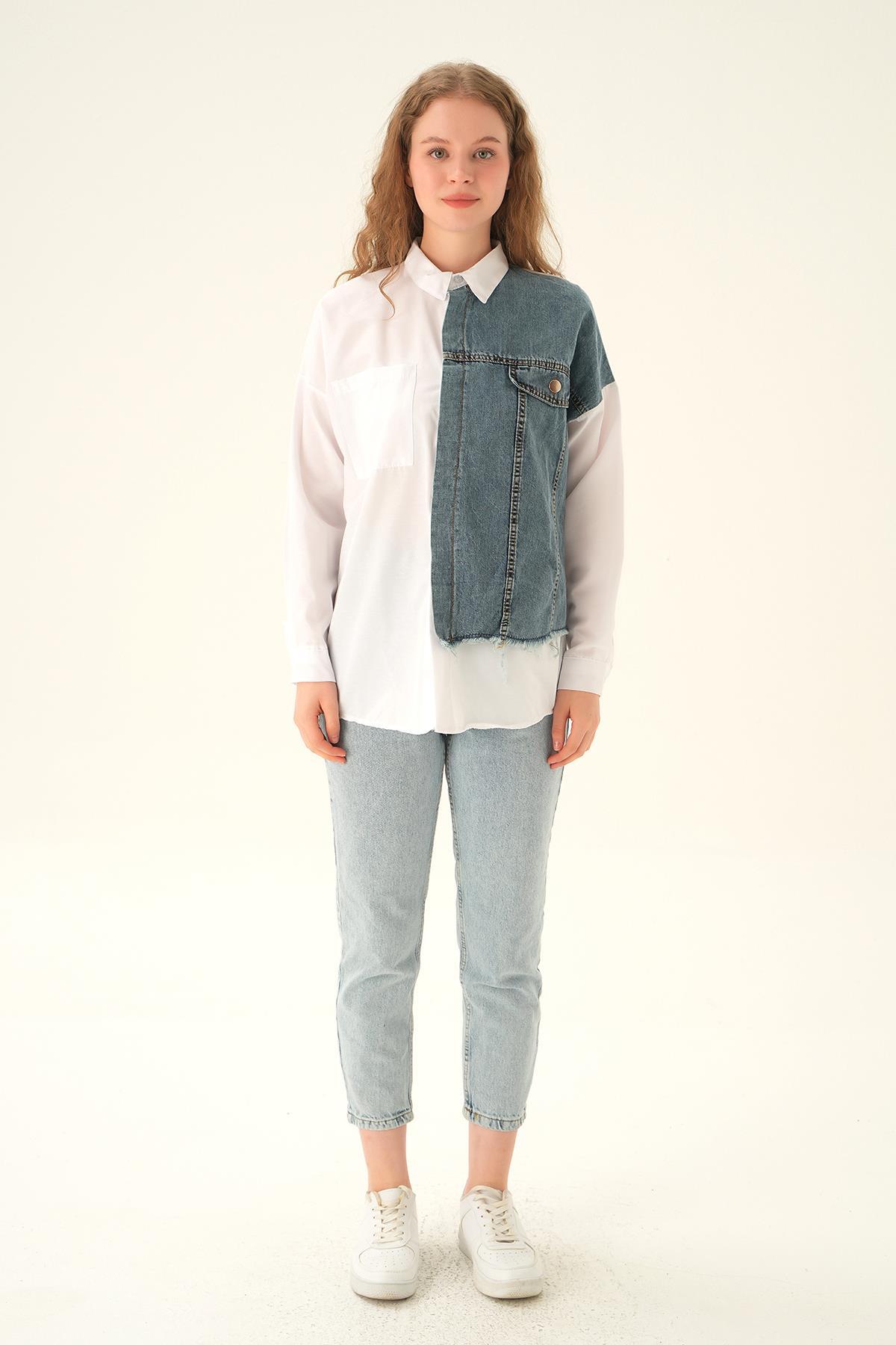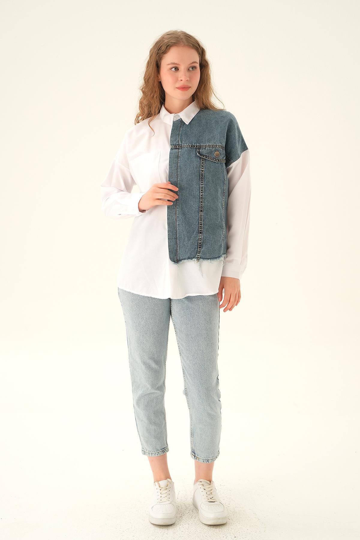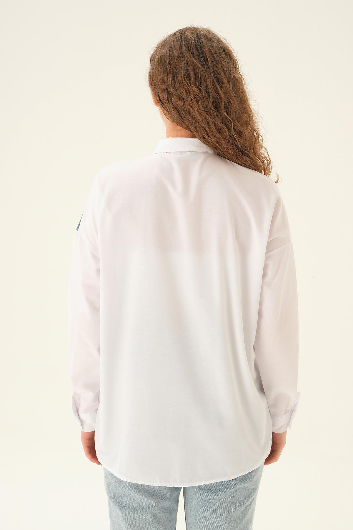 Beyaz Kot Detay Gömlek 7723