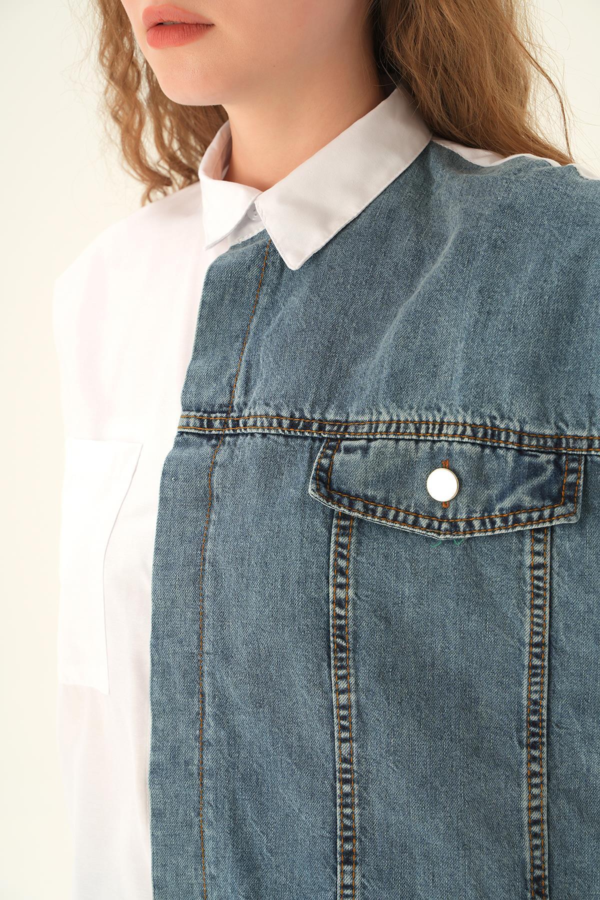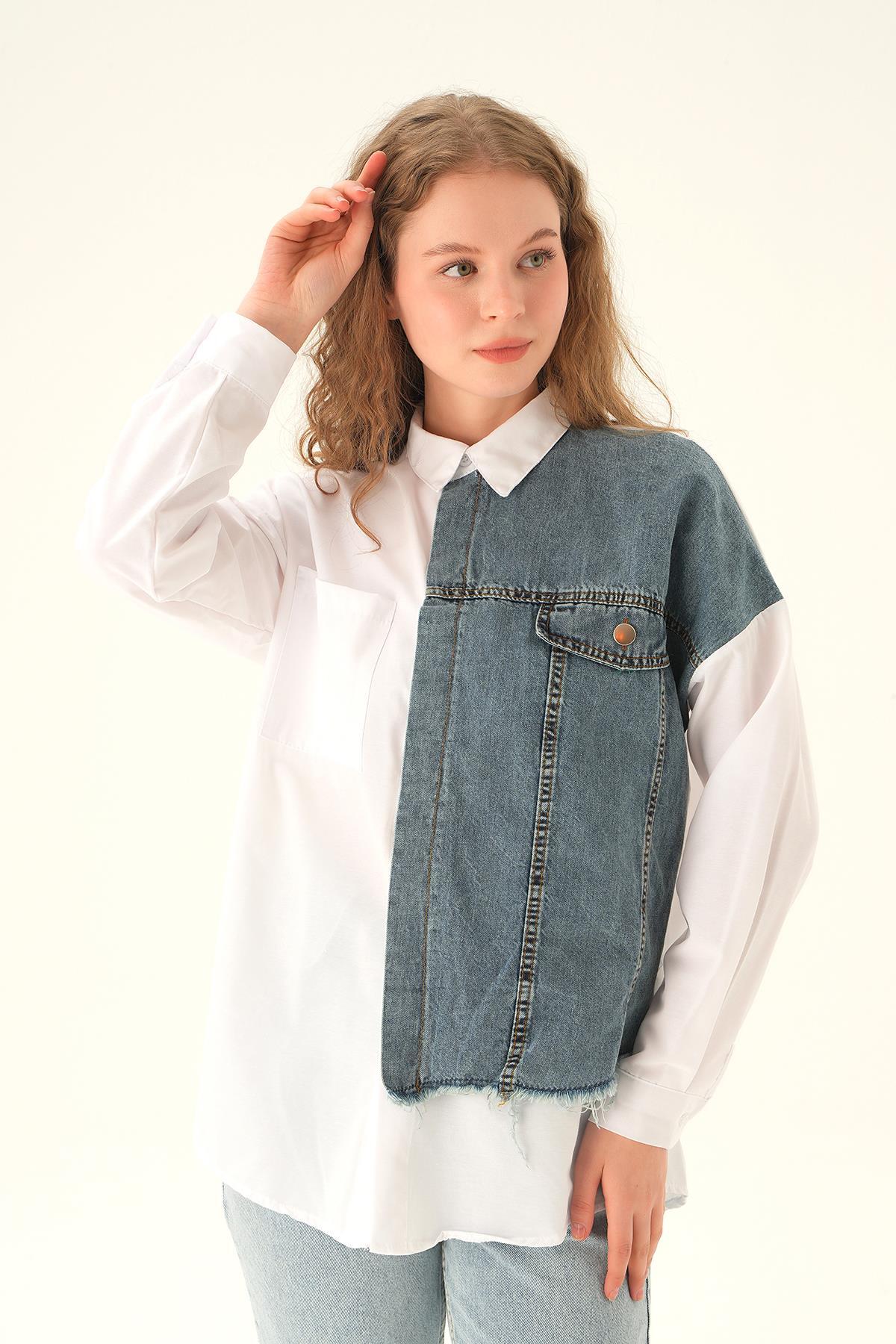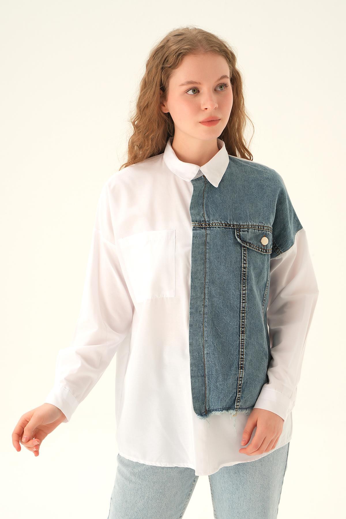 Beyaz Kot Detay Gömlek 7723
