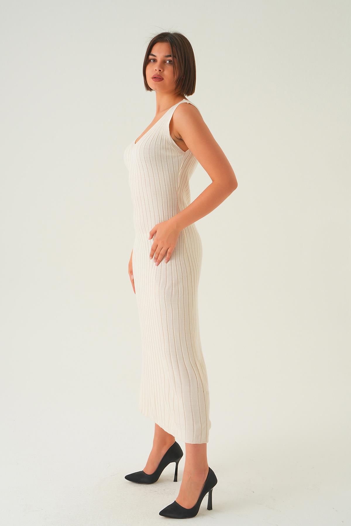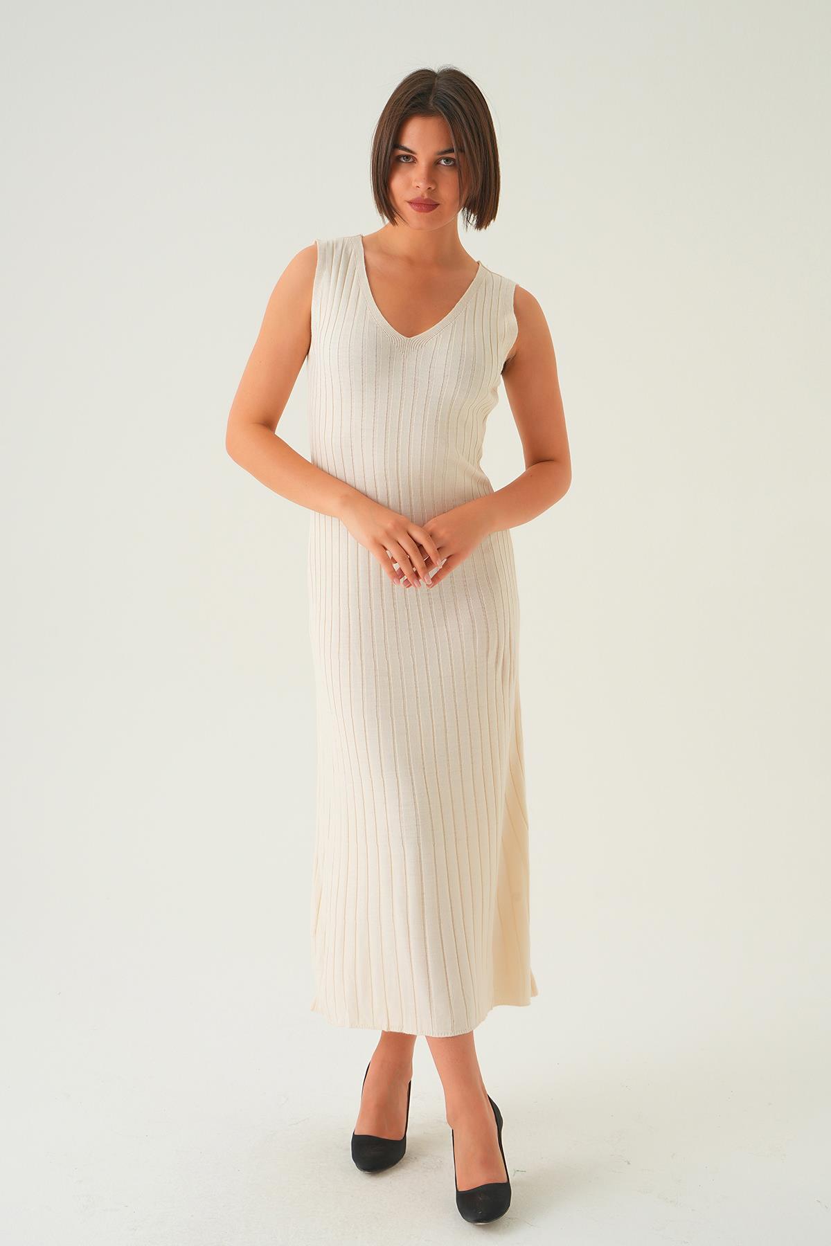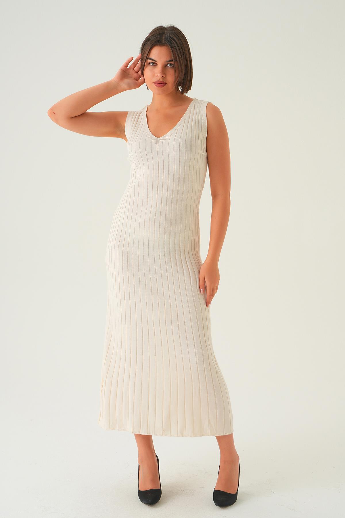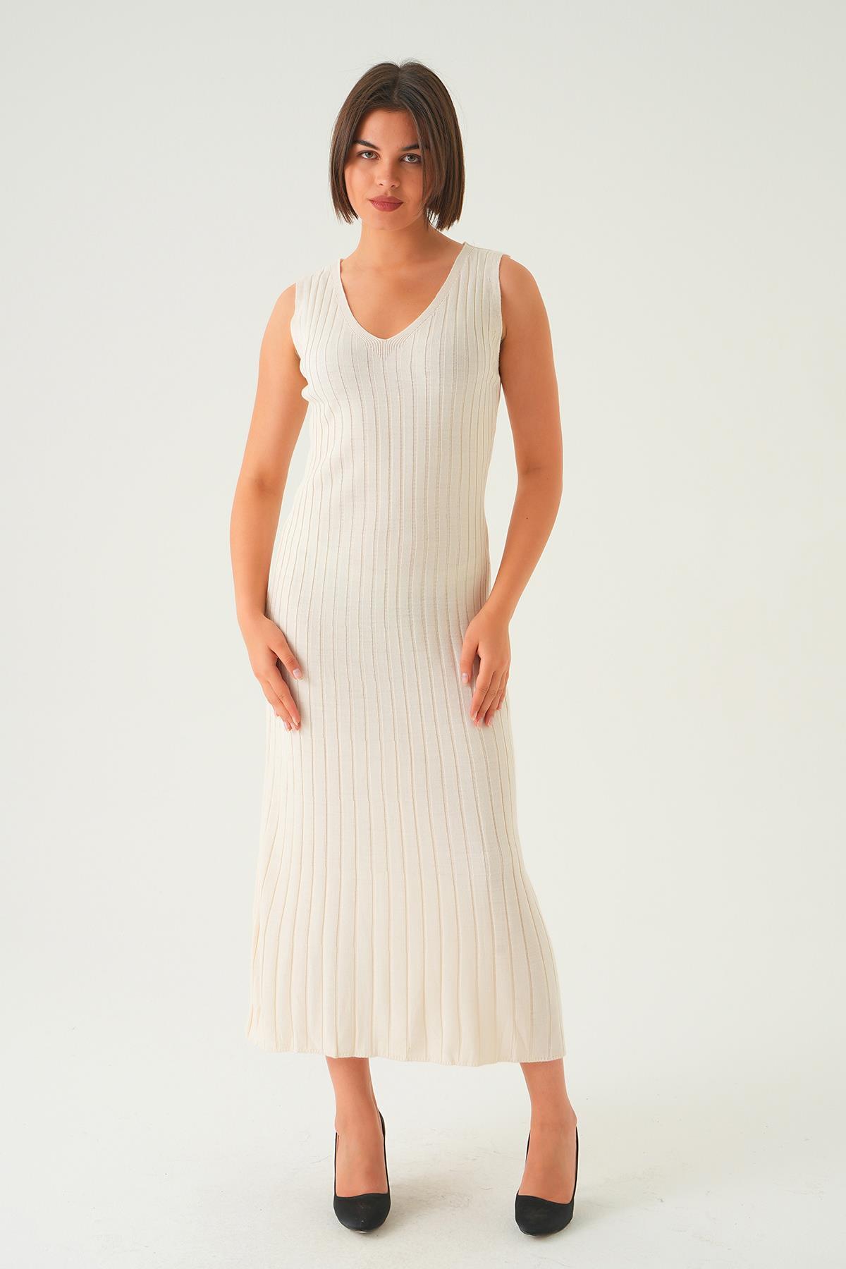 Kemik Askılı V Yaka Triko Elbise 77437