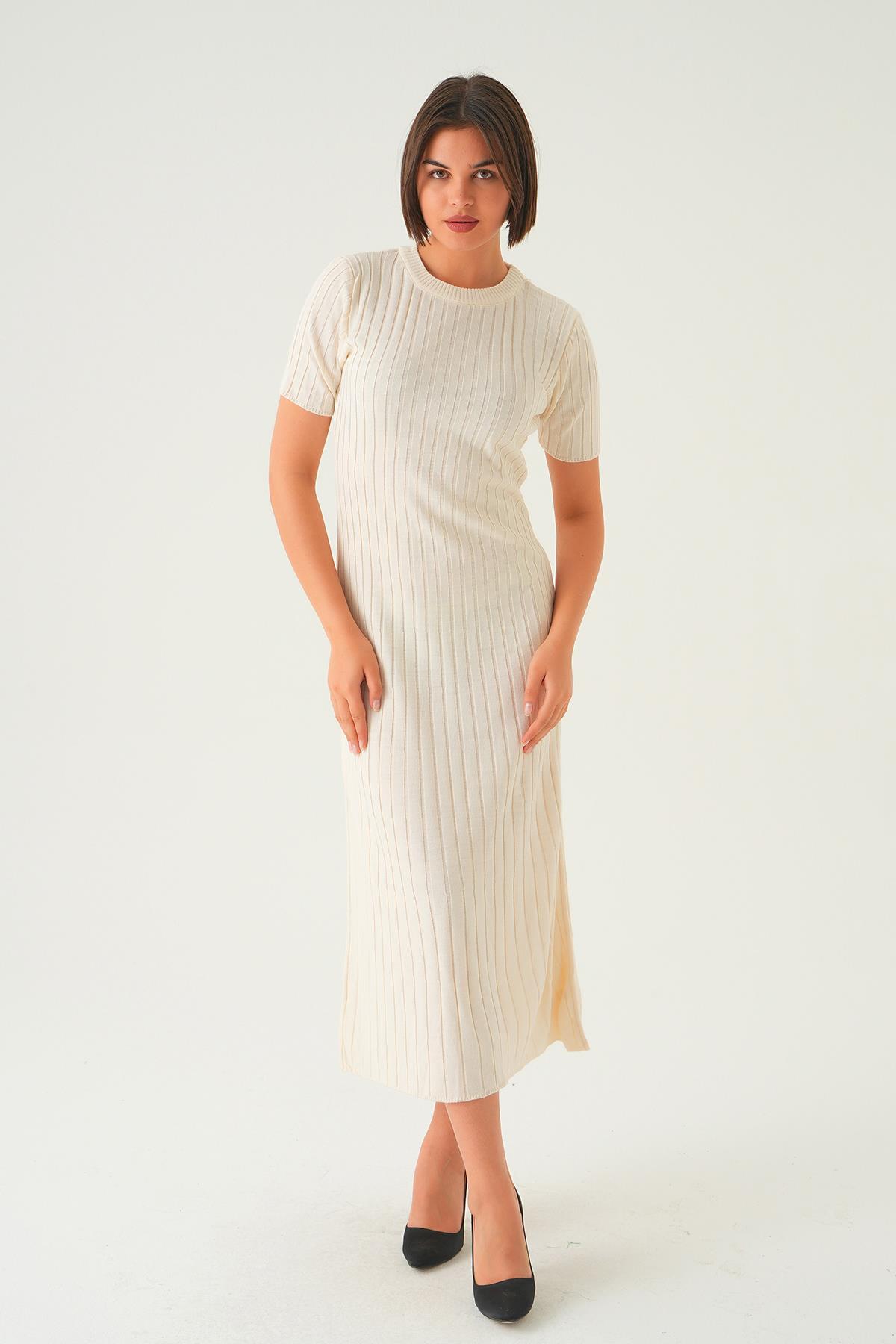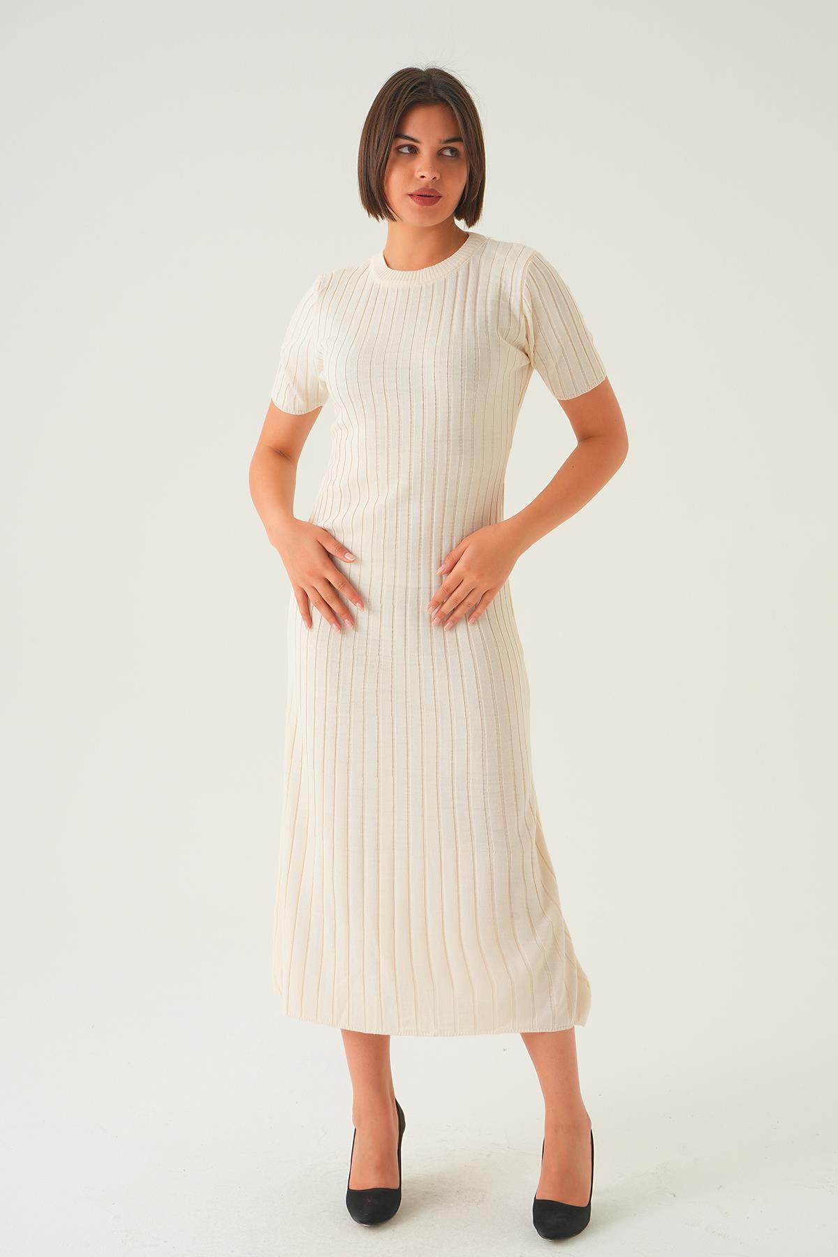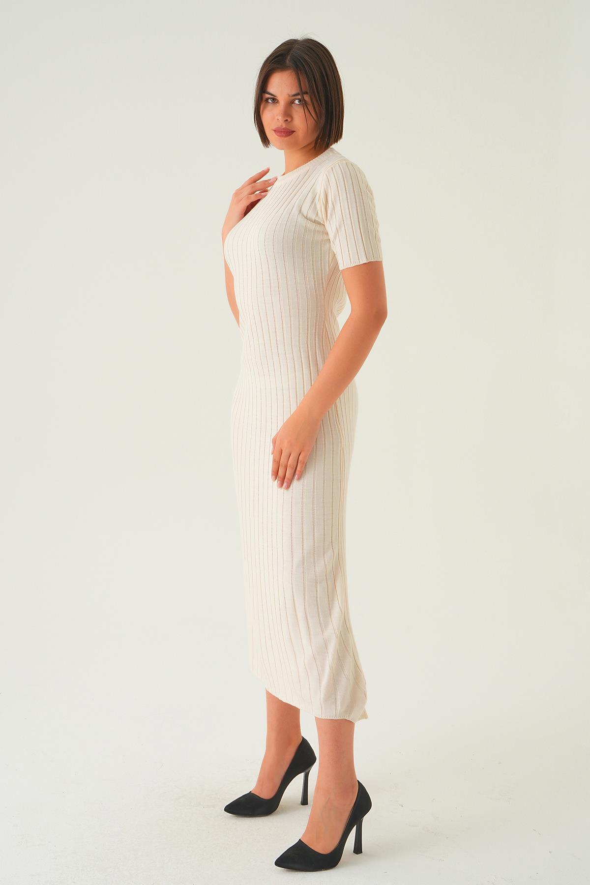 Kemik Kısa Kol Bisiklet Yaka Elbise 77438