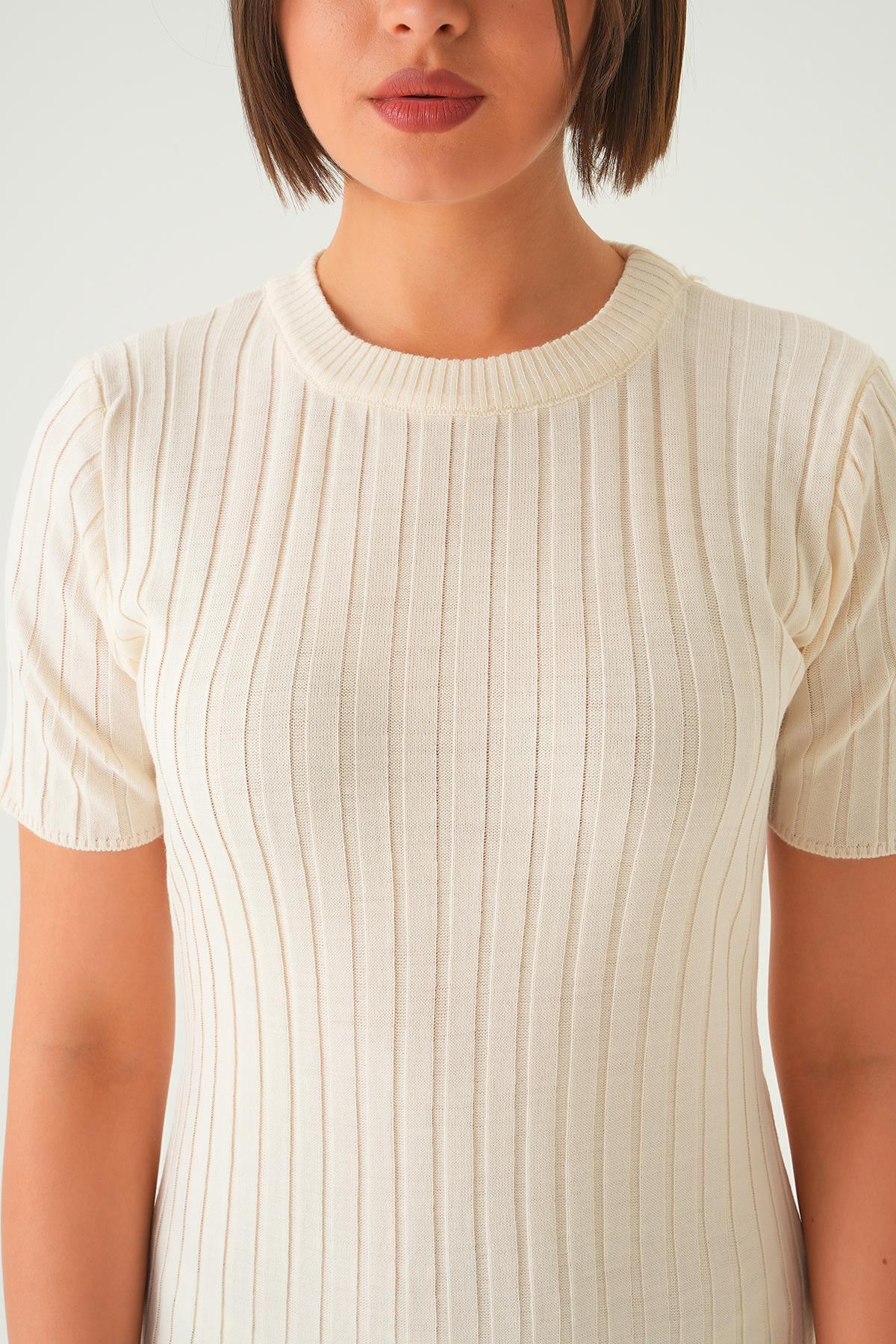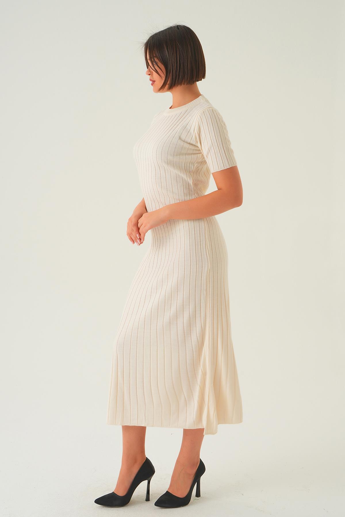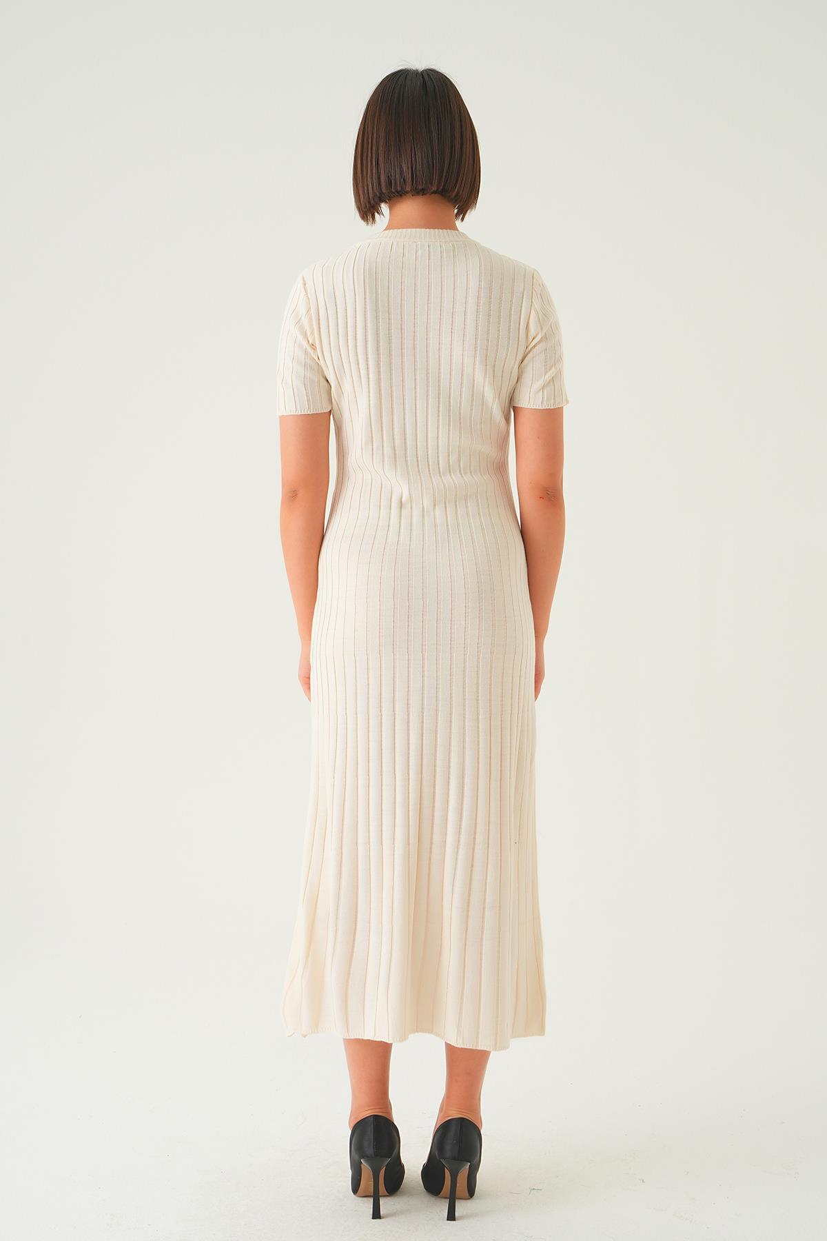 Kemik Kısa Kol Bisiklet Yaka Elbise 77438
