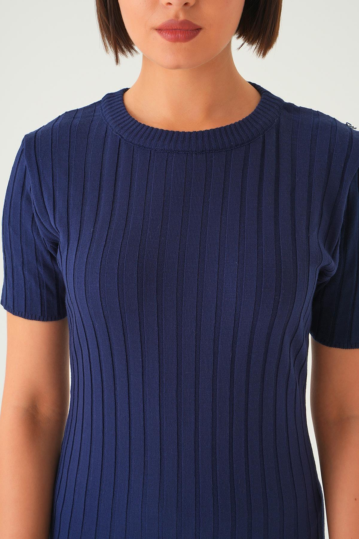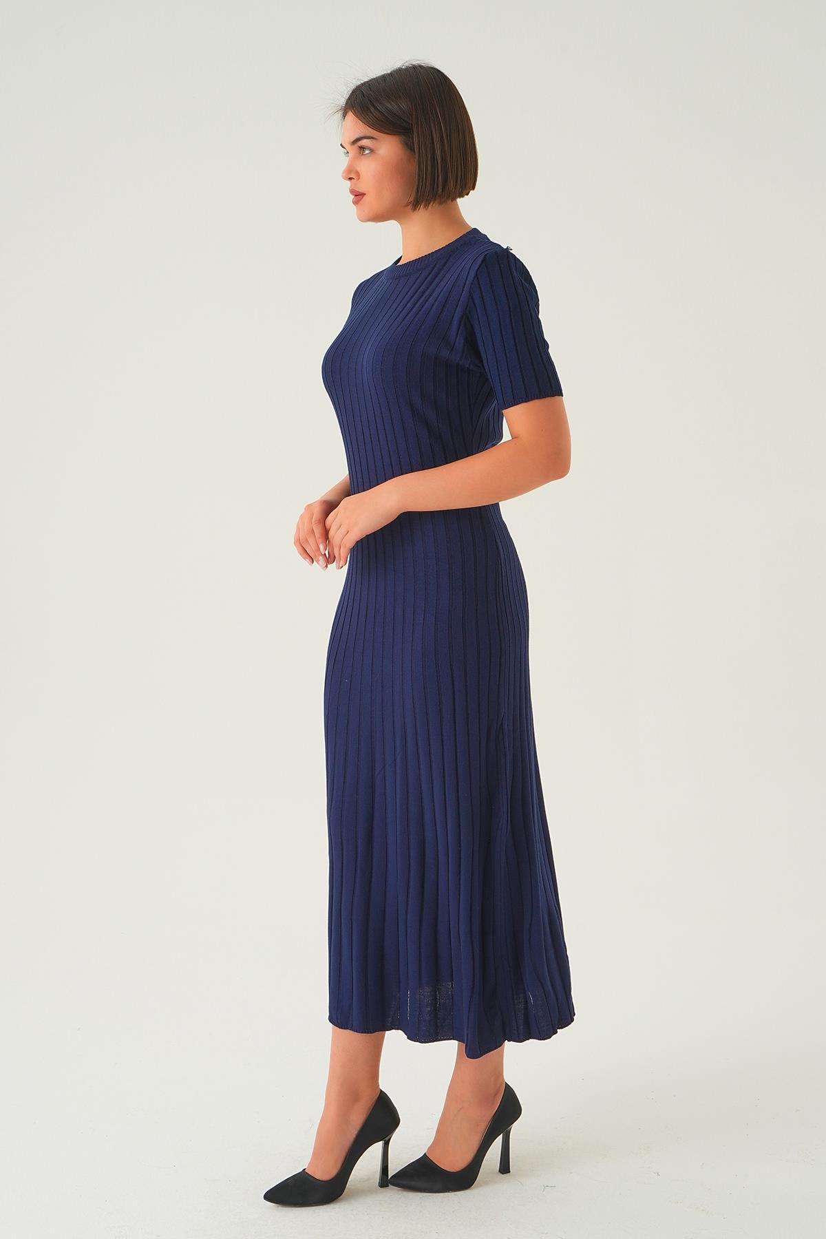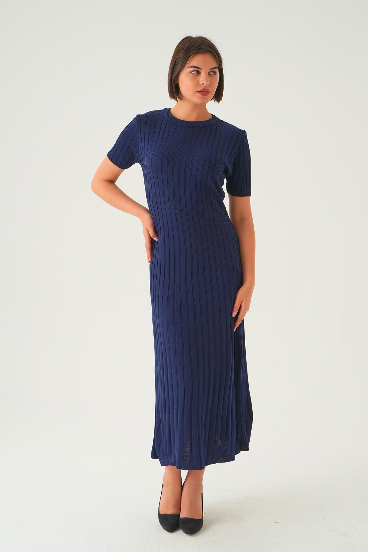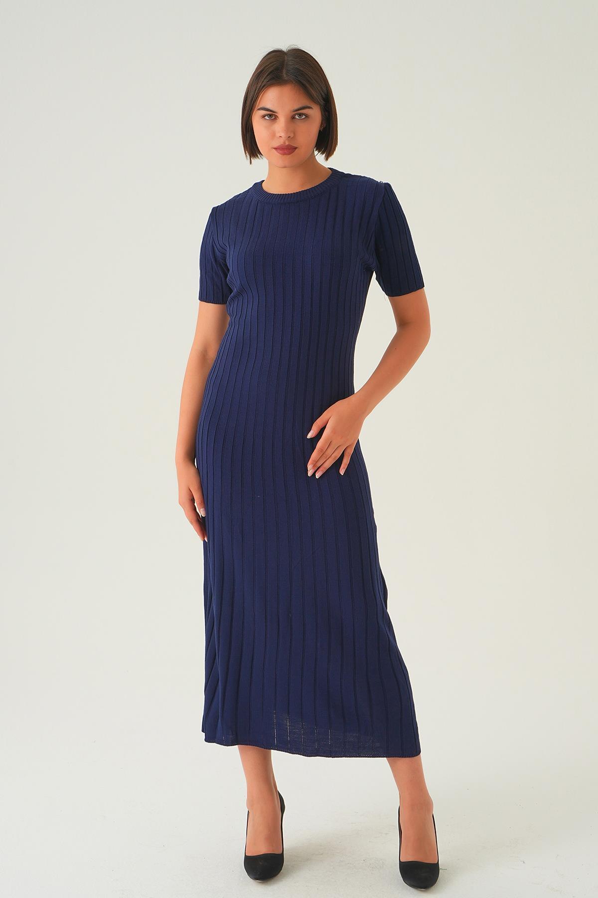 Laci Kısa Kol Bisiklet Yaka Elbise 77438