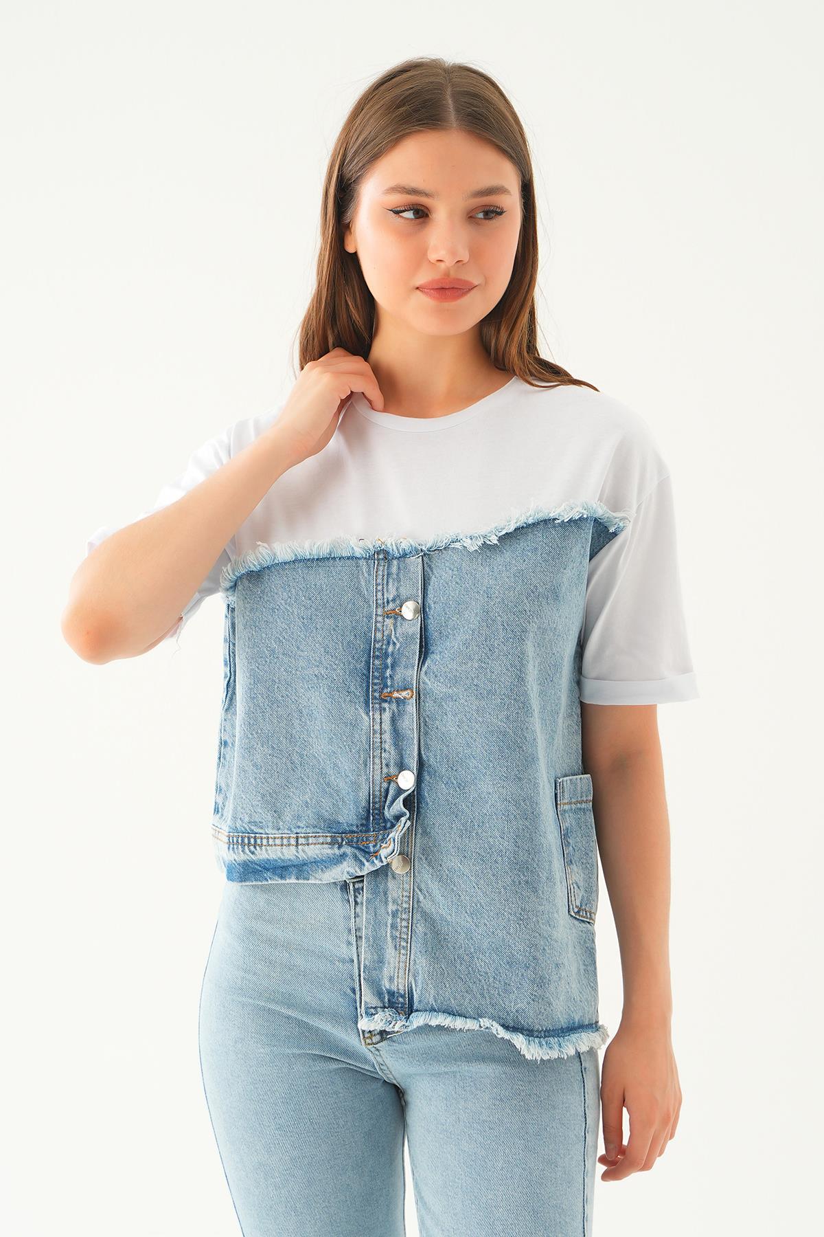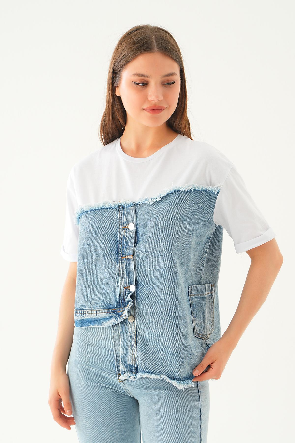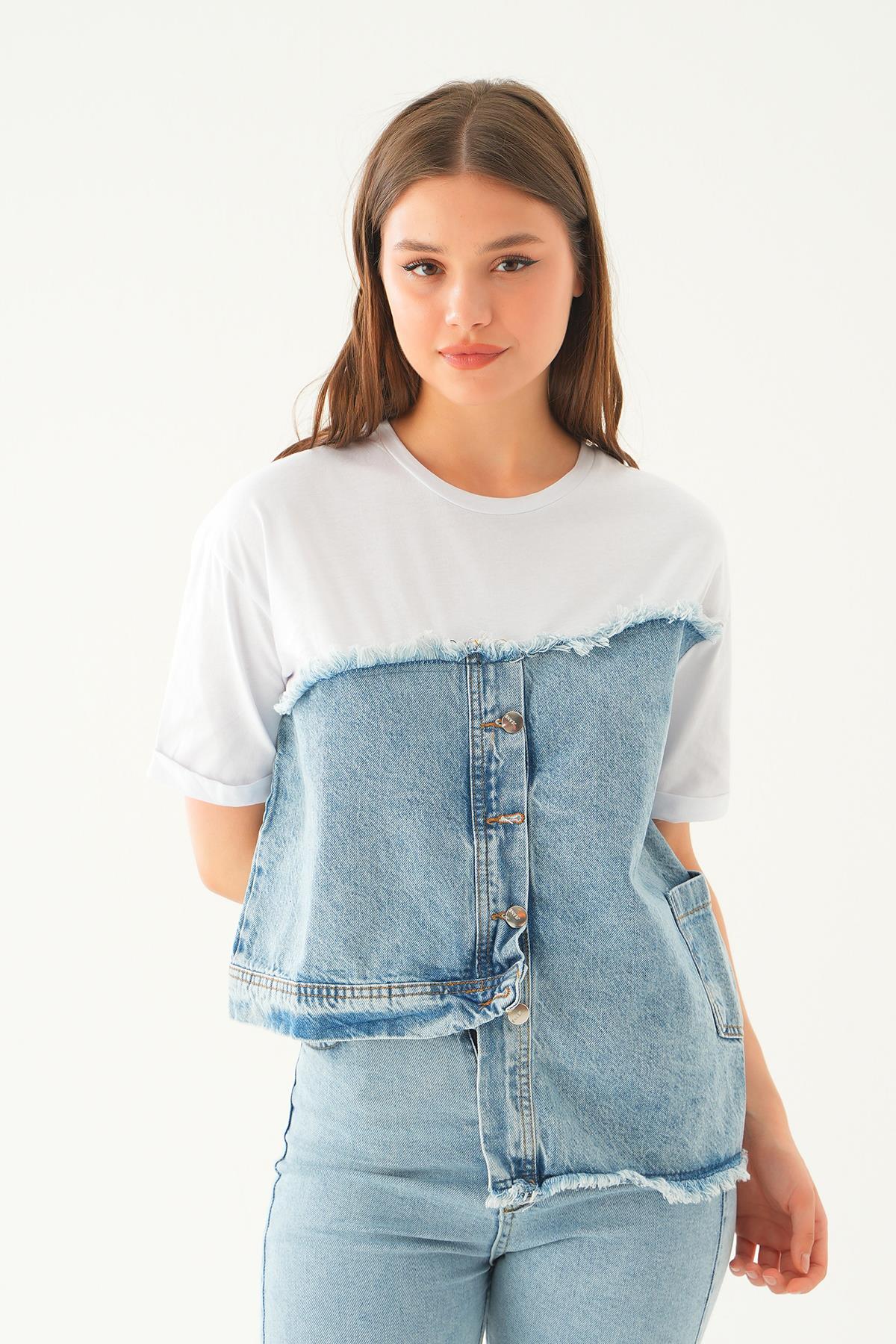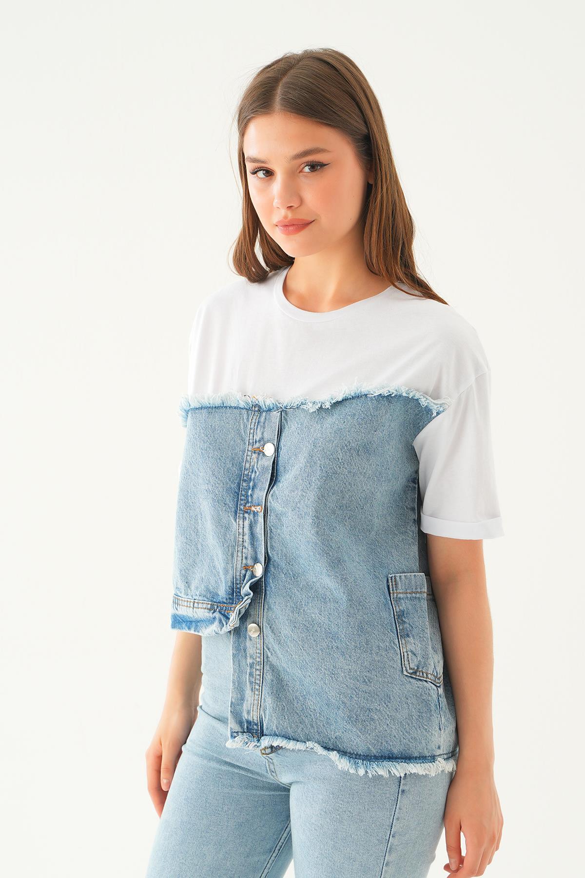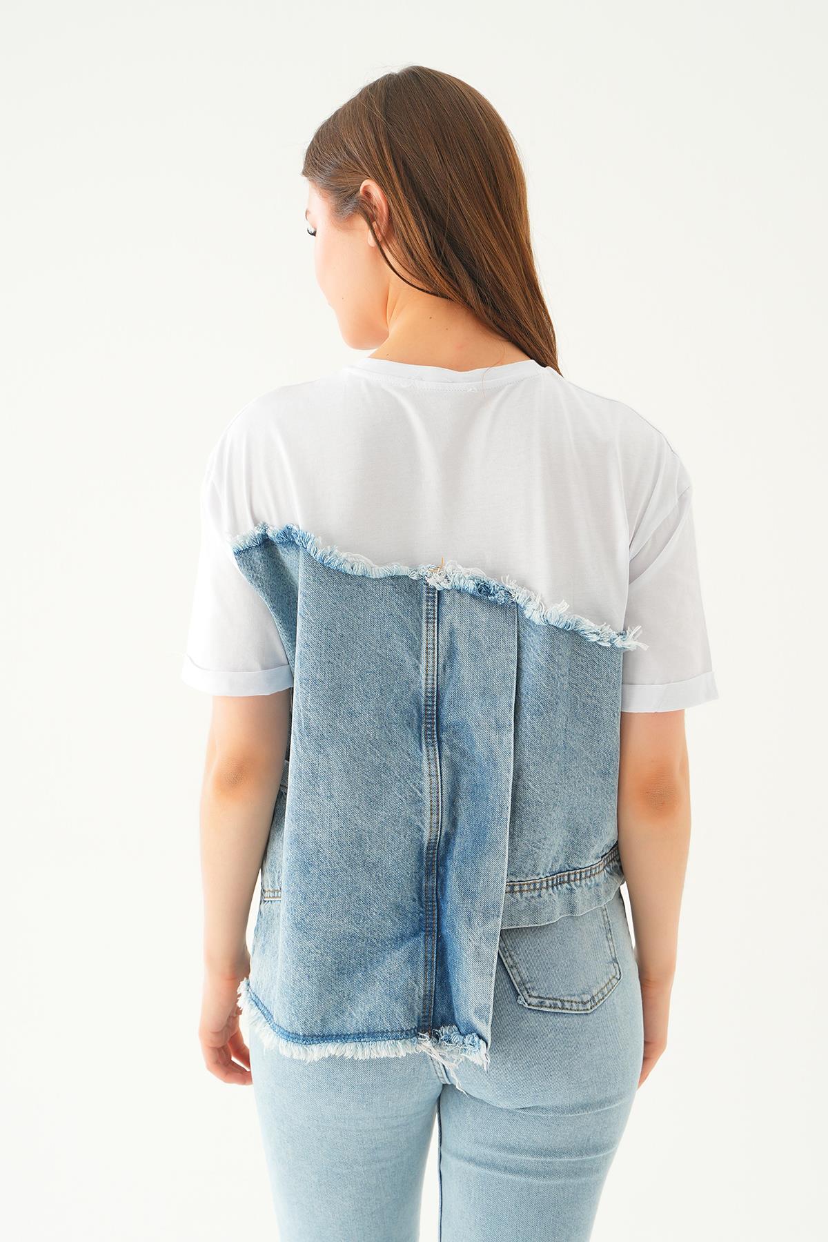 Beyaz Kot Detay Tişört 7752