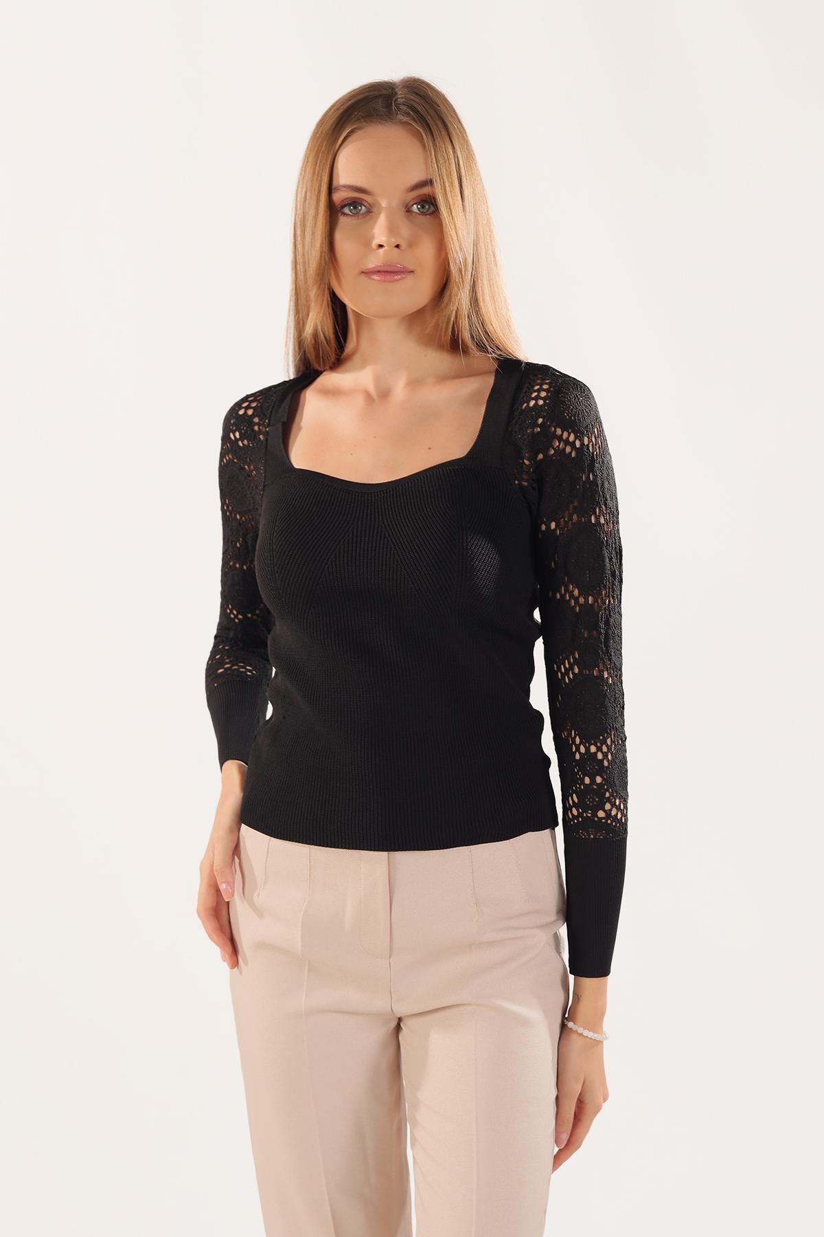 Siyah-Kırmızı Yıldız Baskılı Oversize Kazak 2474 - RAYS Siyah-Kırmızı Yıldız Baskılı Oversize Kazak 2474 - RAYS (1)