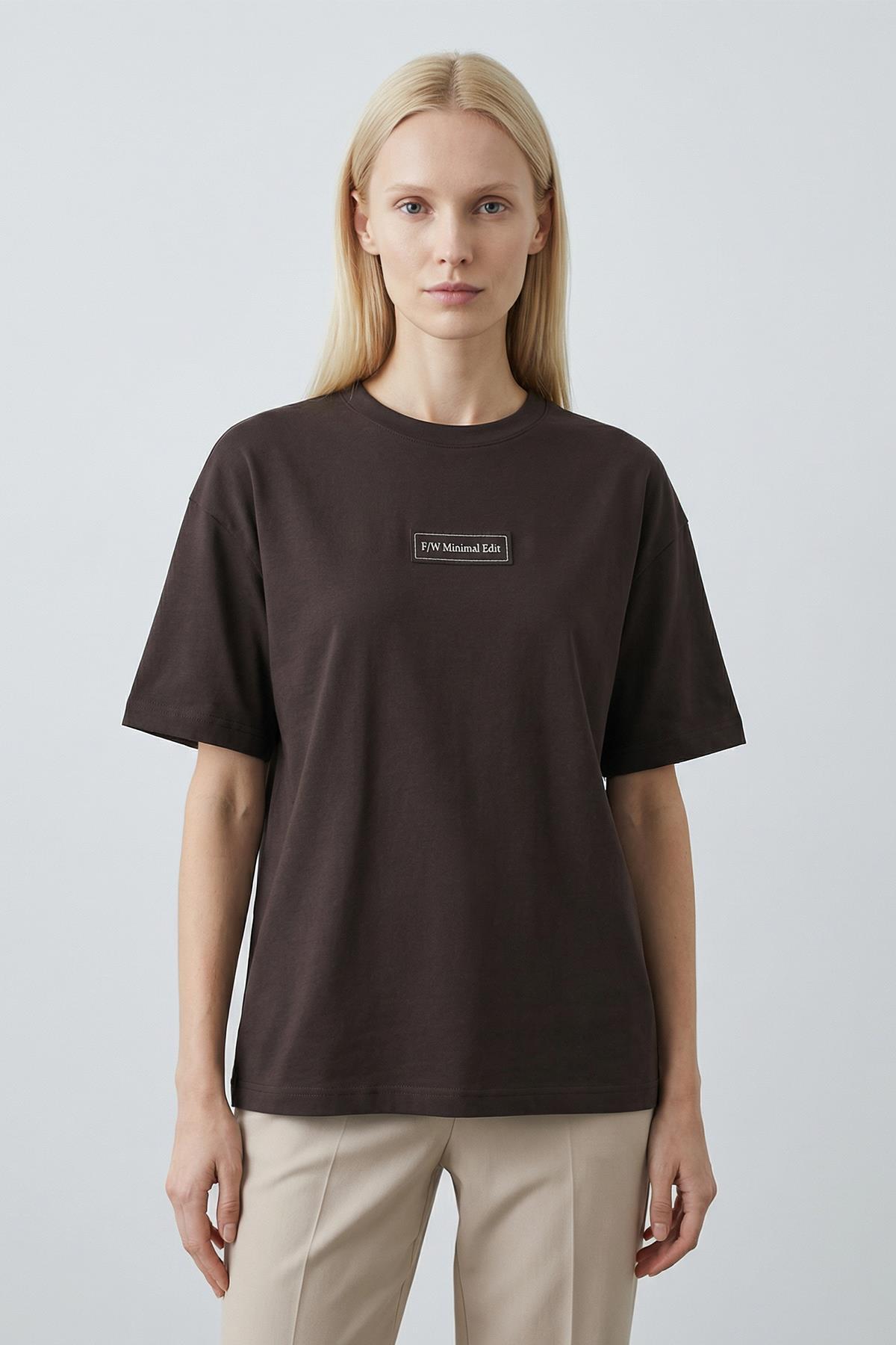 Acı Kahve Yazı Nakışlı Kısa Kol Tişört 7876