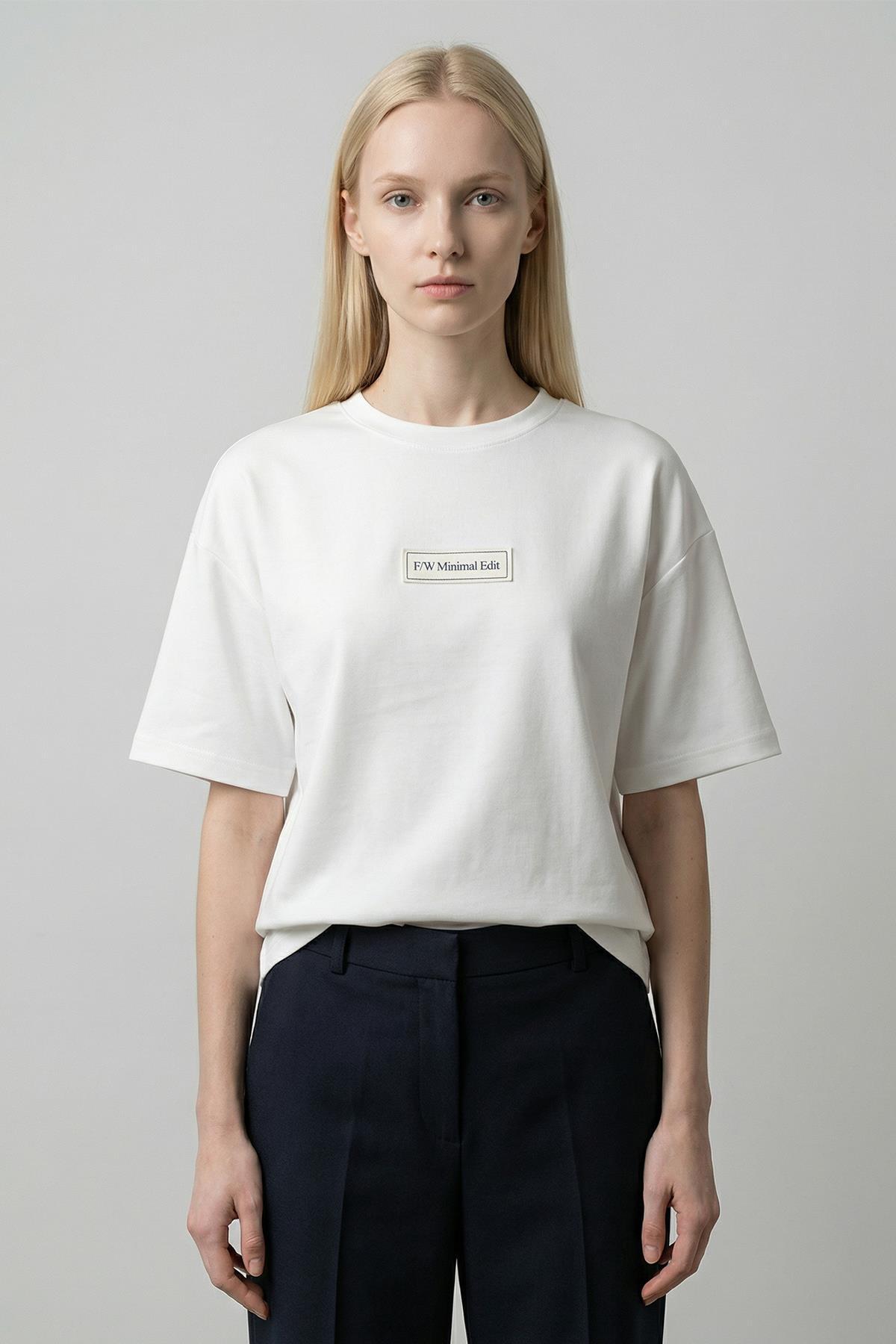 Ekru Yazı Nakışlı Kısa Kol Tişört 7876