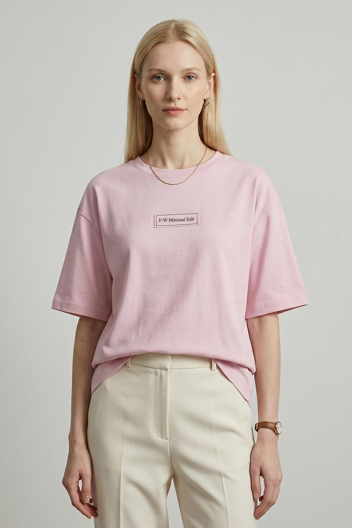 Pembe Yazı Nakışlı Kısa Kol Tişört 7876