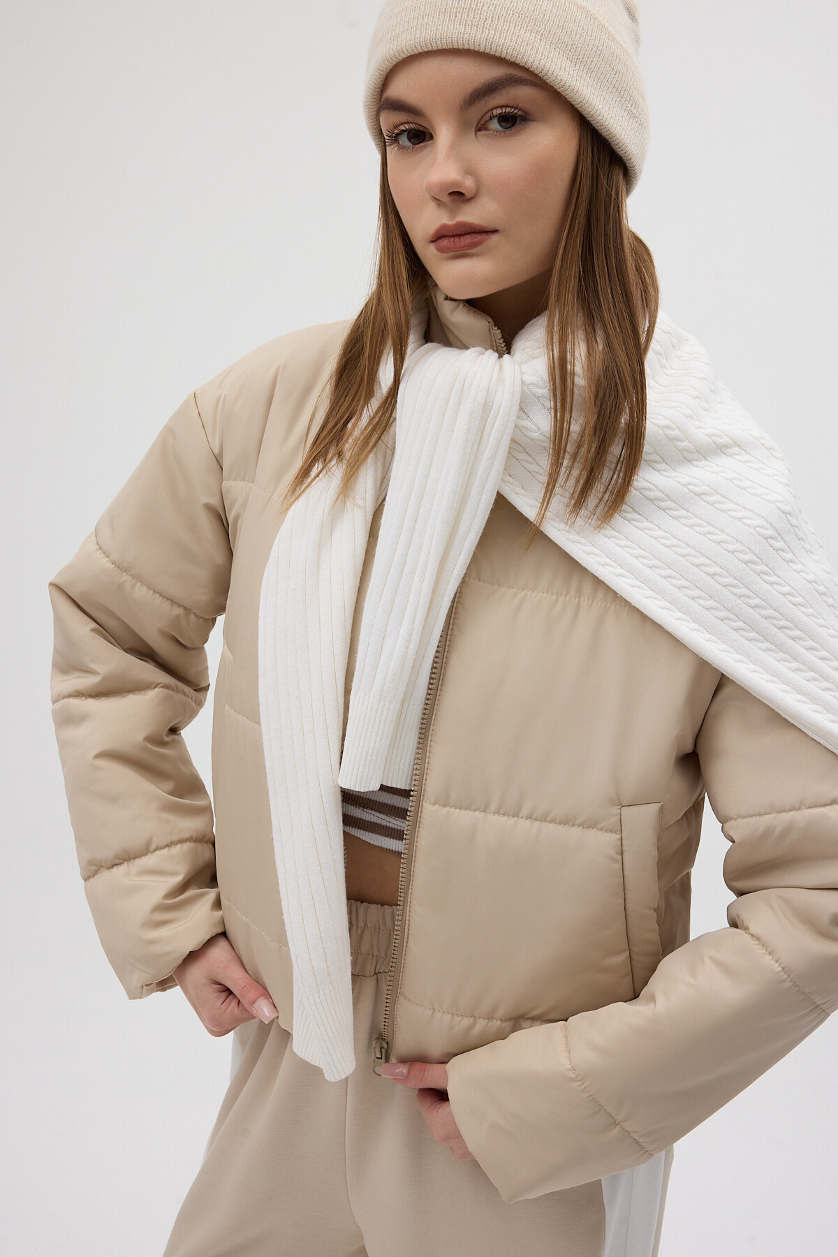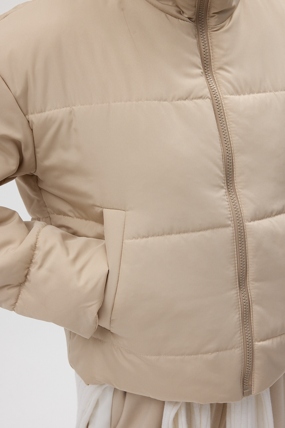 Bej Dik Yaka Fermuarlı Kısa Şişme Kadın Mont 8001