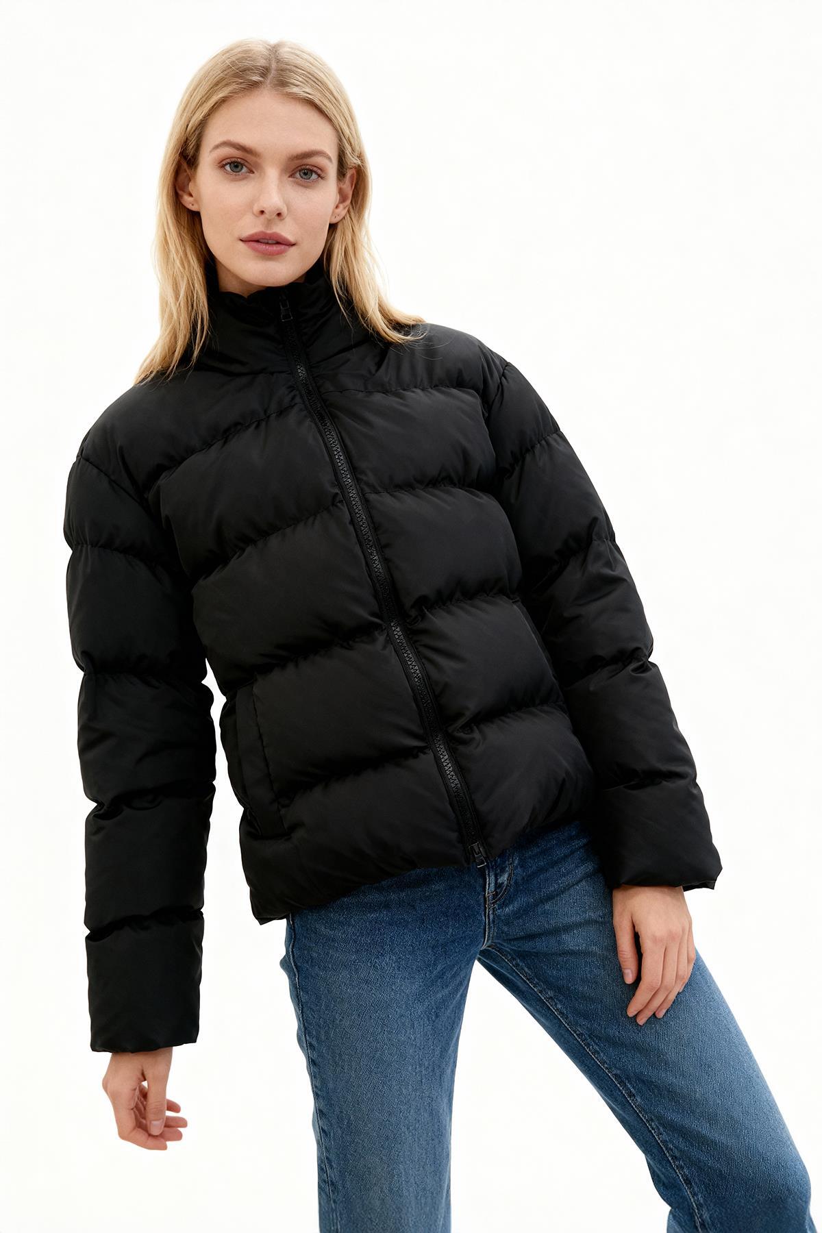 Siyah Oversize Dik Yaka Şişme Mont 4010