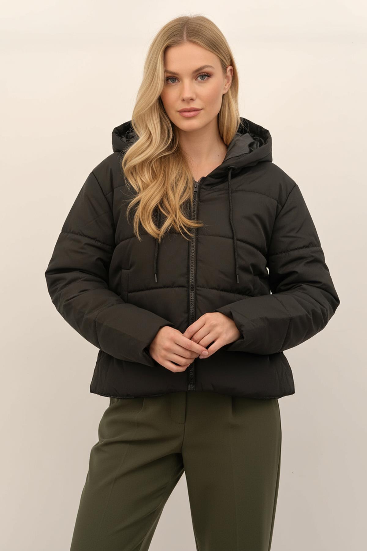 8001 Kapüşonlu Fermuarlı Mont Siyah