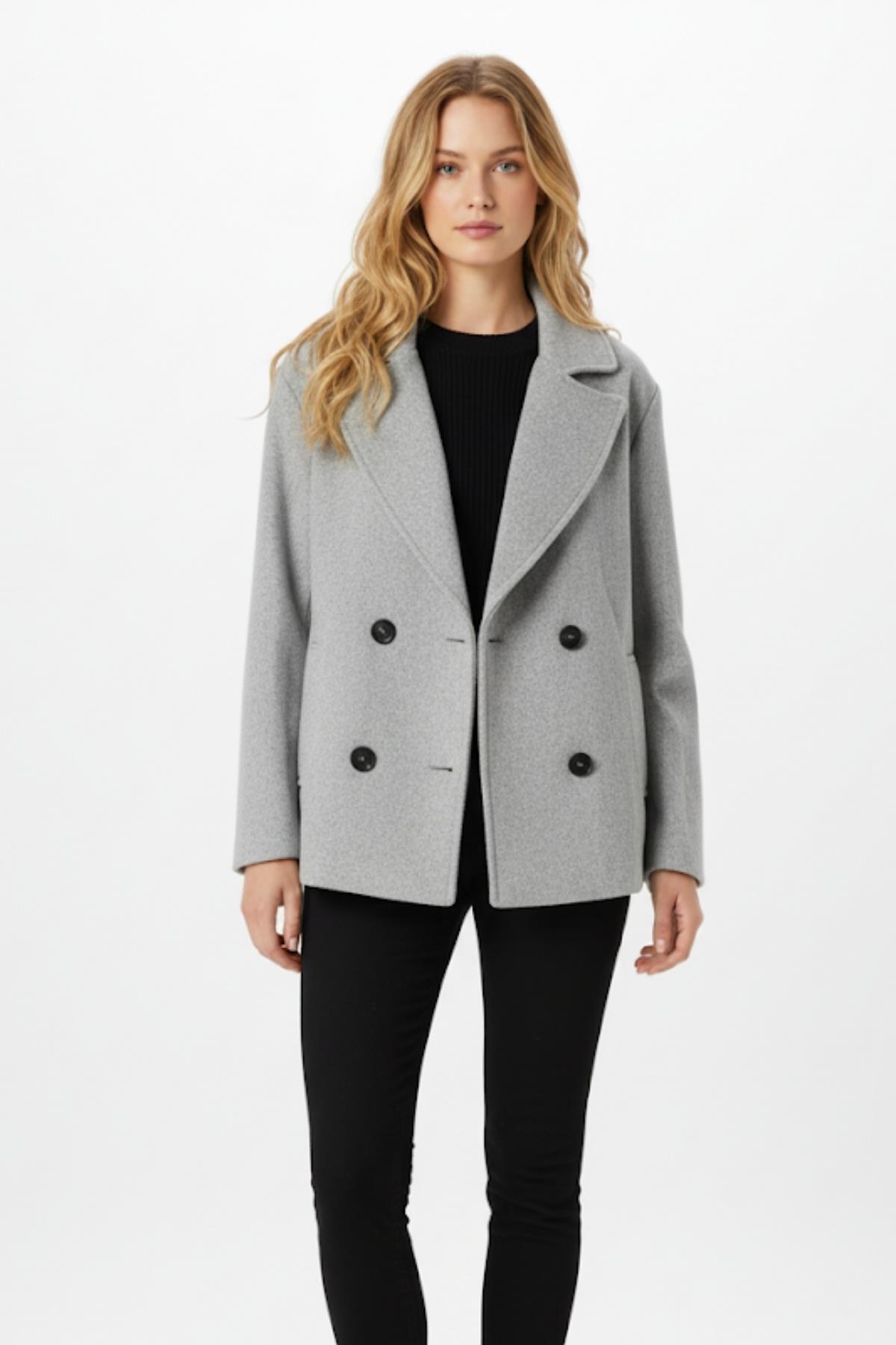 8069A Cepli Düğmeli Kaşe Ceket Gri