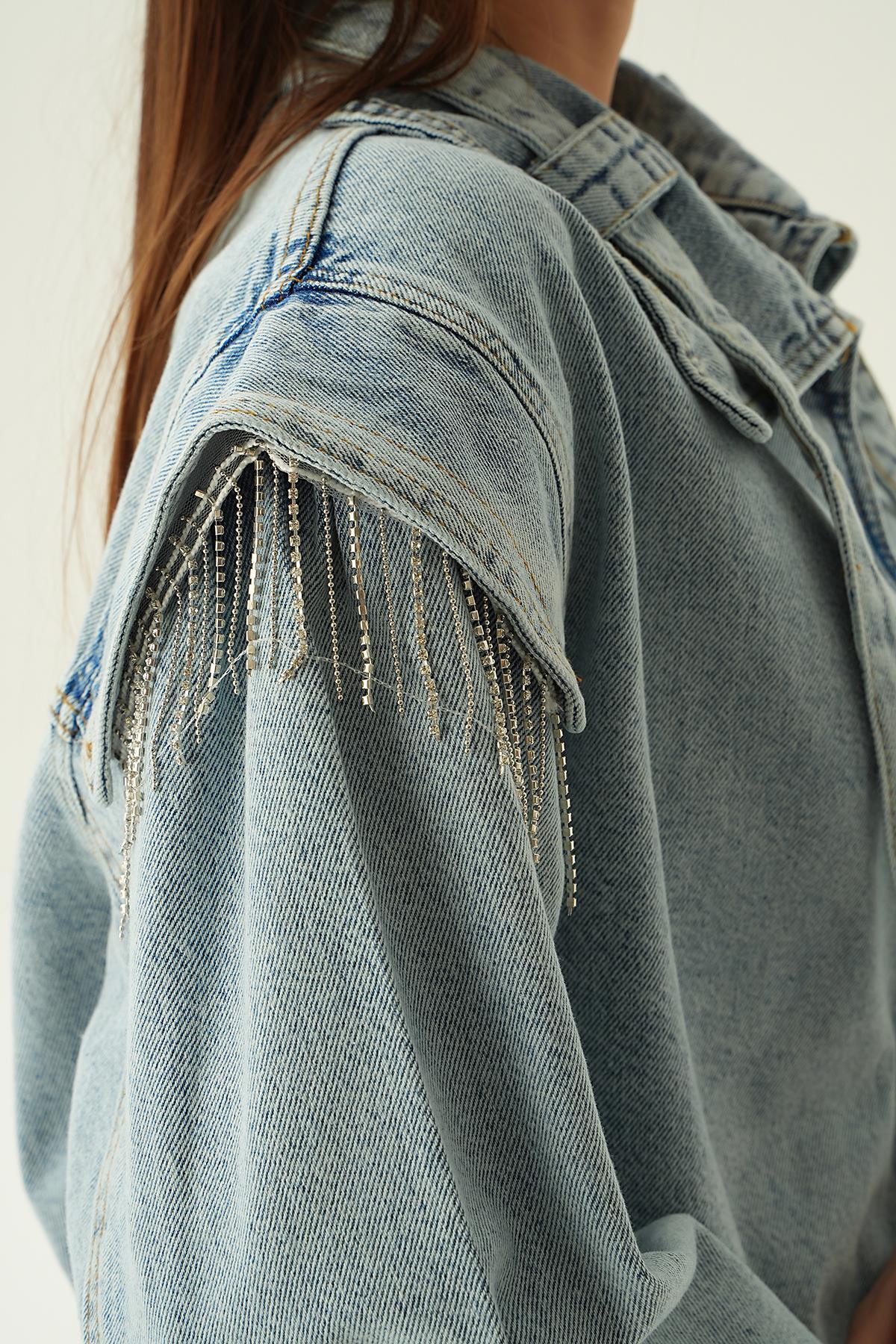 8089 Yaka Kemer Detaylı Jean Ceket Kar Yıkama