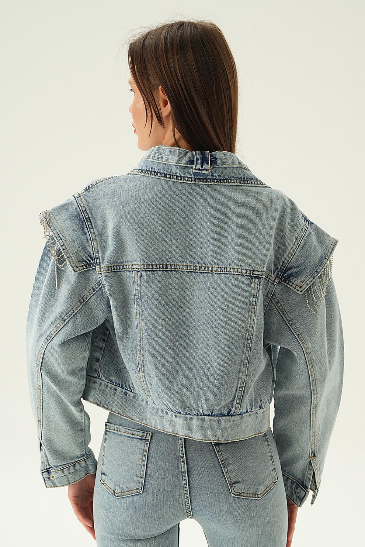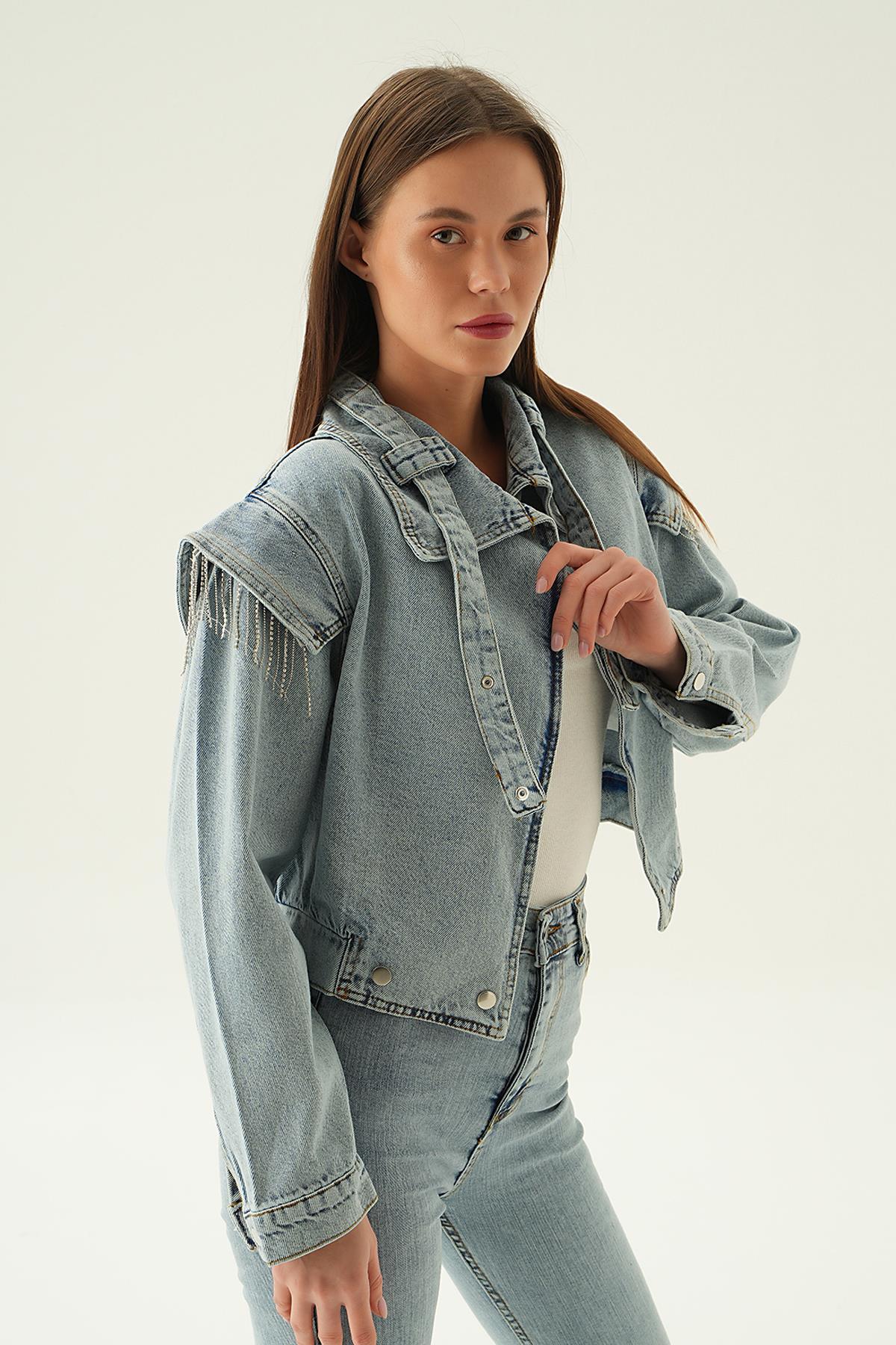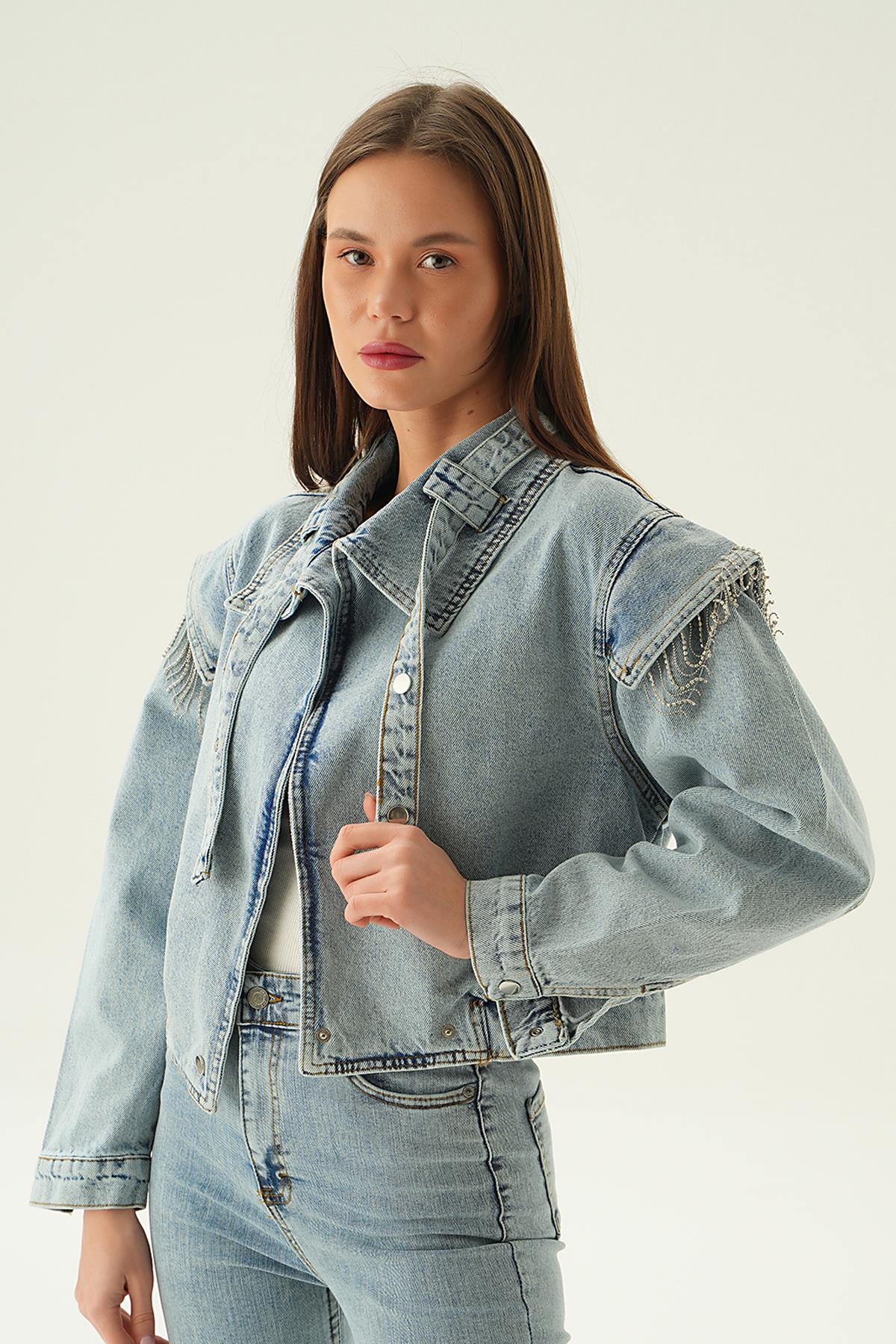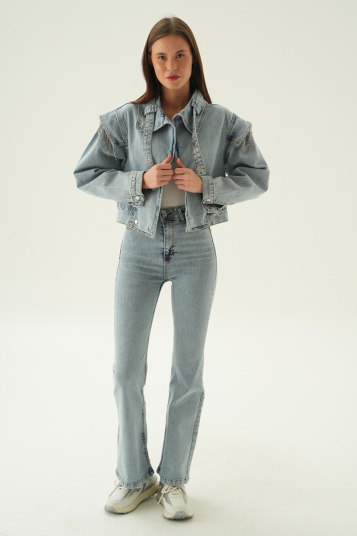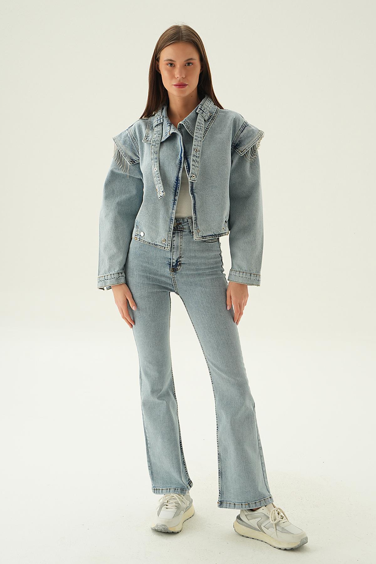 Kar Yıkama Yaka Kemer Detaylı Kot Ceket 8089