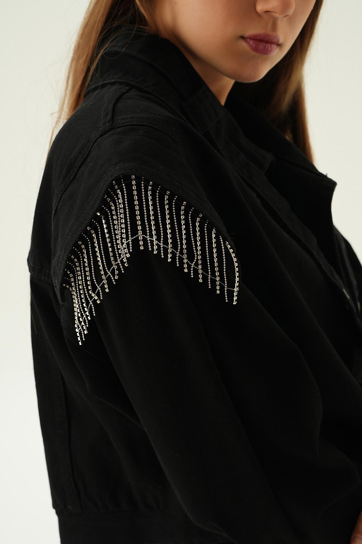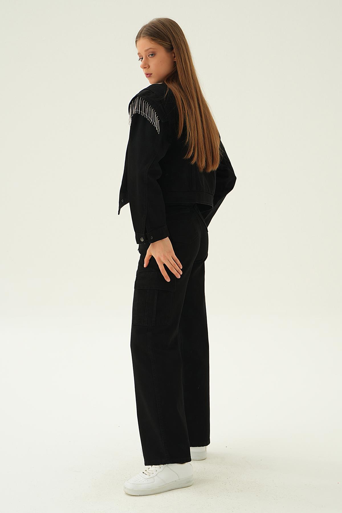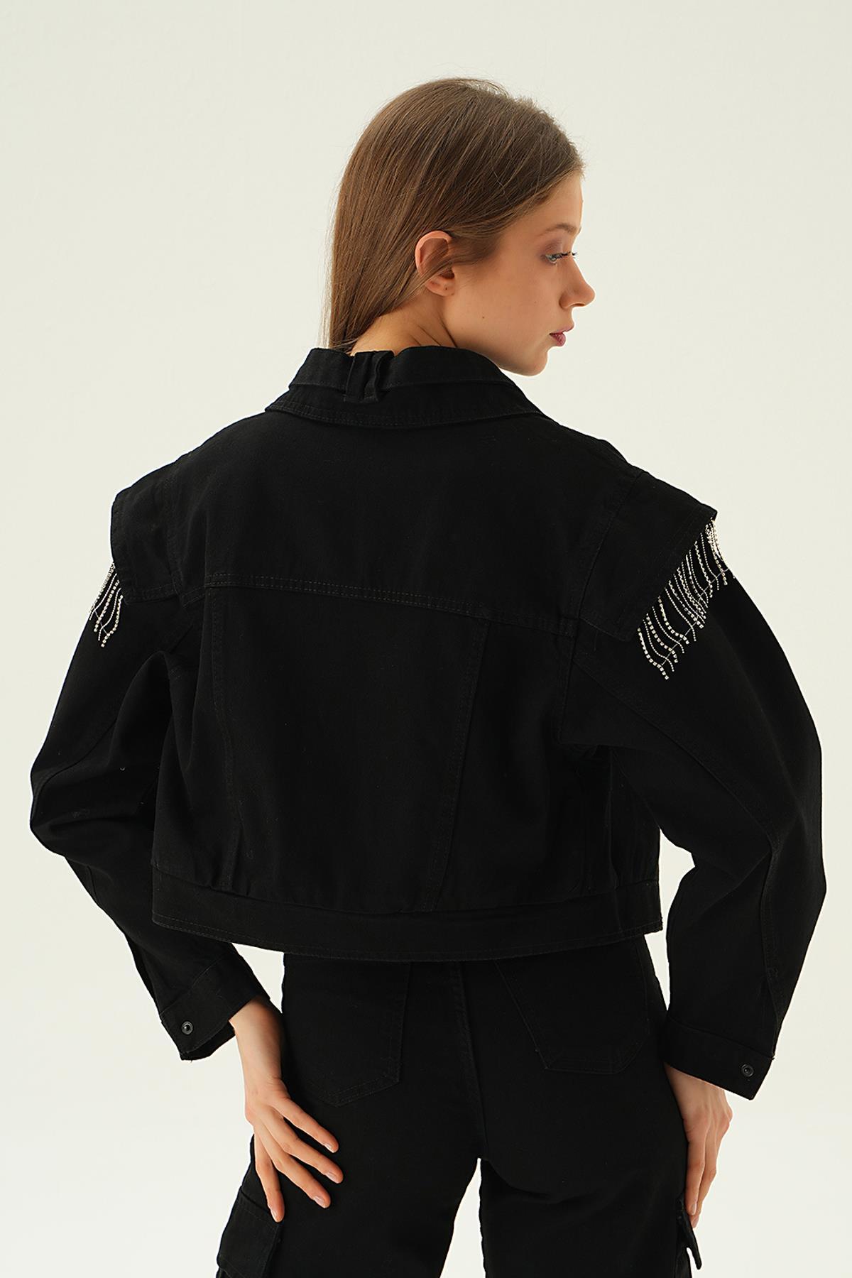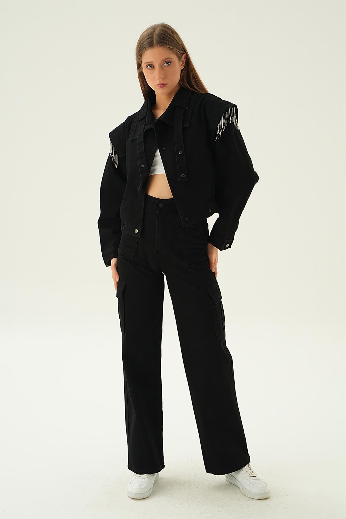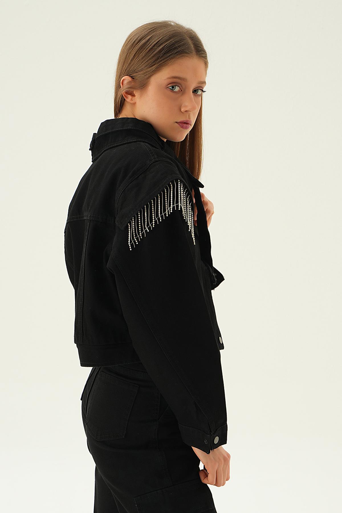 Siyah Yaka Kemer Detaylı Kot Ceket 8089