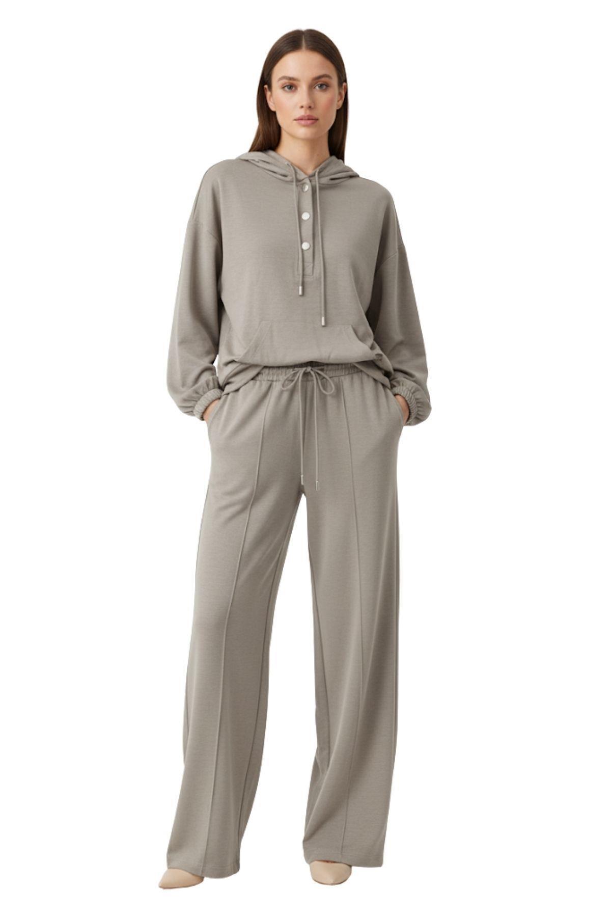 8105A Kapüşonlu Çıtçıtlı Tunik Pantolon Takım Vizon