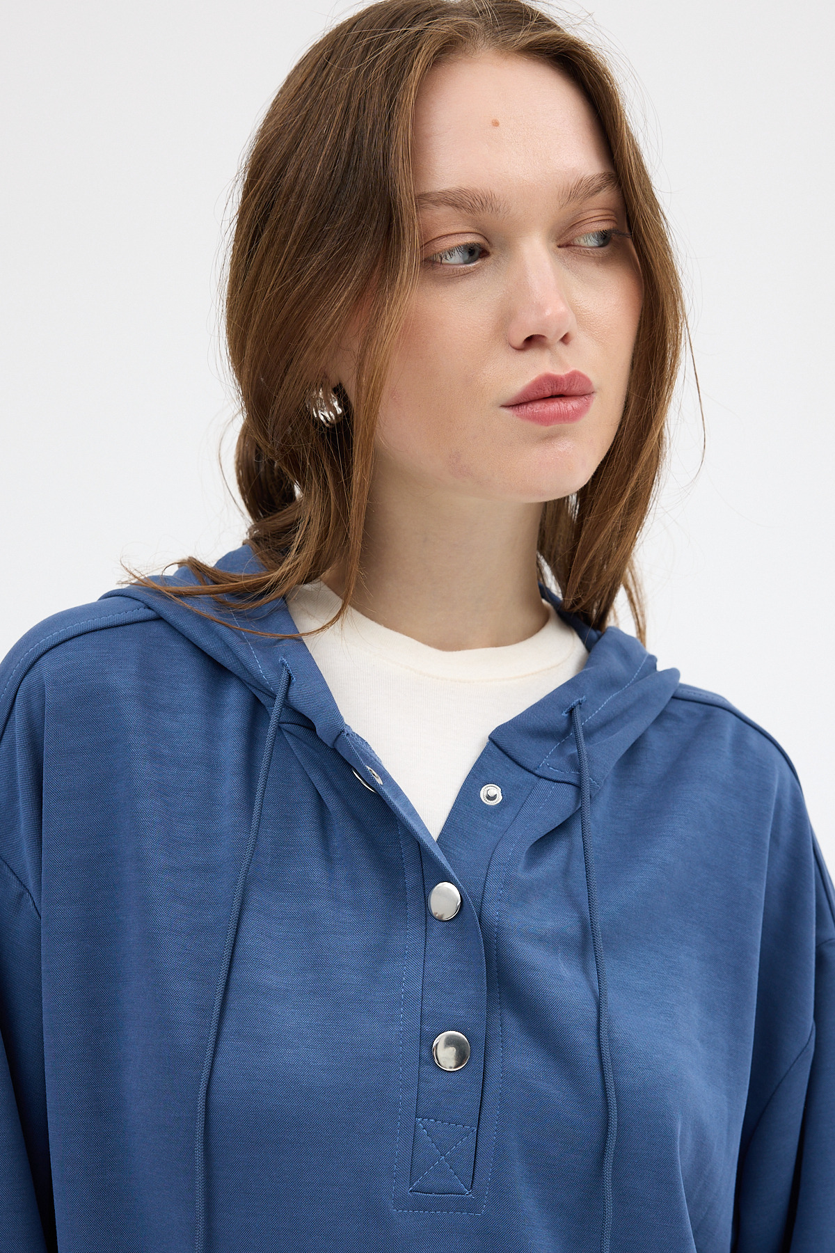 İndigo Cepli Kapüşonlu Tunik Pantolon Takımı 8105A