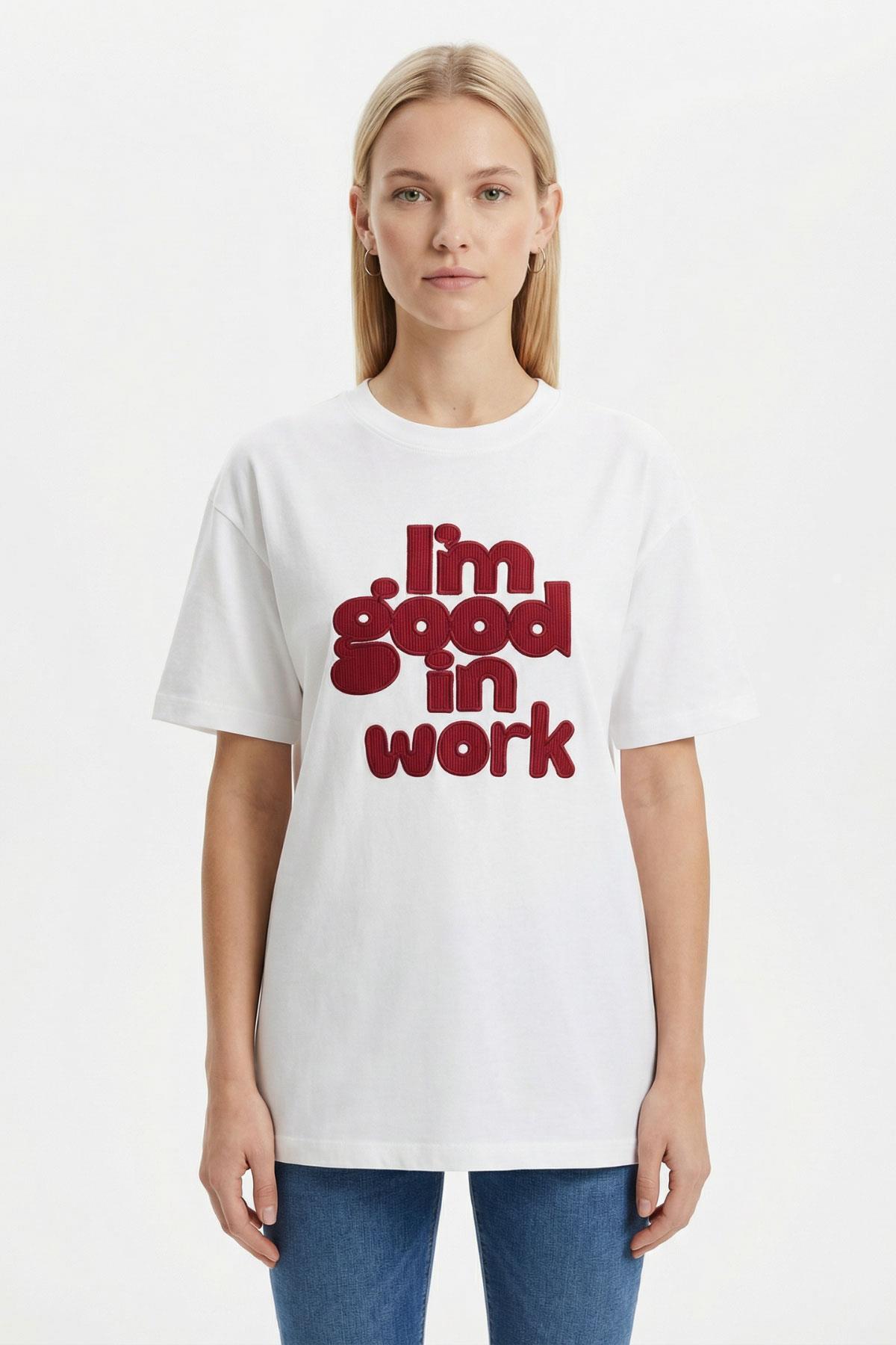 8106 Yazı Nakışlı Tişört Pembe - RAYS