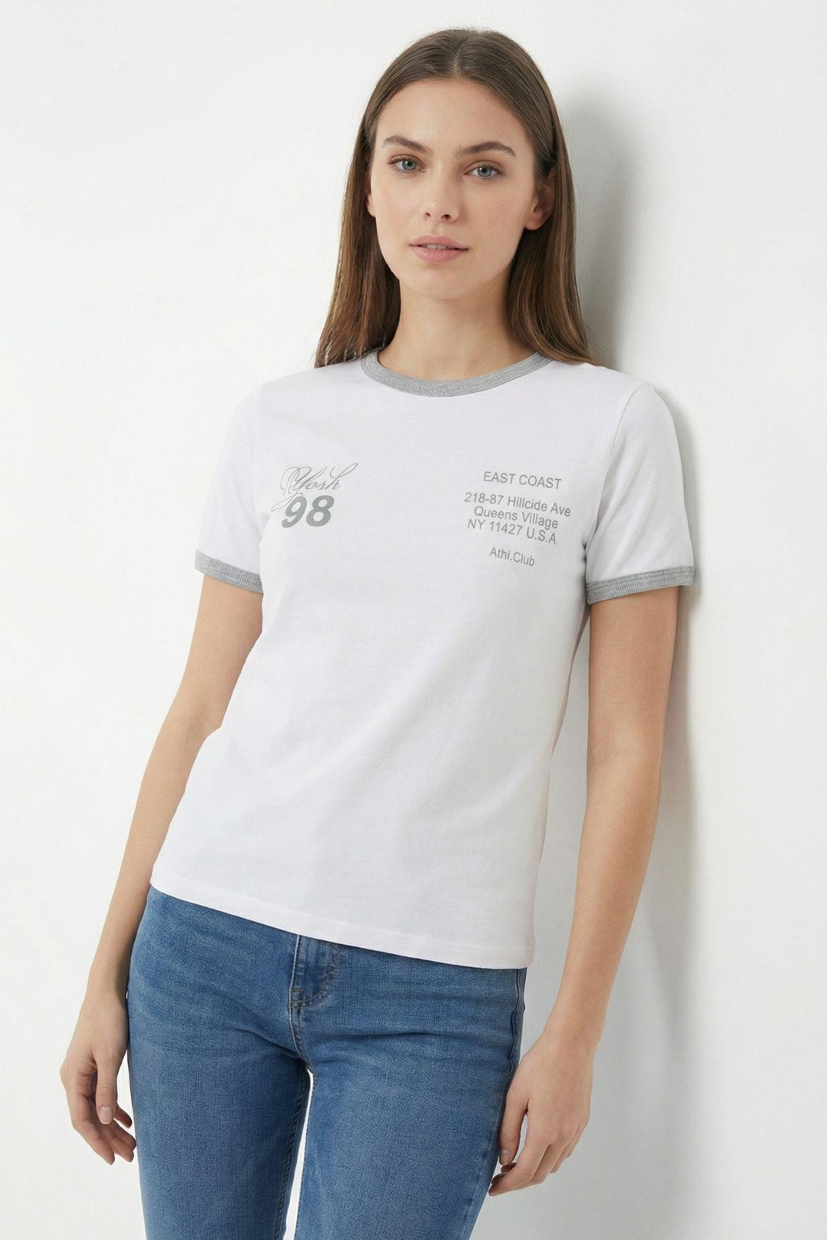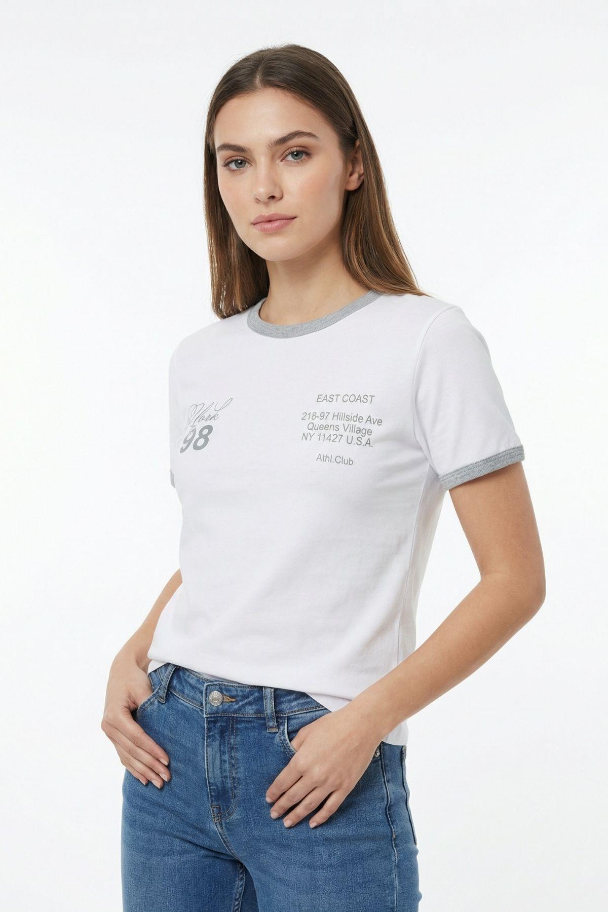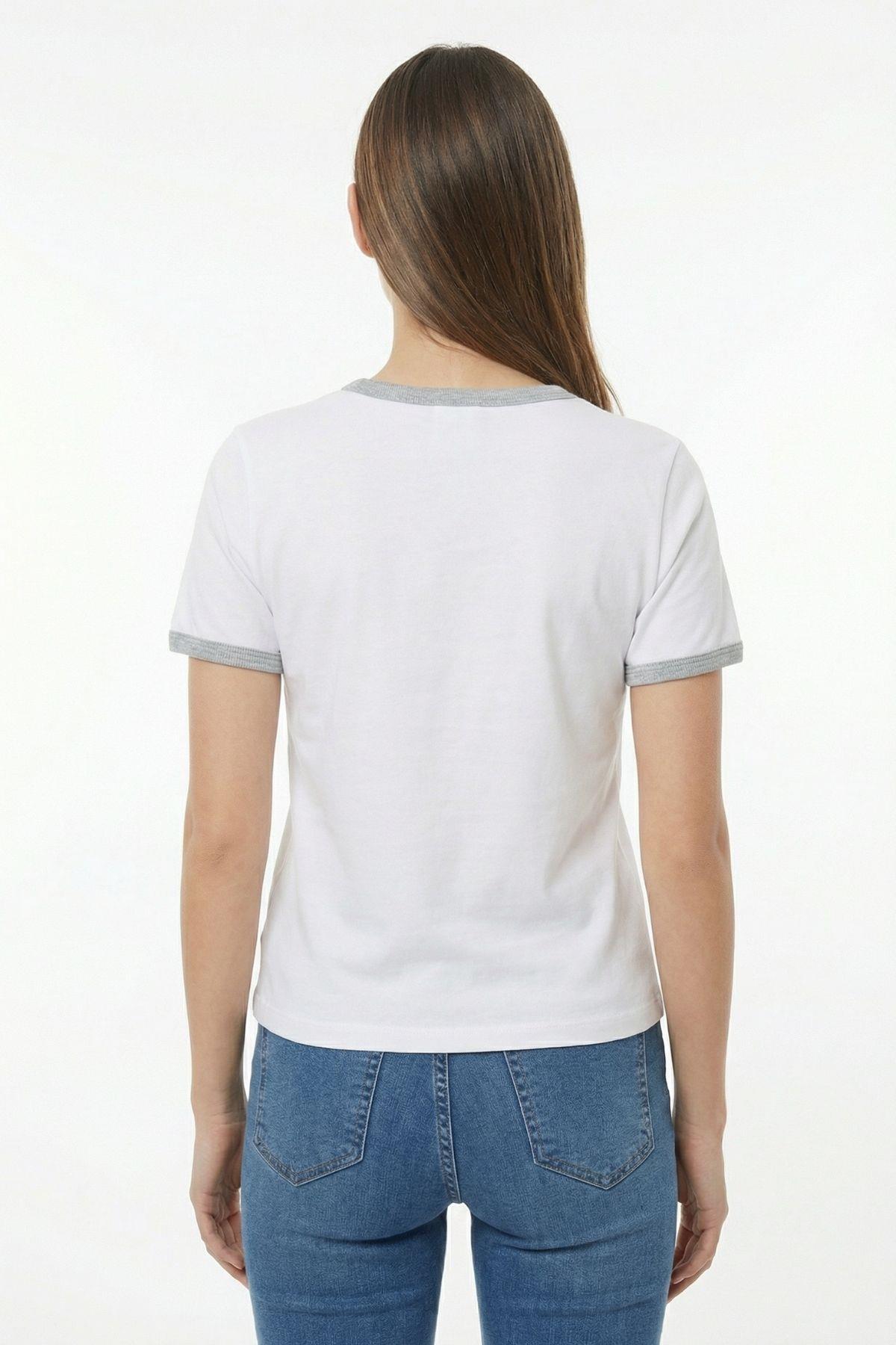 8109 Yazı Baskılı Yaka Detay Tişört