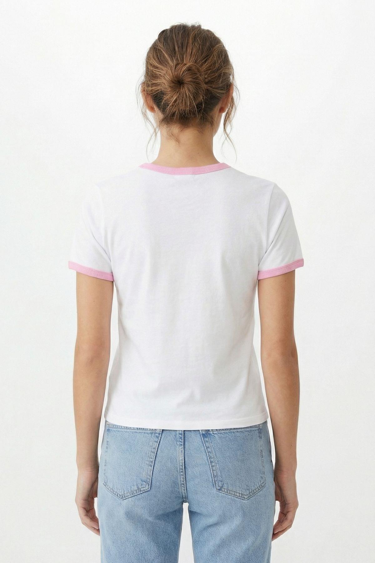 8109 Yazı Baskılı Yaka Detay Tişört Pembe