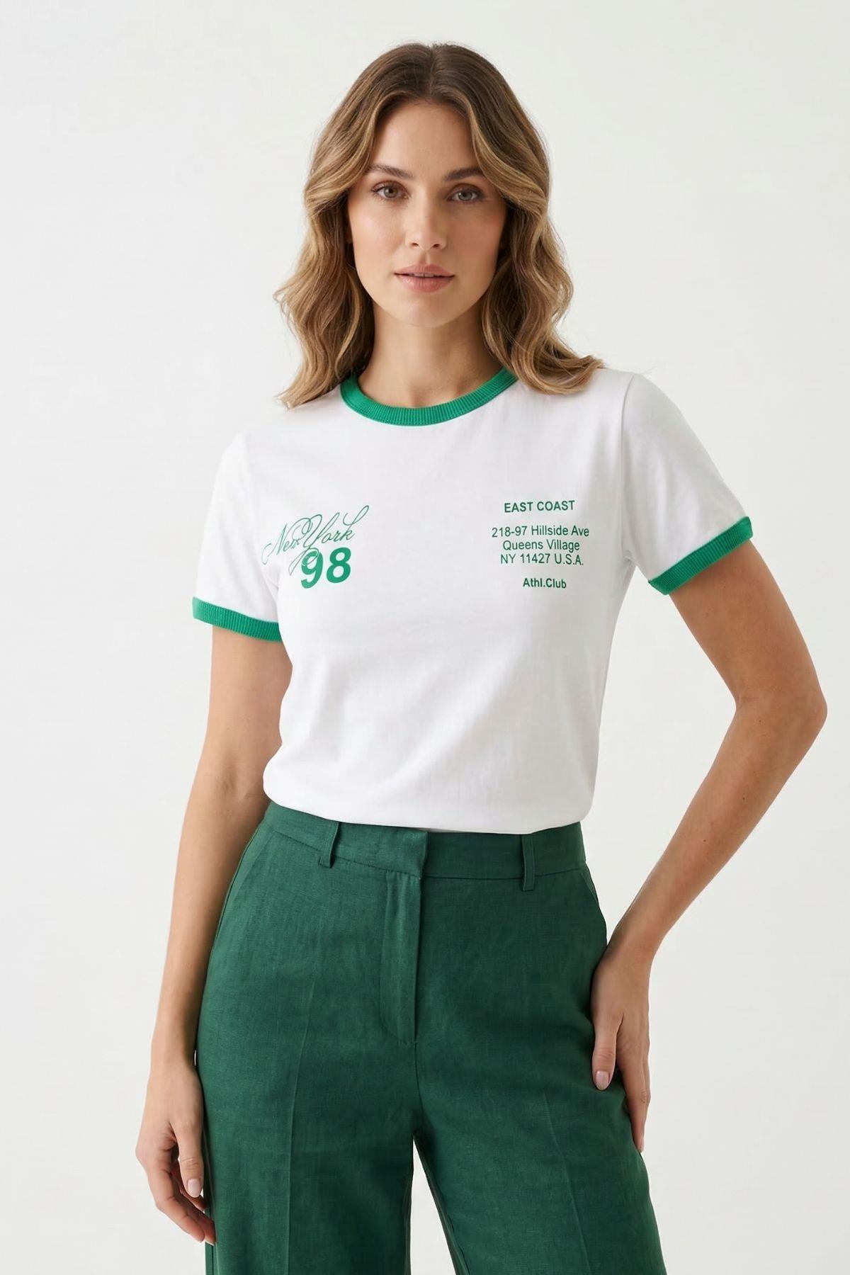 Yeşil Yazı Baskılı Yaka Detay Tişört 8109