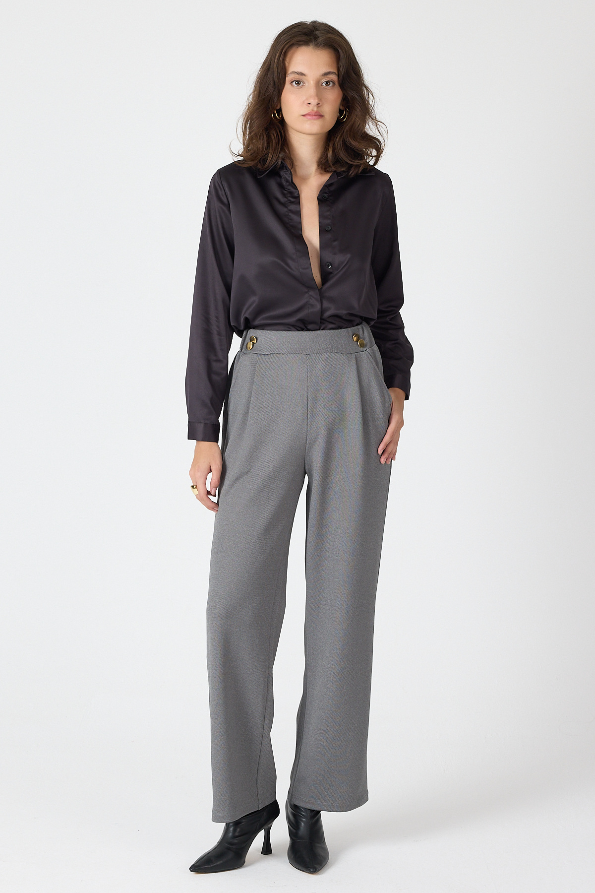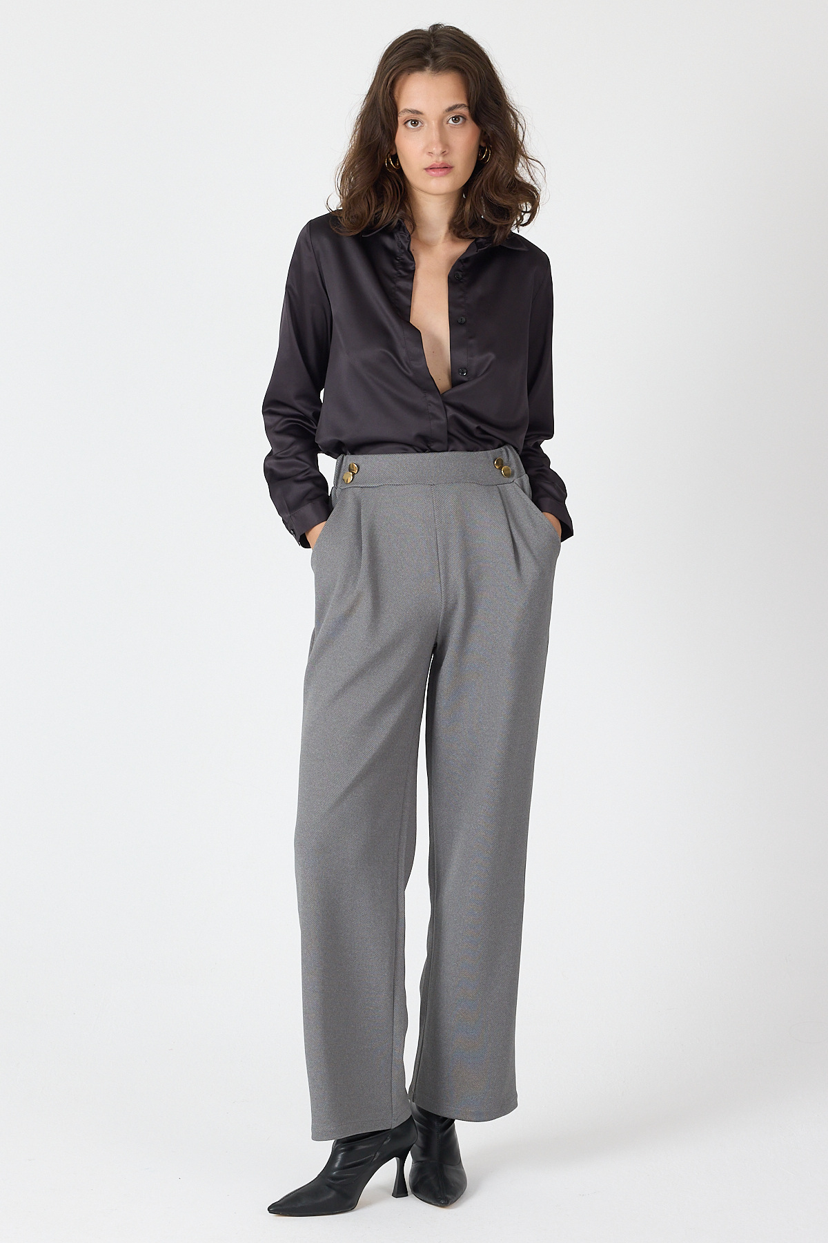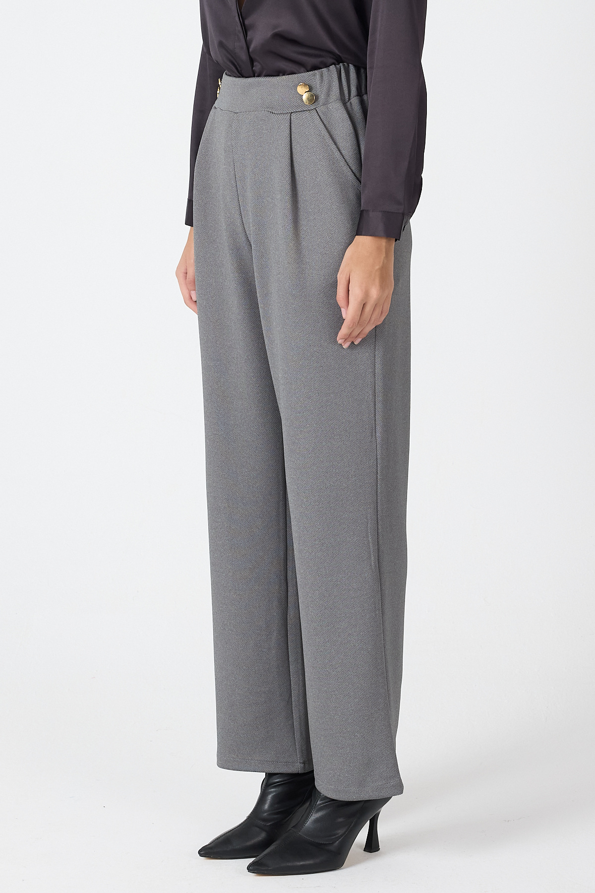 Antrasit Gold Düğme Detaylı Bol Paça Kadın Pantolon 8111A