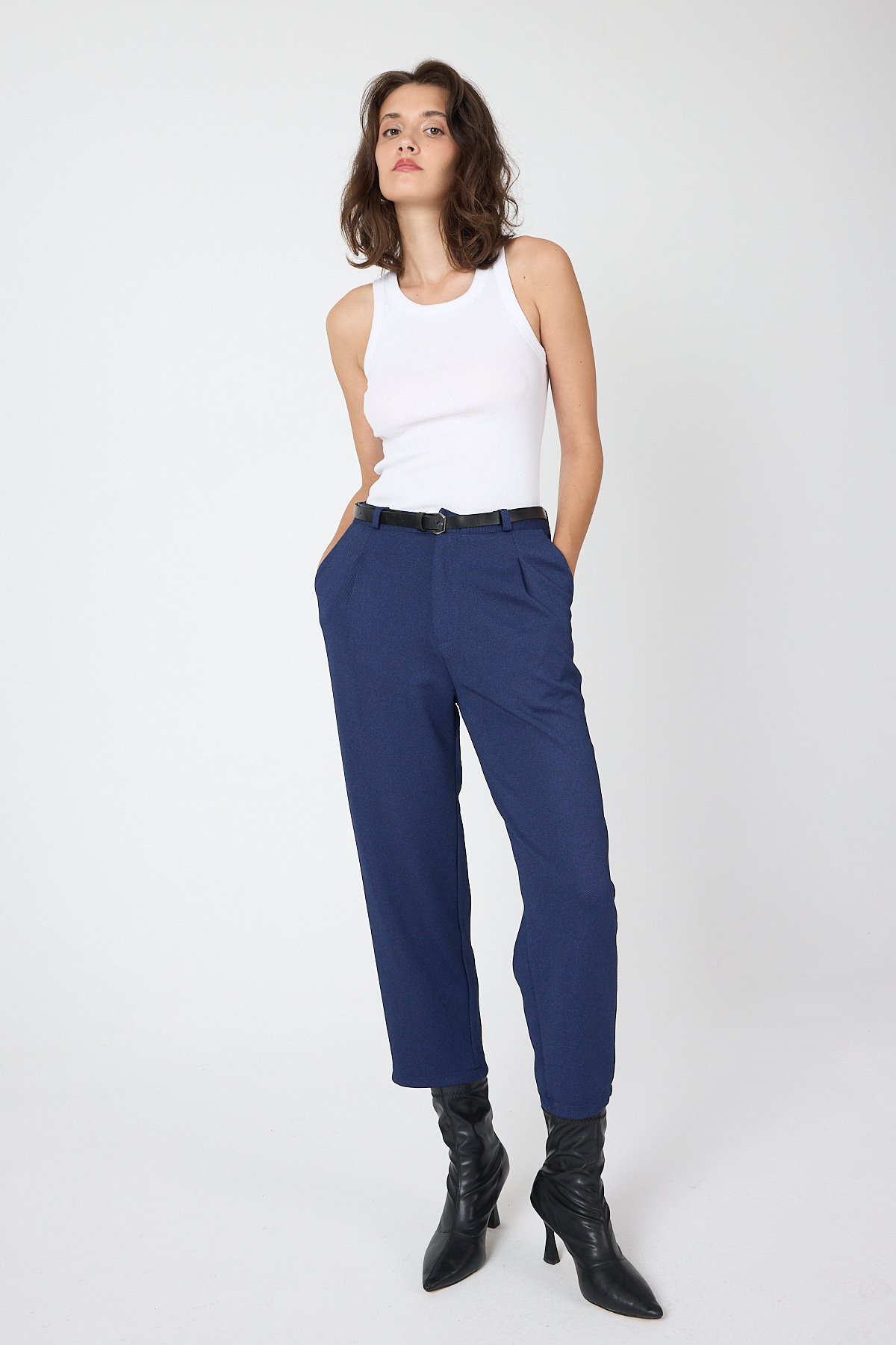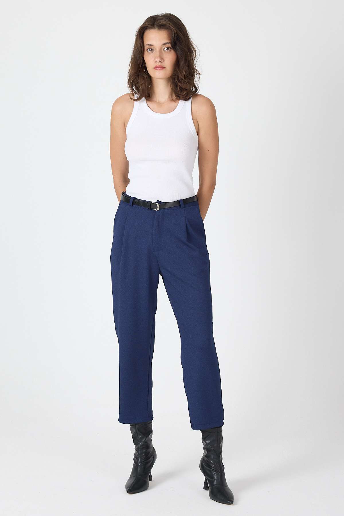 Laci Pileli Kemerli Kadın Kumaş Pantolon 8120A