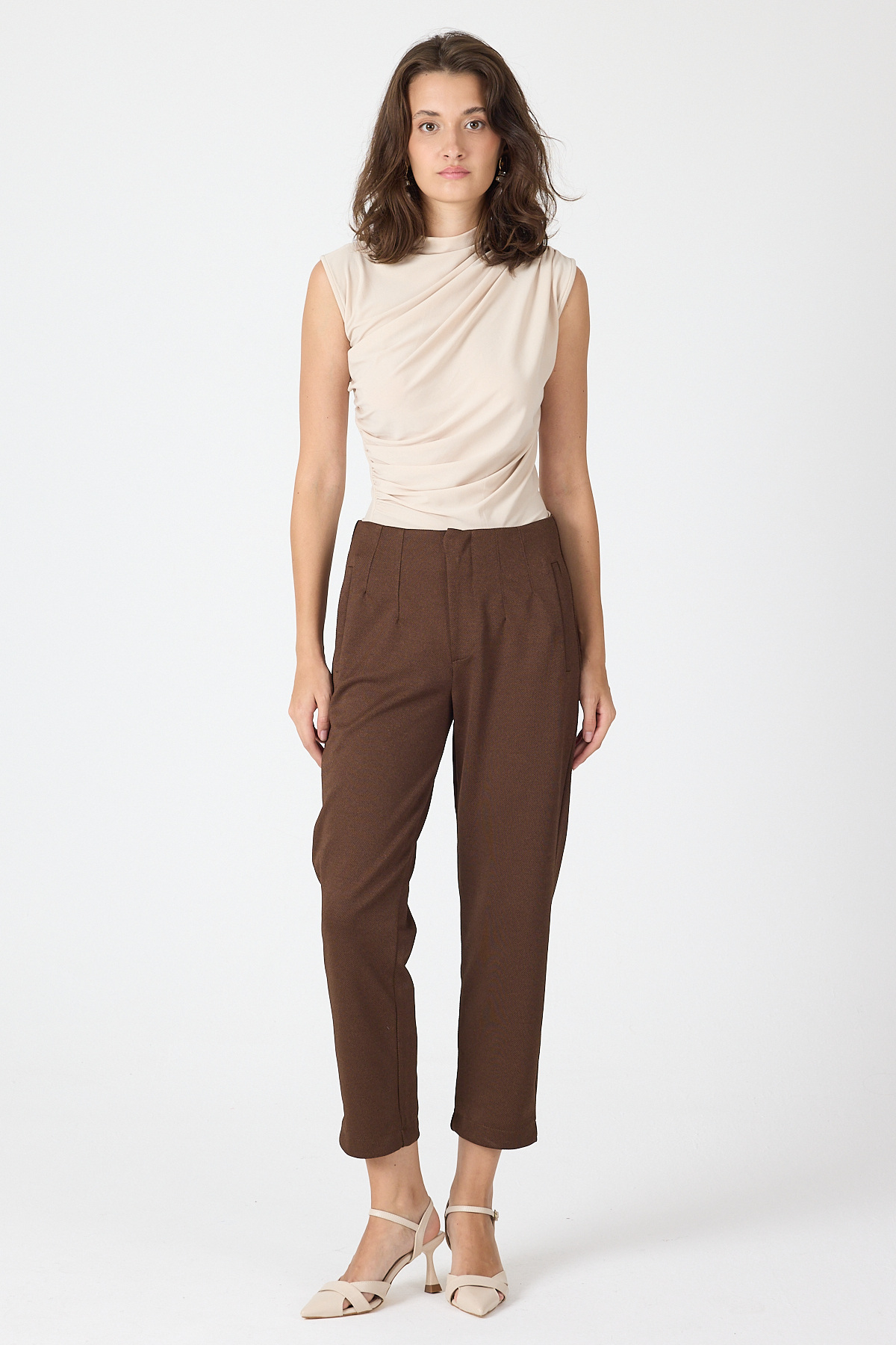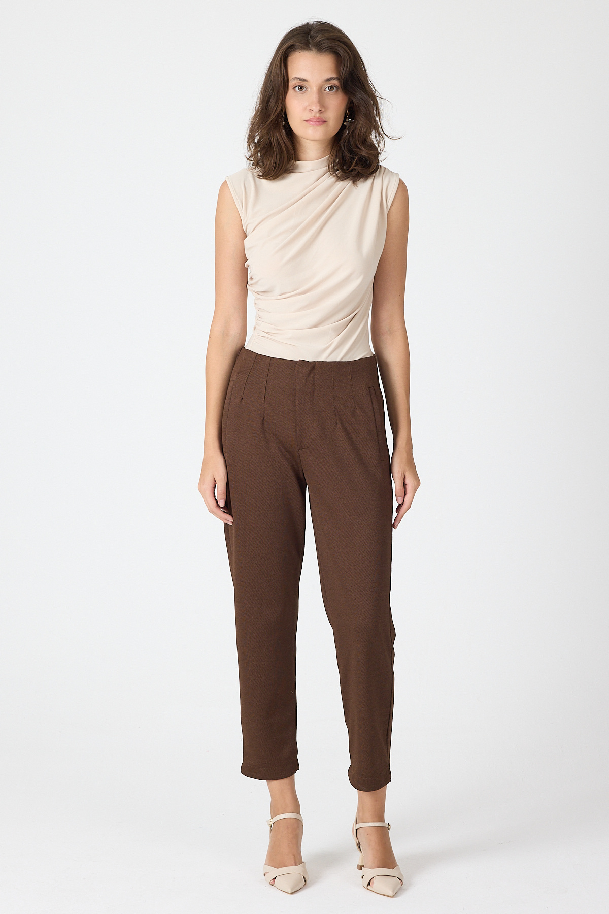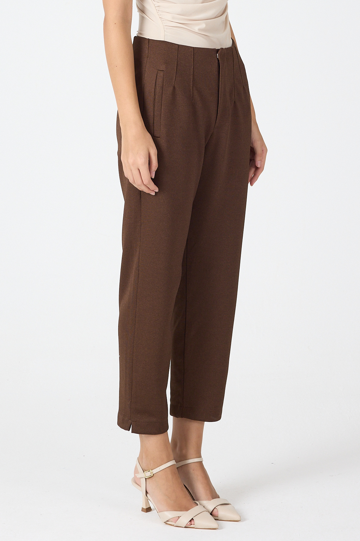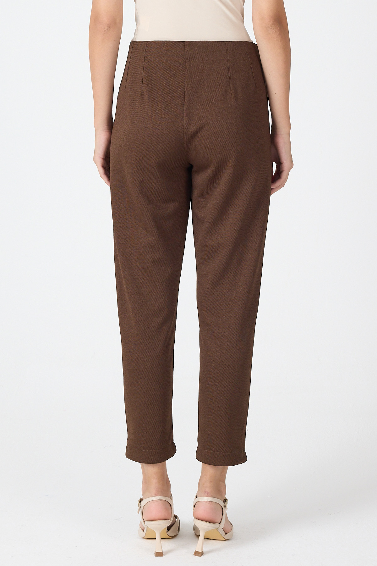 Kahve Yüksek Bel Pens Detaylı Kadın Pantolon 8122A