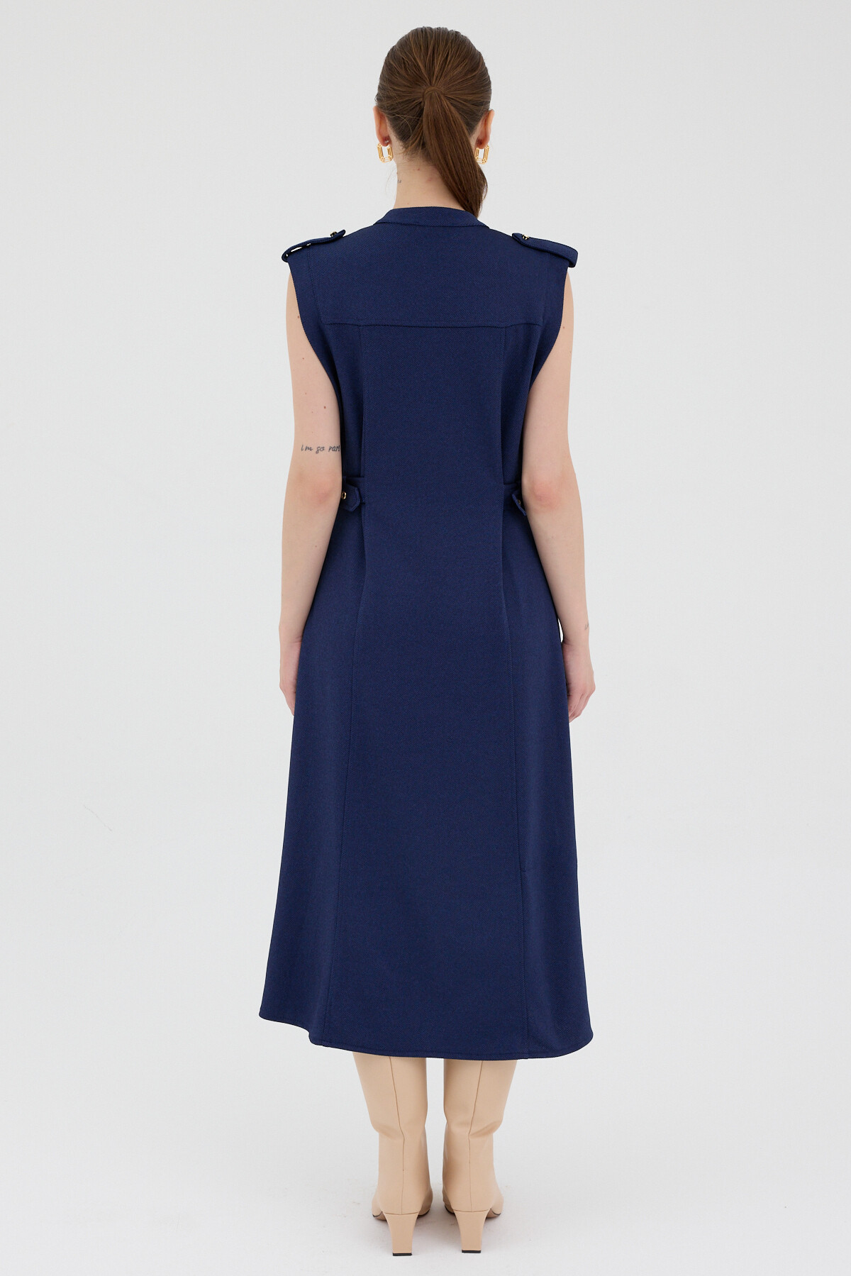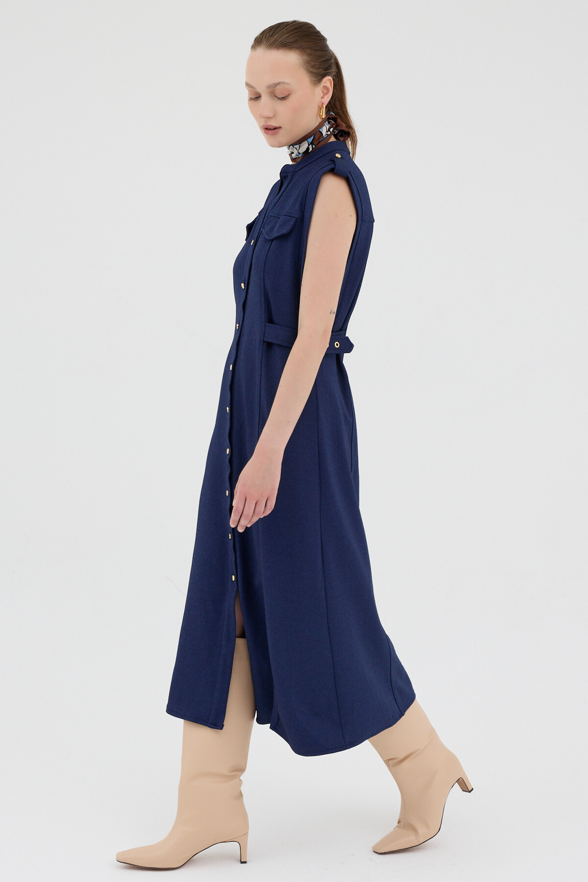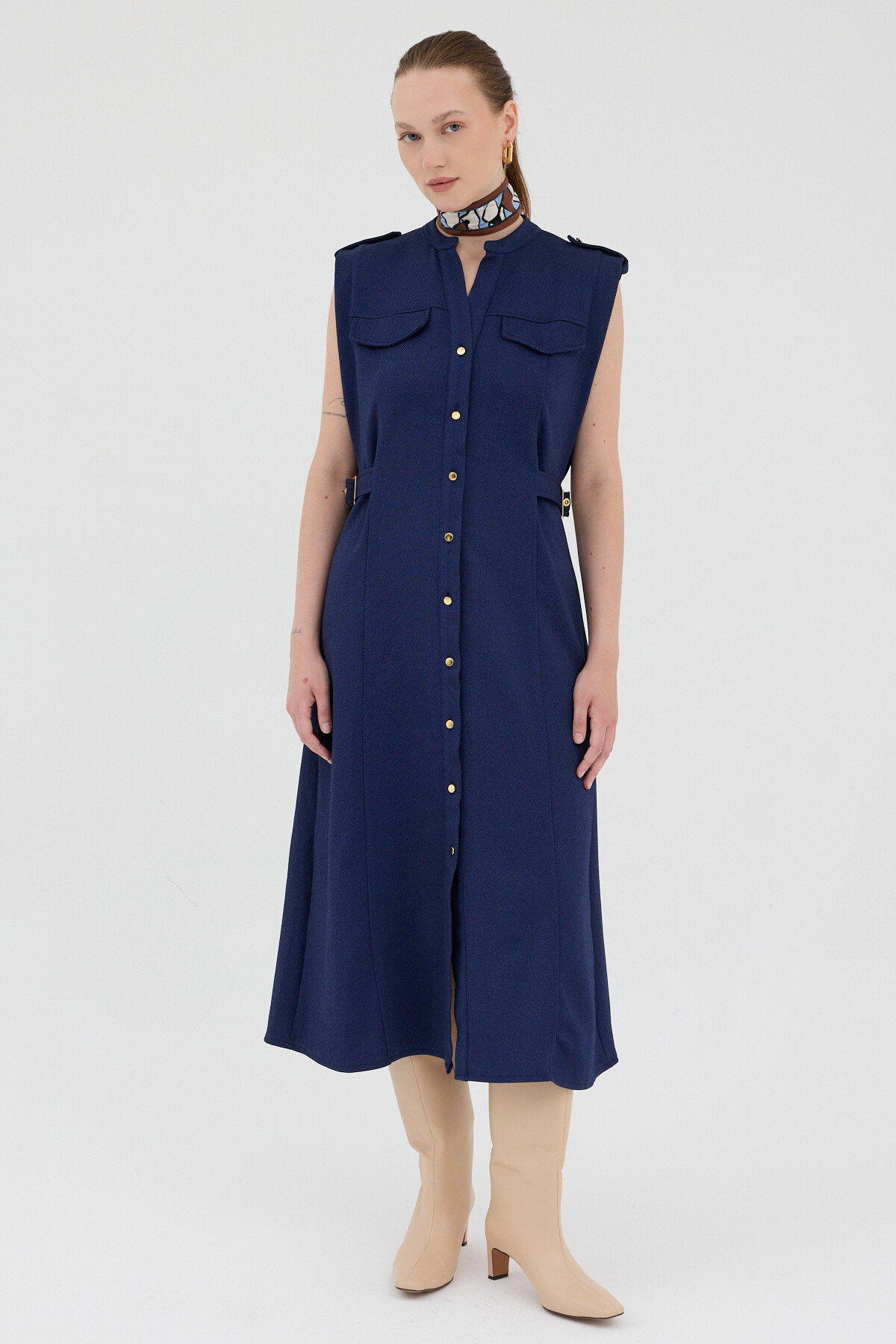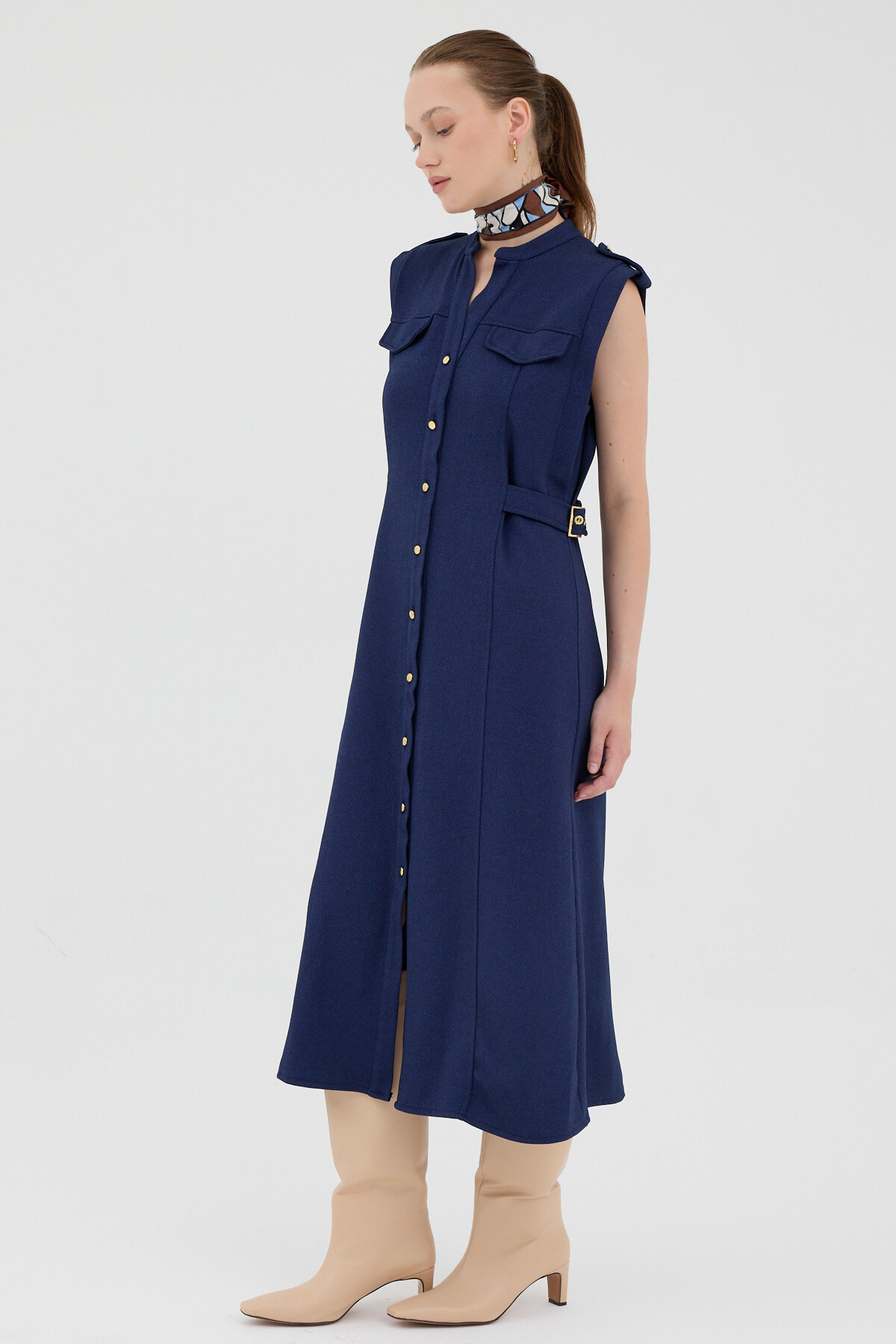 Laci Gold Düğme Detaylı Midi Elbise 8125A