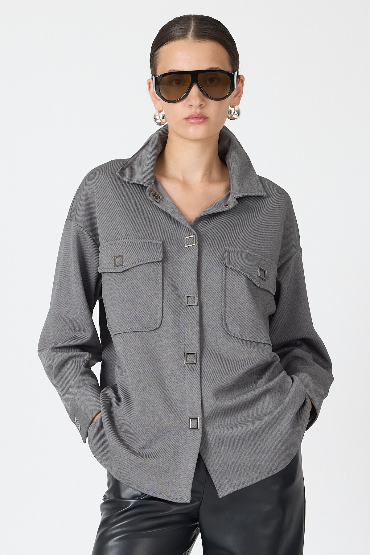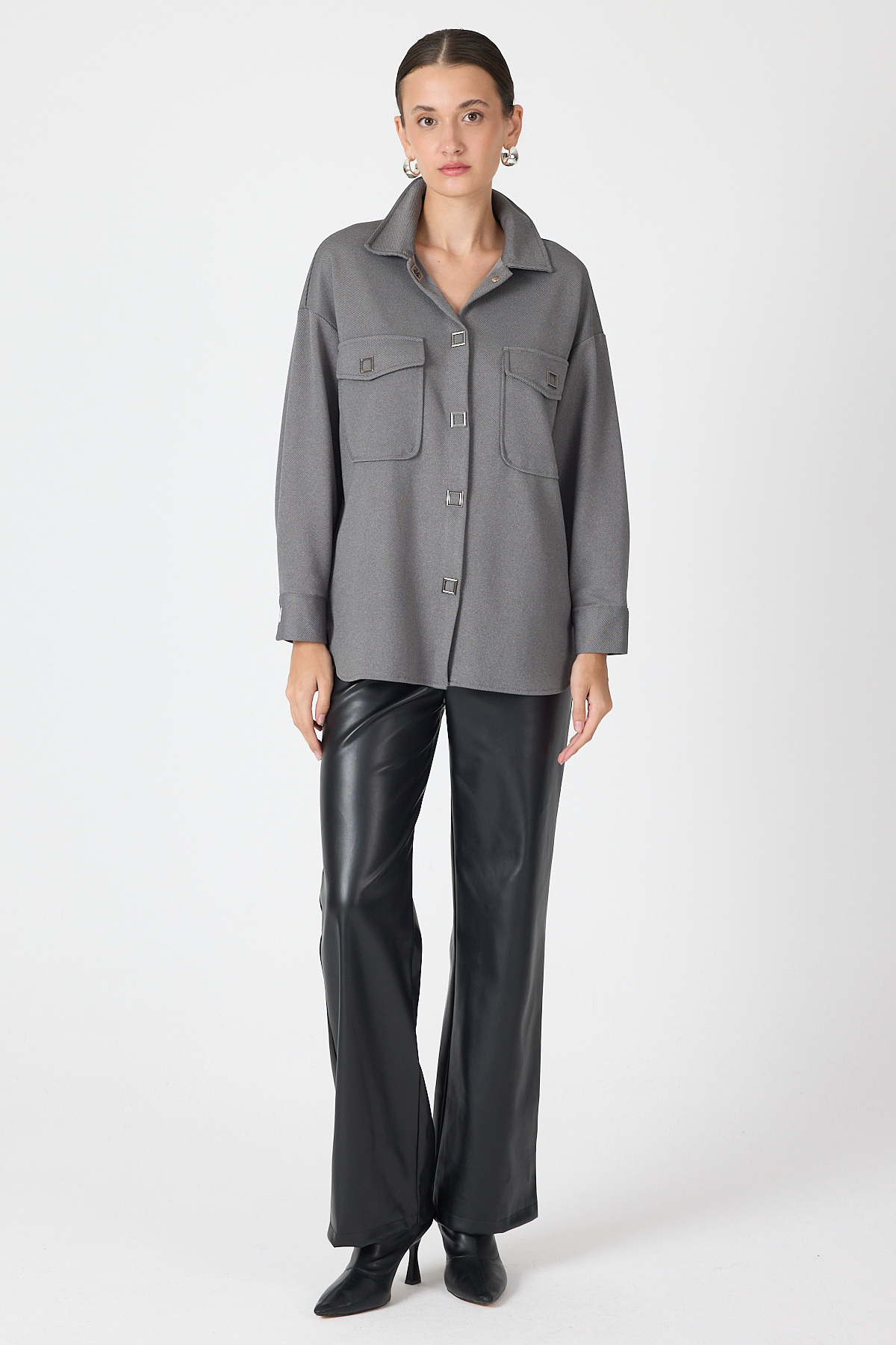 Antrasit Oversize Cepli Kadın Gömlek Ceket 8130A