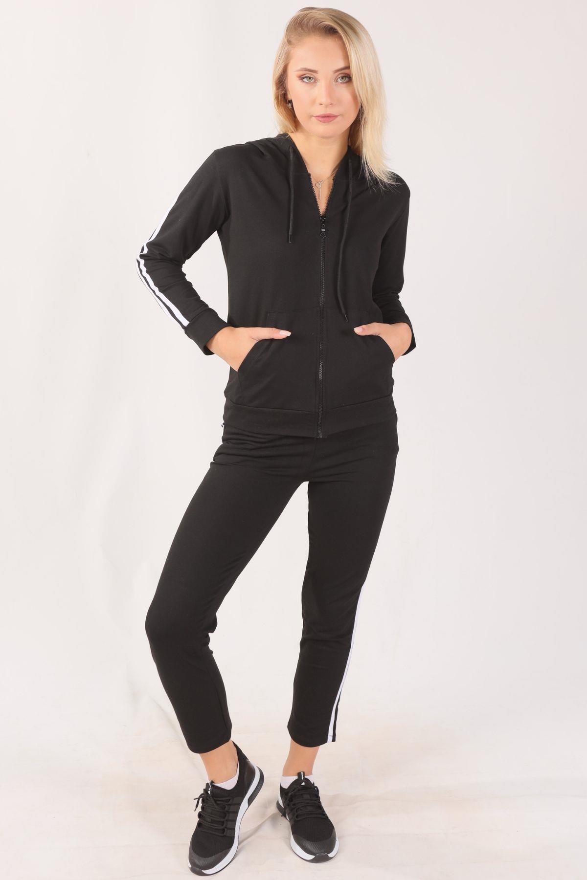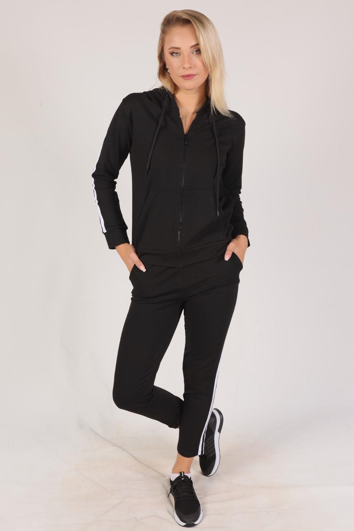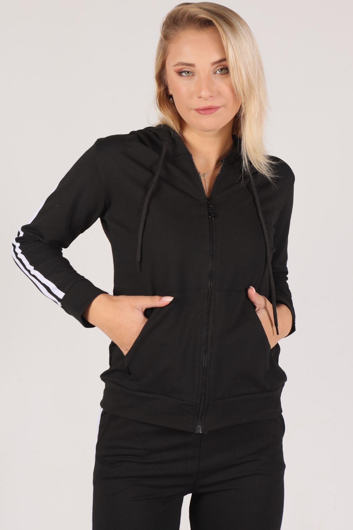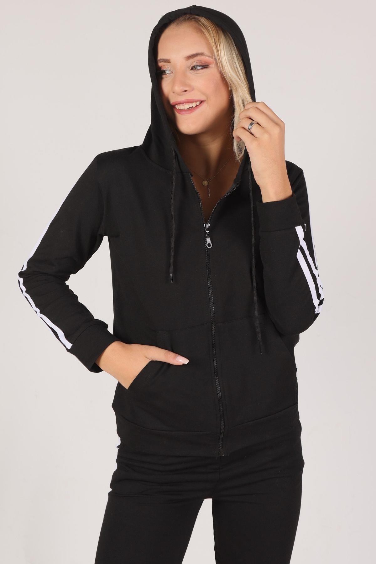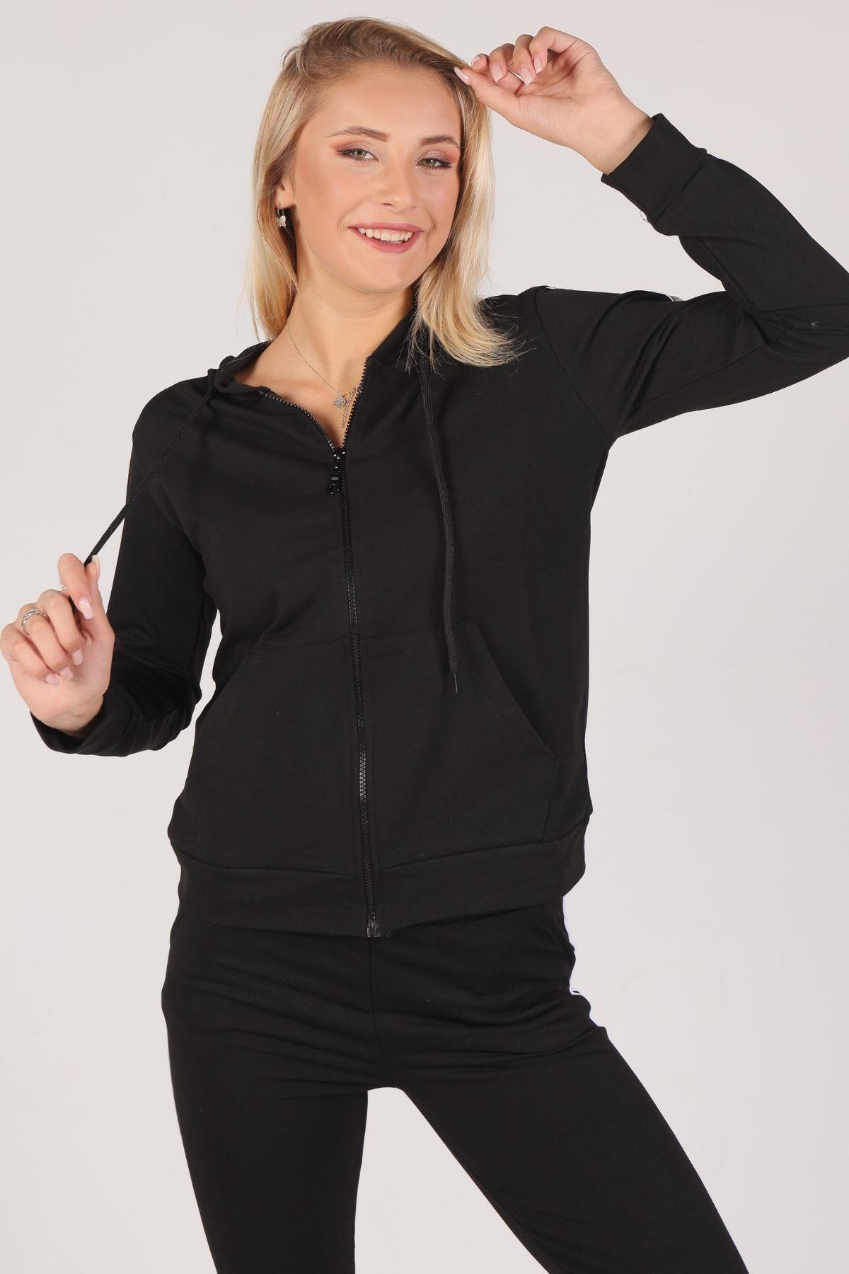 Siyah Fermuarlı Kapüşonlu Eşofman Takımı 8130M