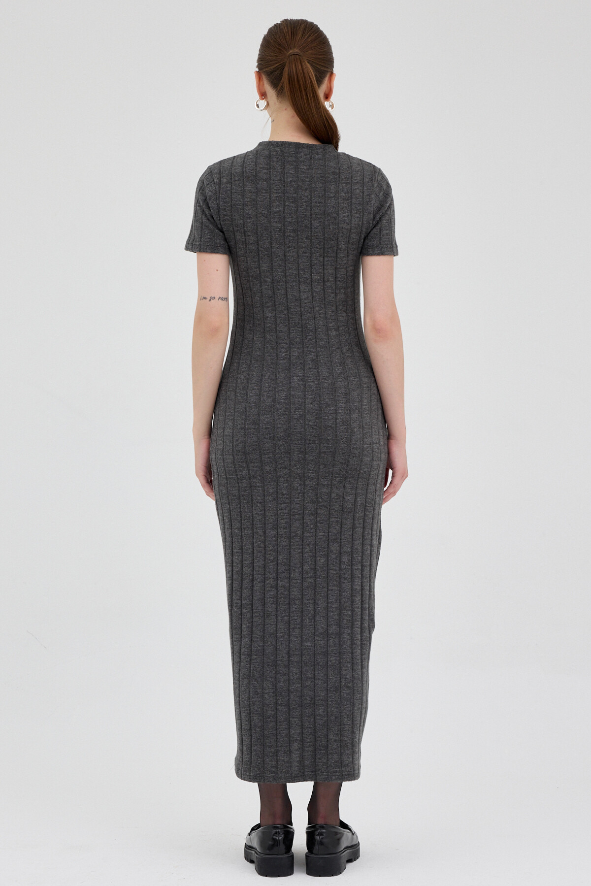 Antrasit Kısa Kol Fitilli Dar Elbise 8131A