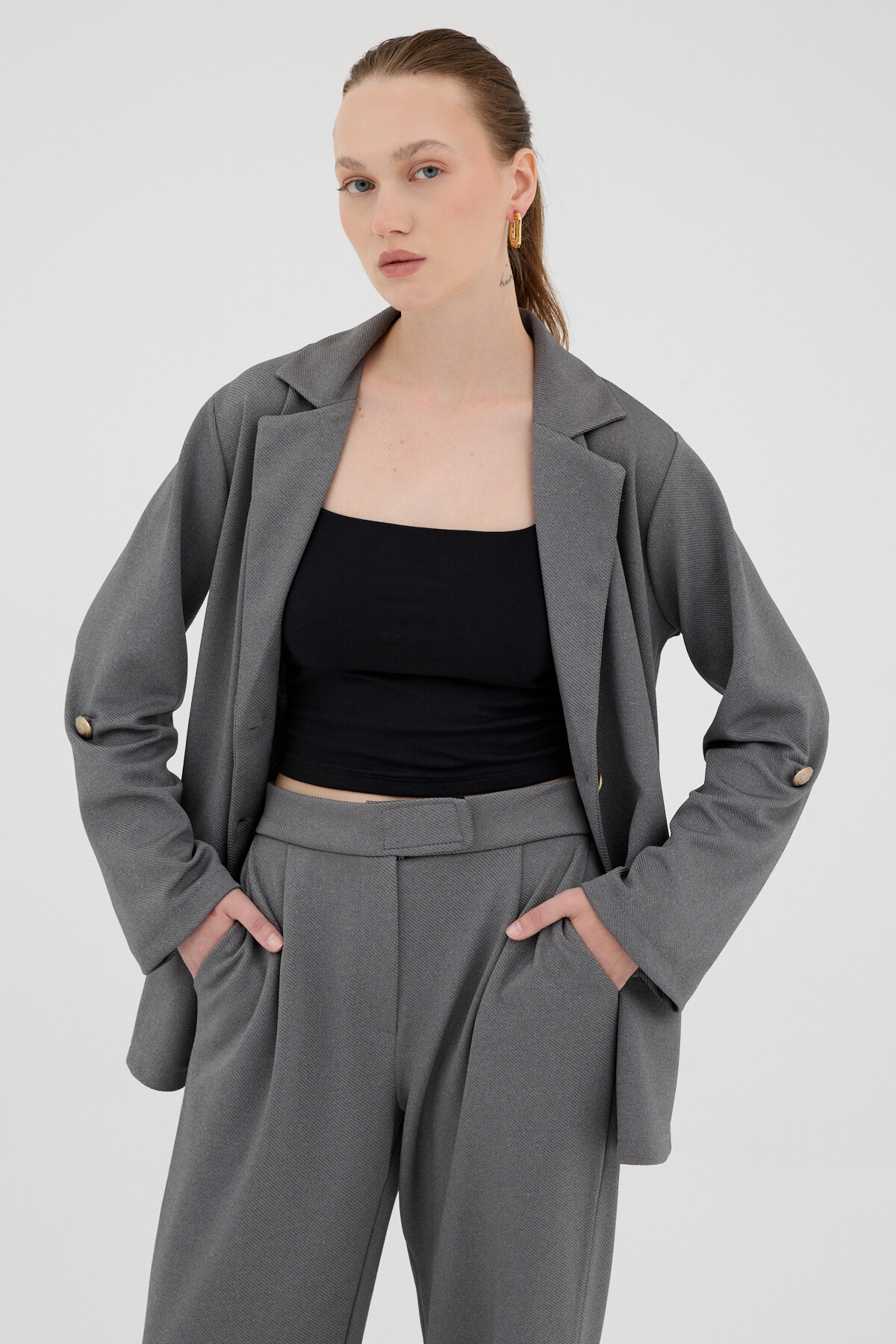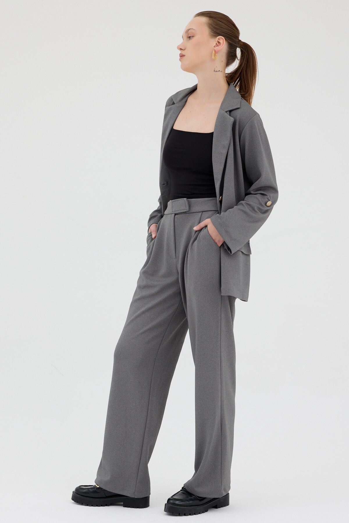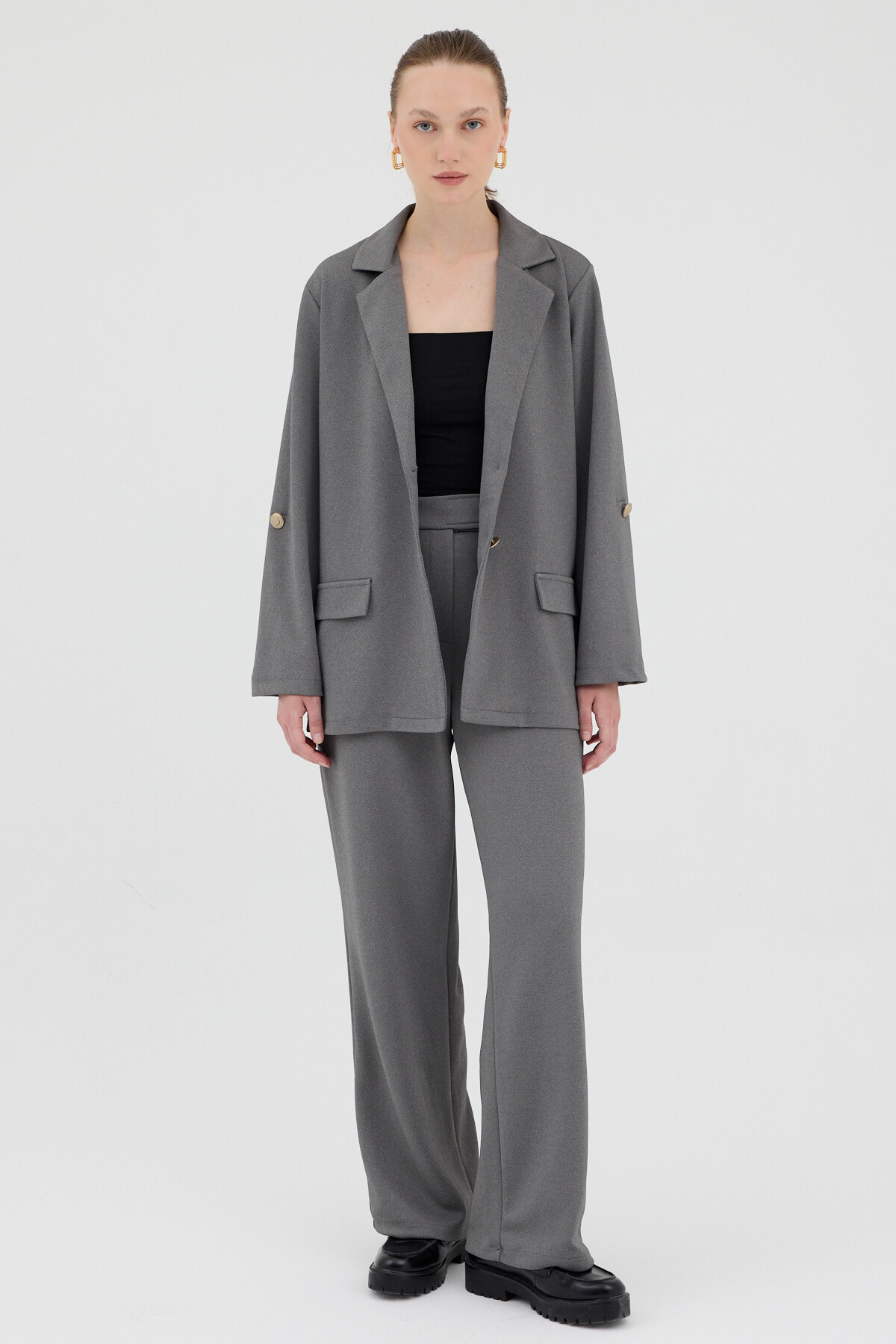 Antrasit Kadın Ceket ve Pantolon Takımı 8134A