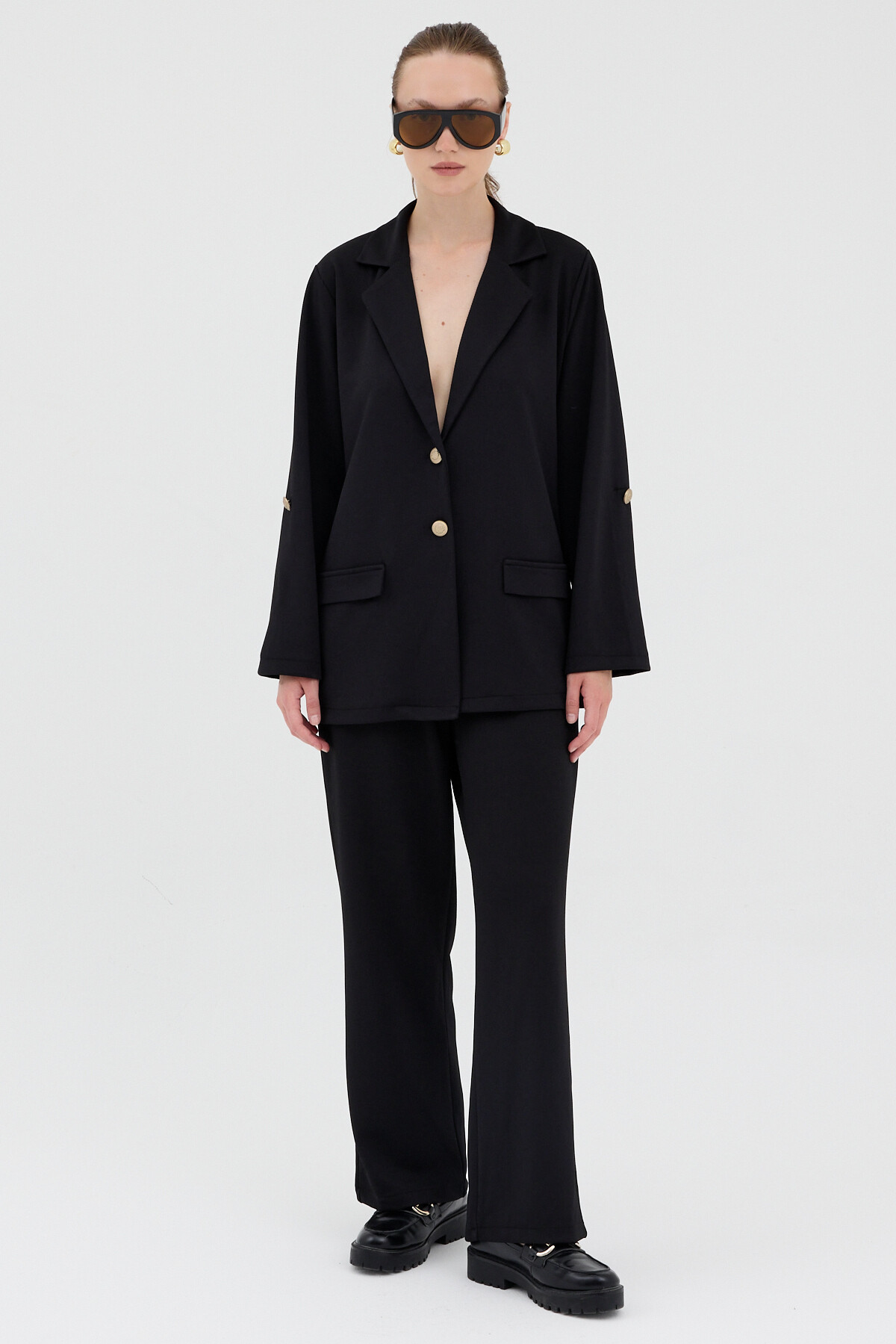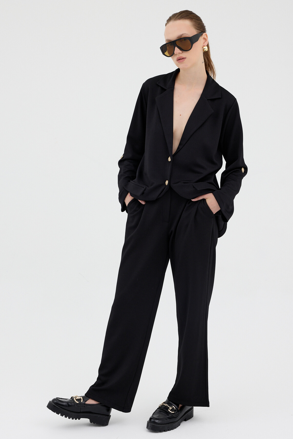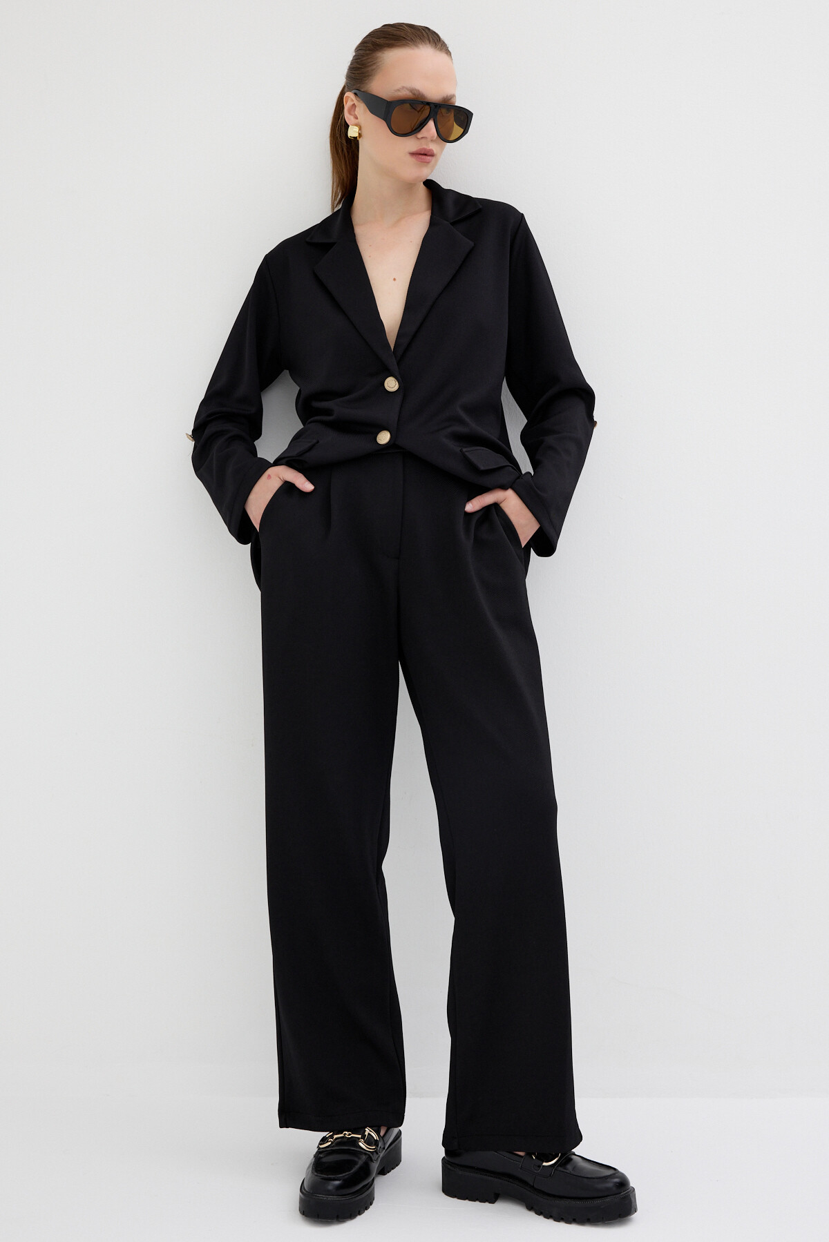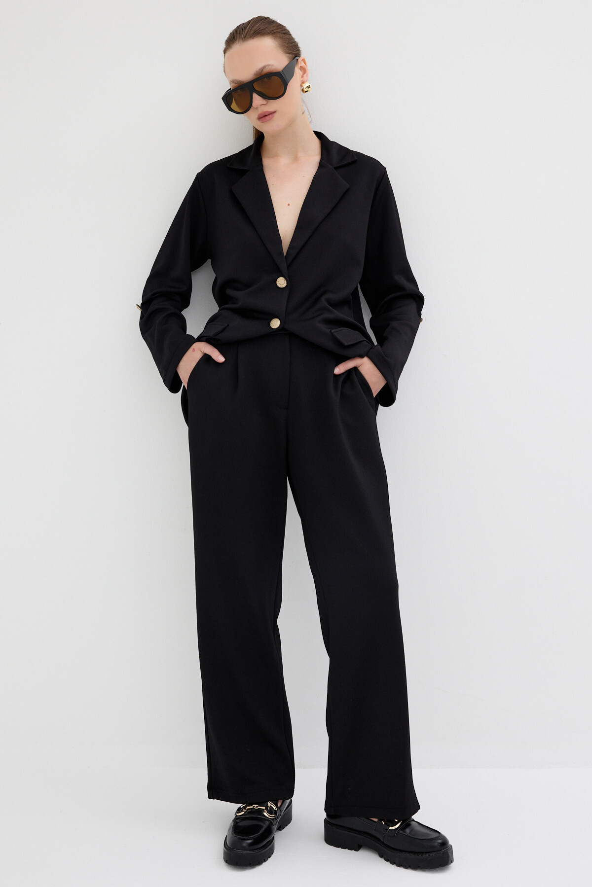 Siyah Kadın Ceket ve Pantolon Takımı 8134A