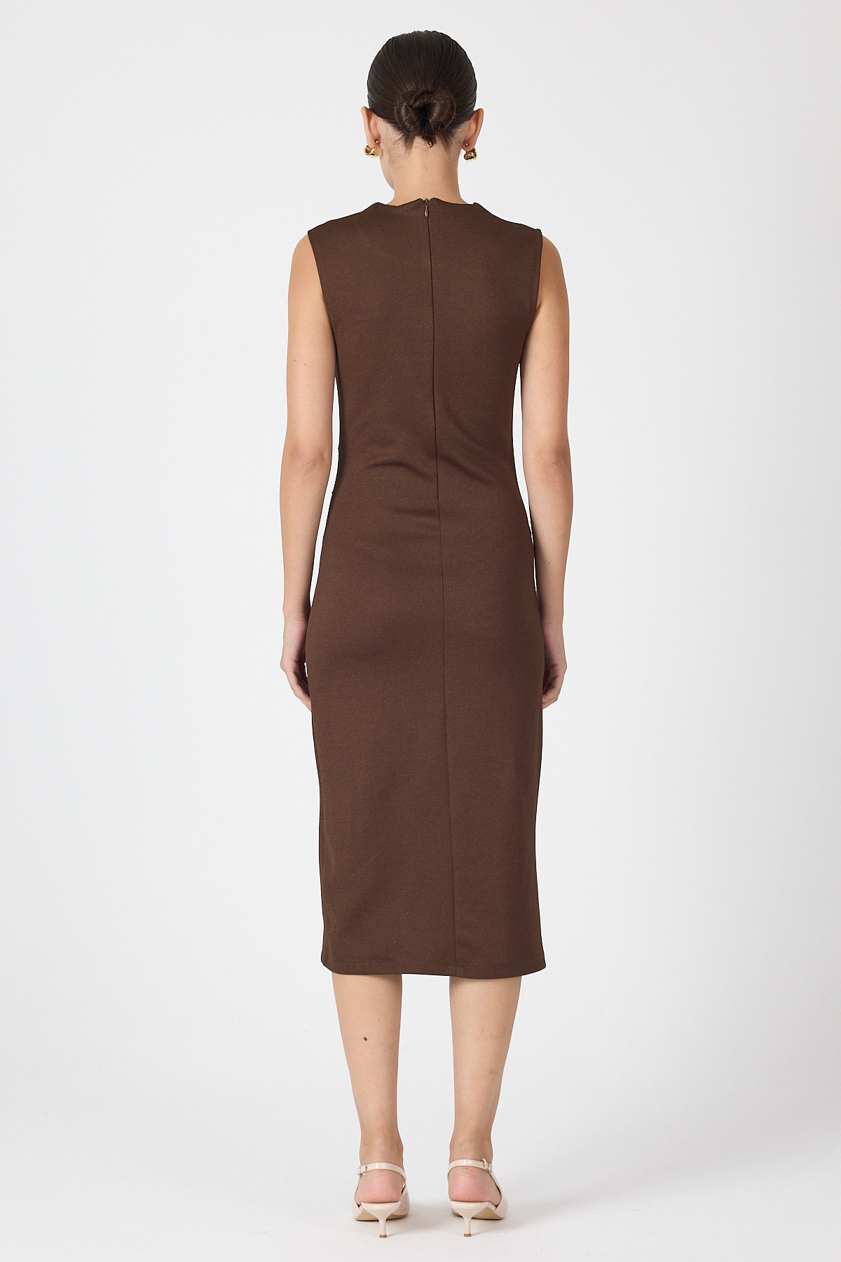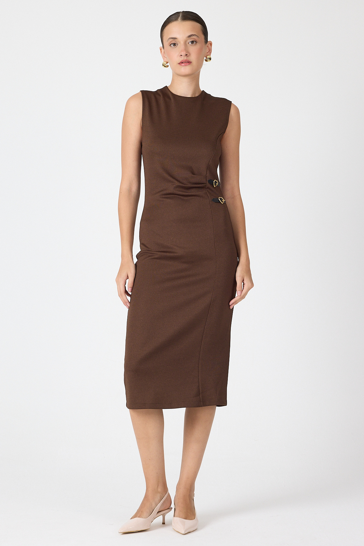 Kahve Gri Kalp Tokalı Midi Elbise 8144A