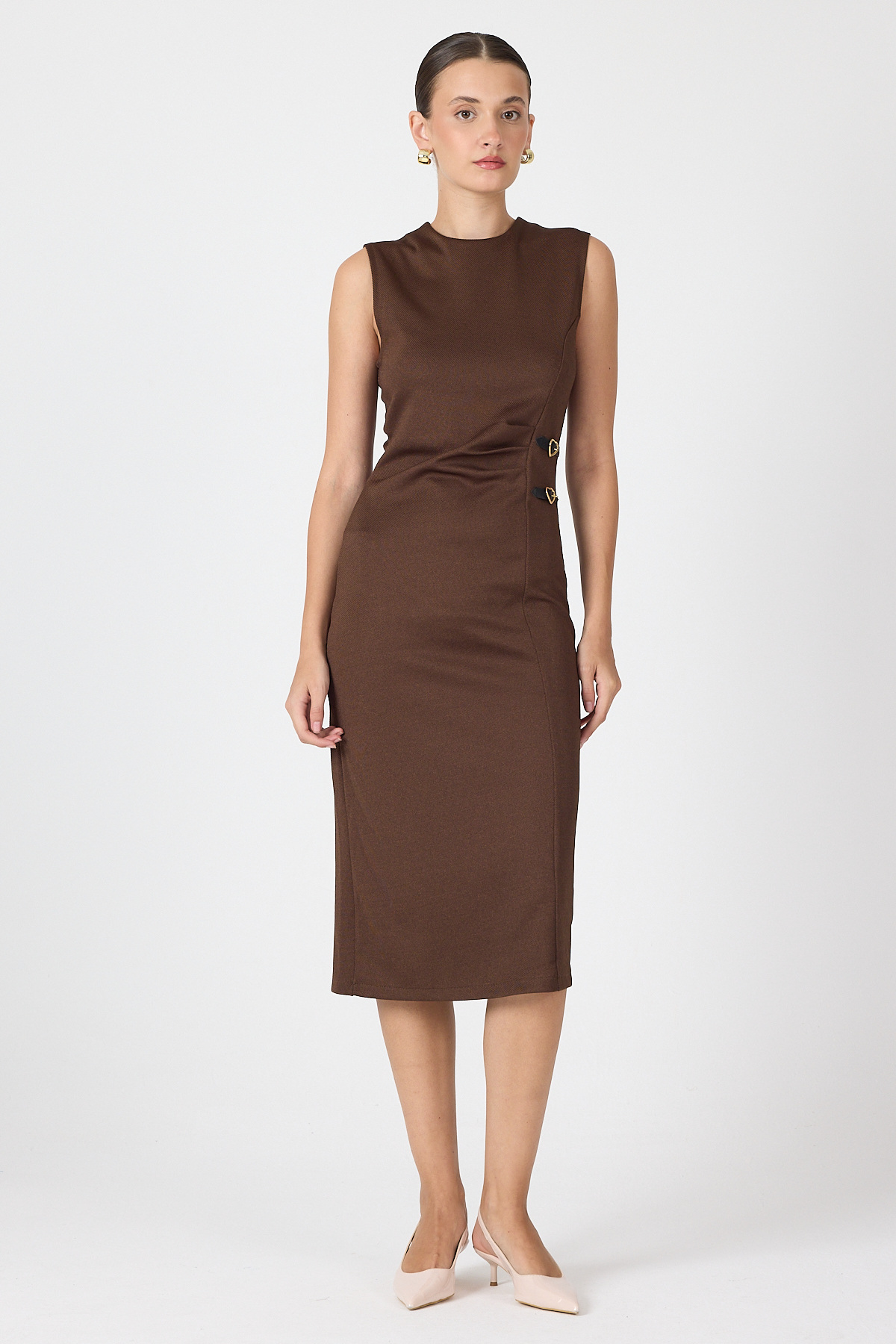 Kahve Düğmeli Kat Kat Elbise 2817 - RAYS Kahve Düğmeli Kat Kat Elbise 2817 - RAYS (1)