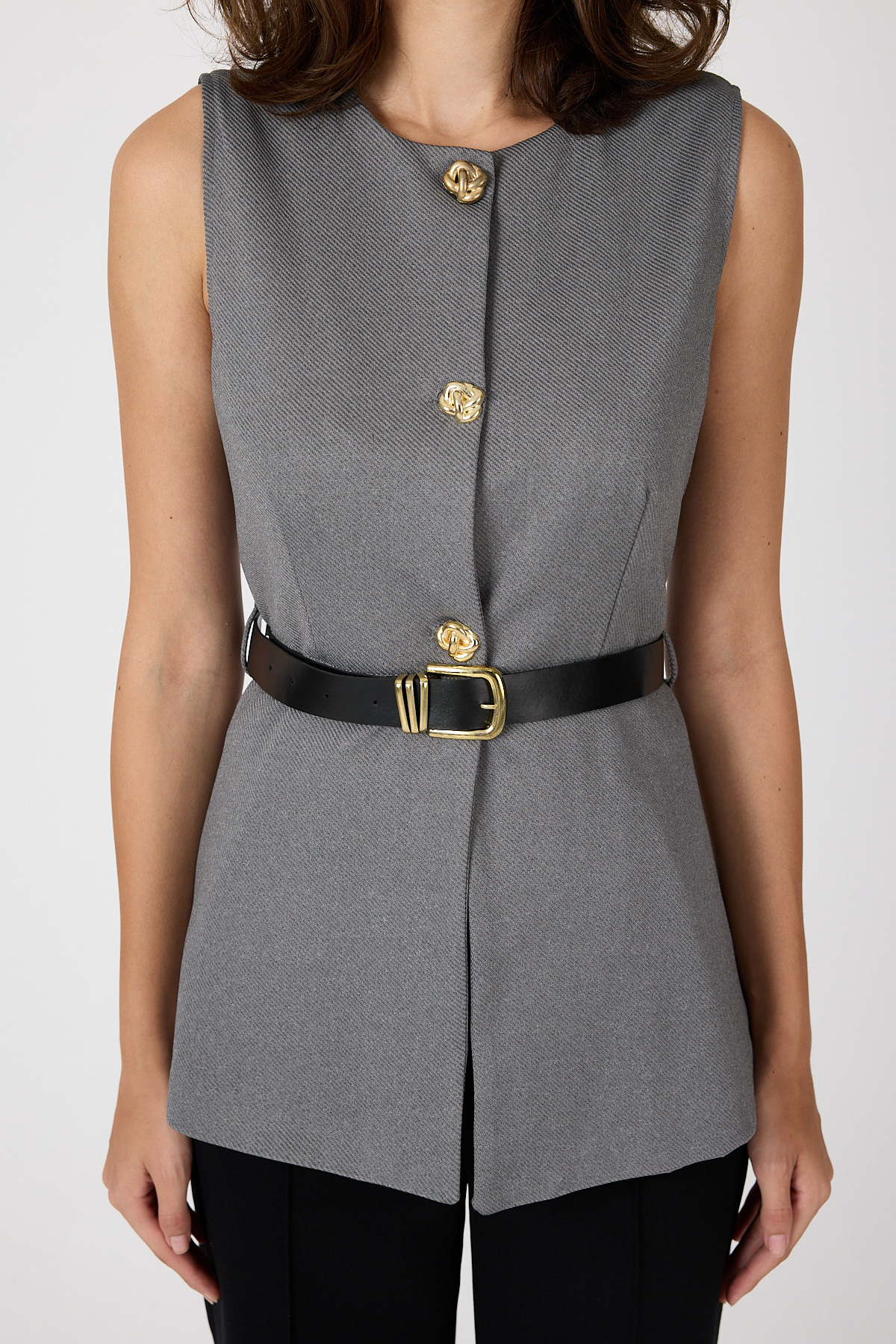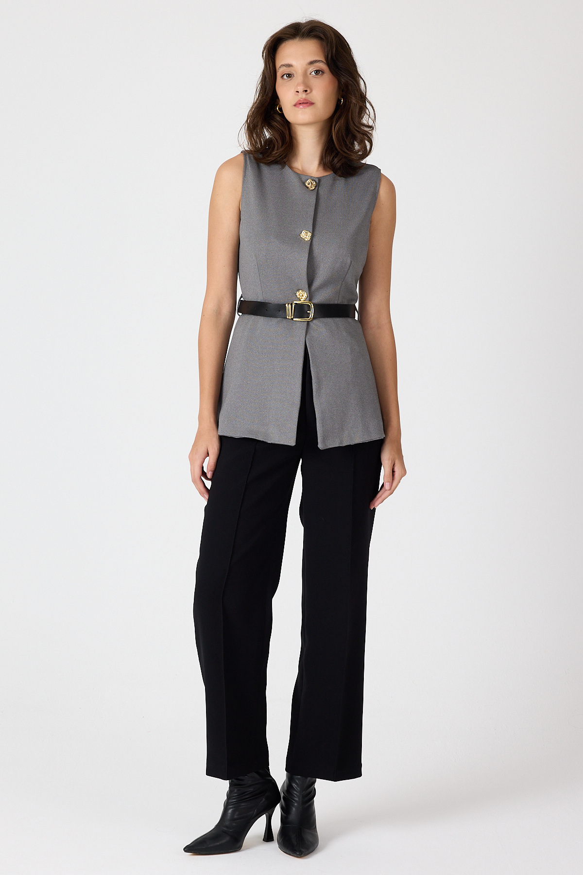 Antrasit Gold Düğmeli Kemerli Yelek 8145A