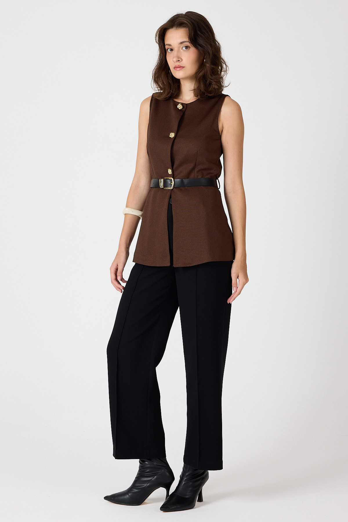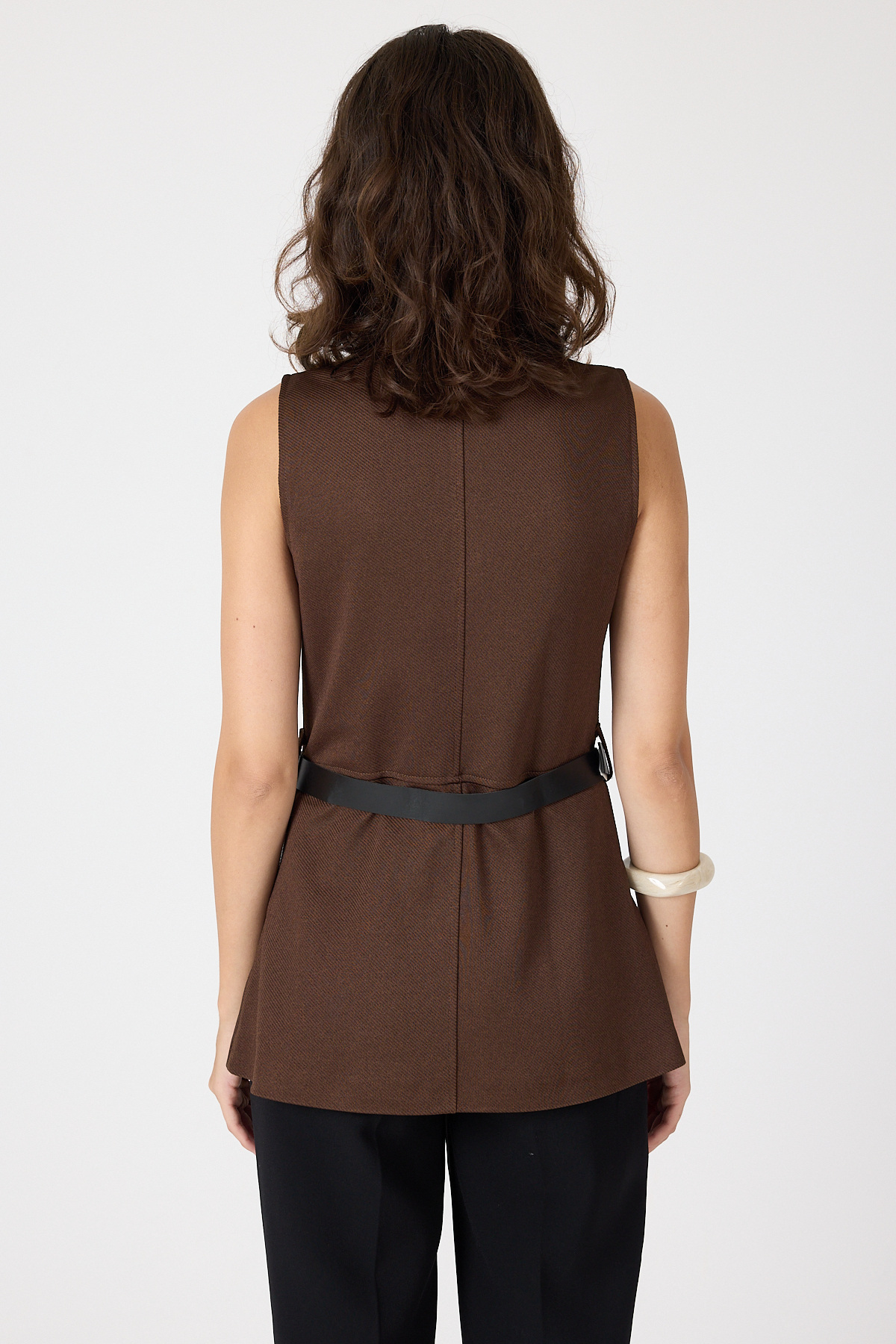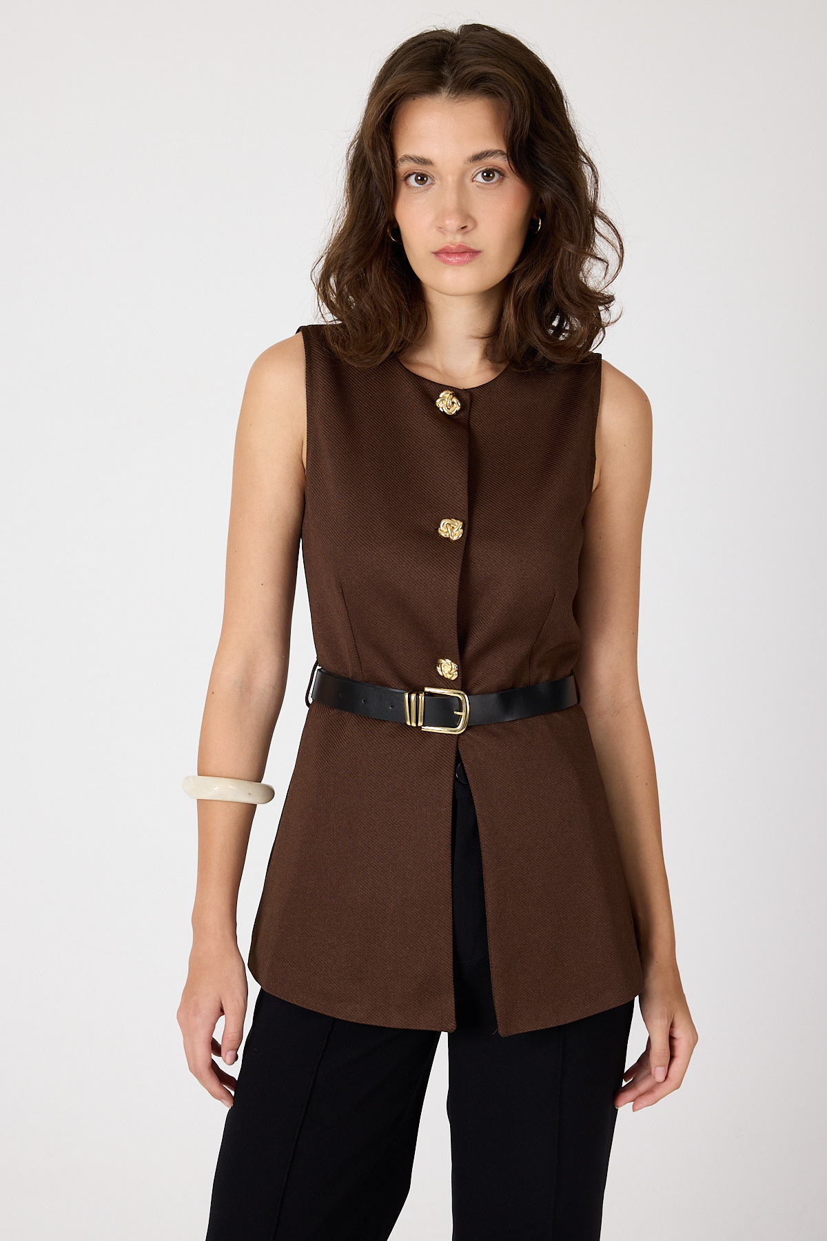 Kahve Gold Düğmeli Kemerli Yelek 8145A