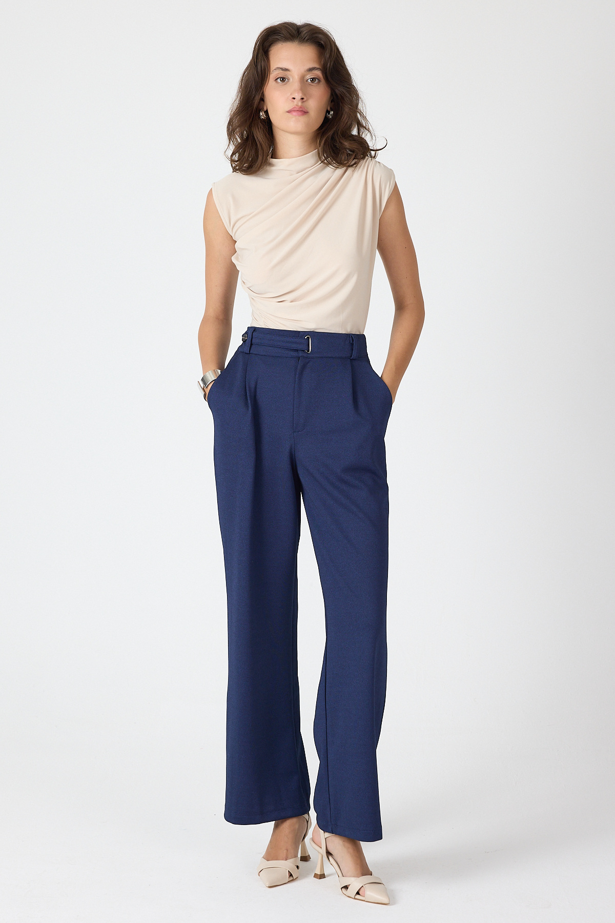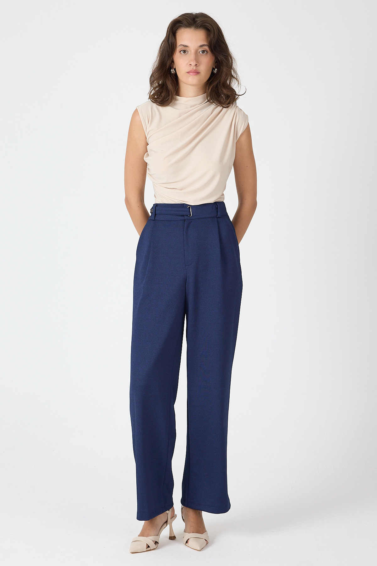 Laci Kemerli Yüksek Bel Bol Paça Kadın Pantolon 8147A