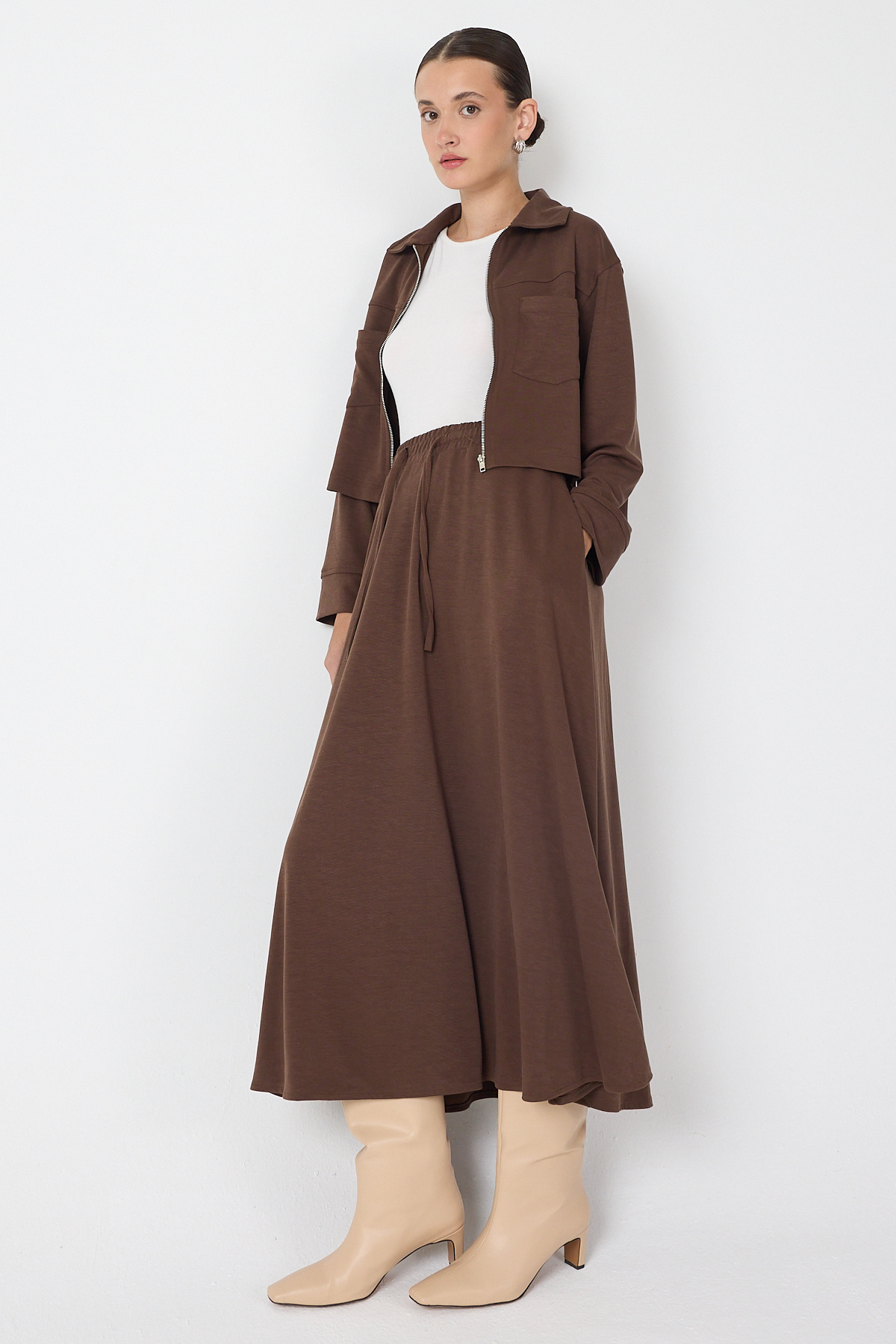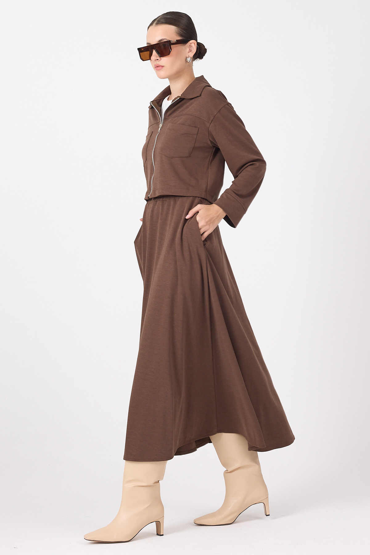 Kahve Yumuşak Dokulu Ceket Etek Takım 8150A