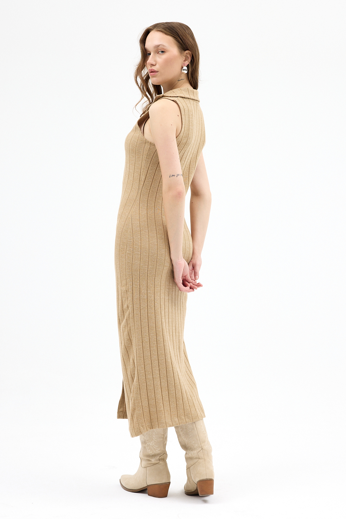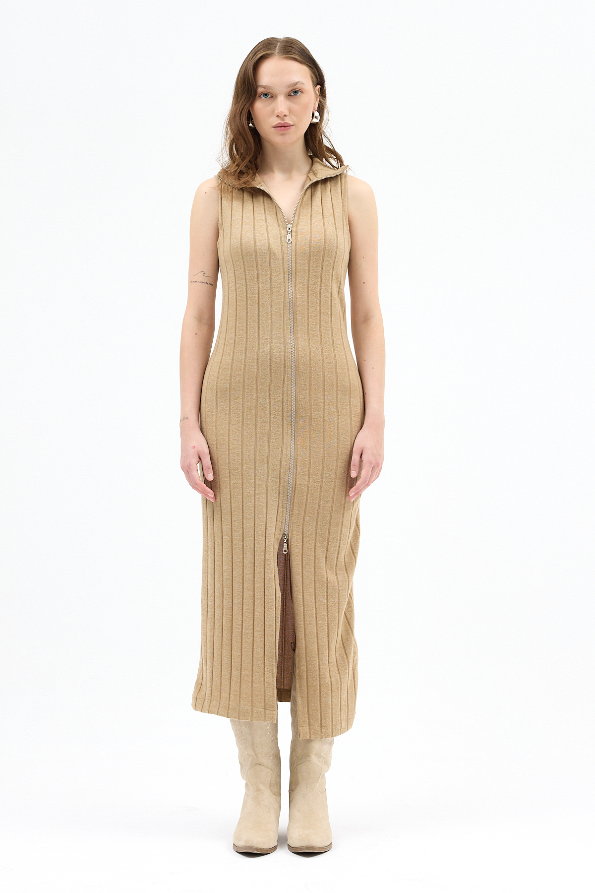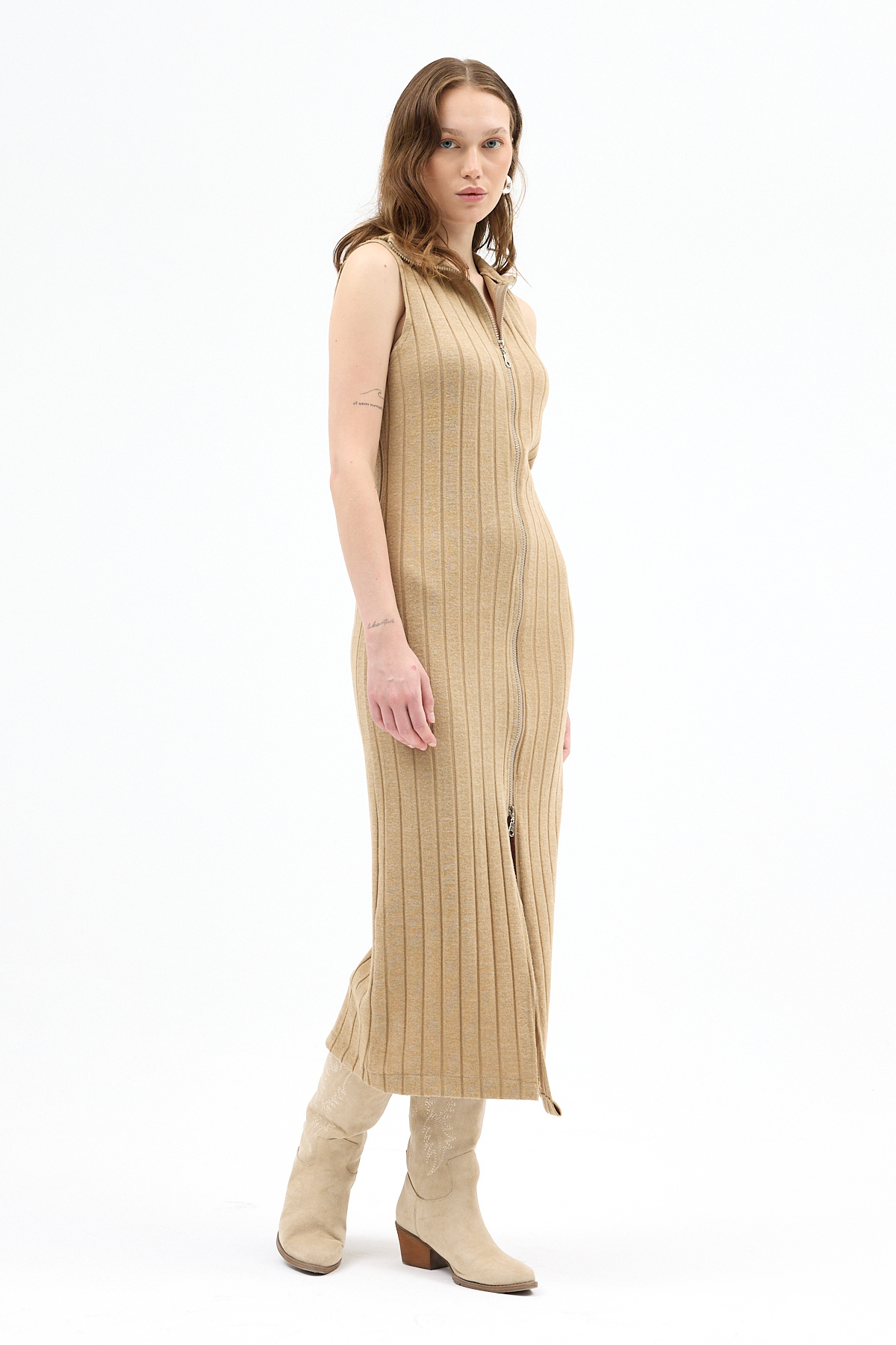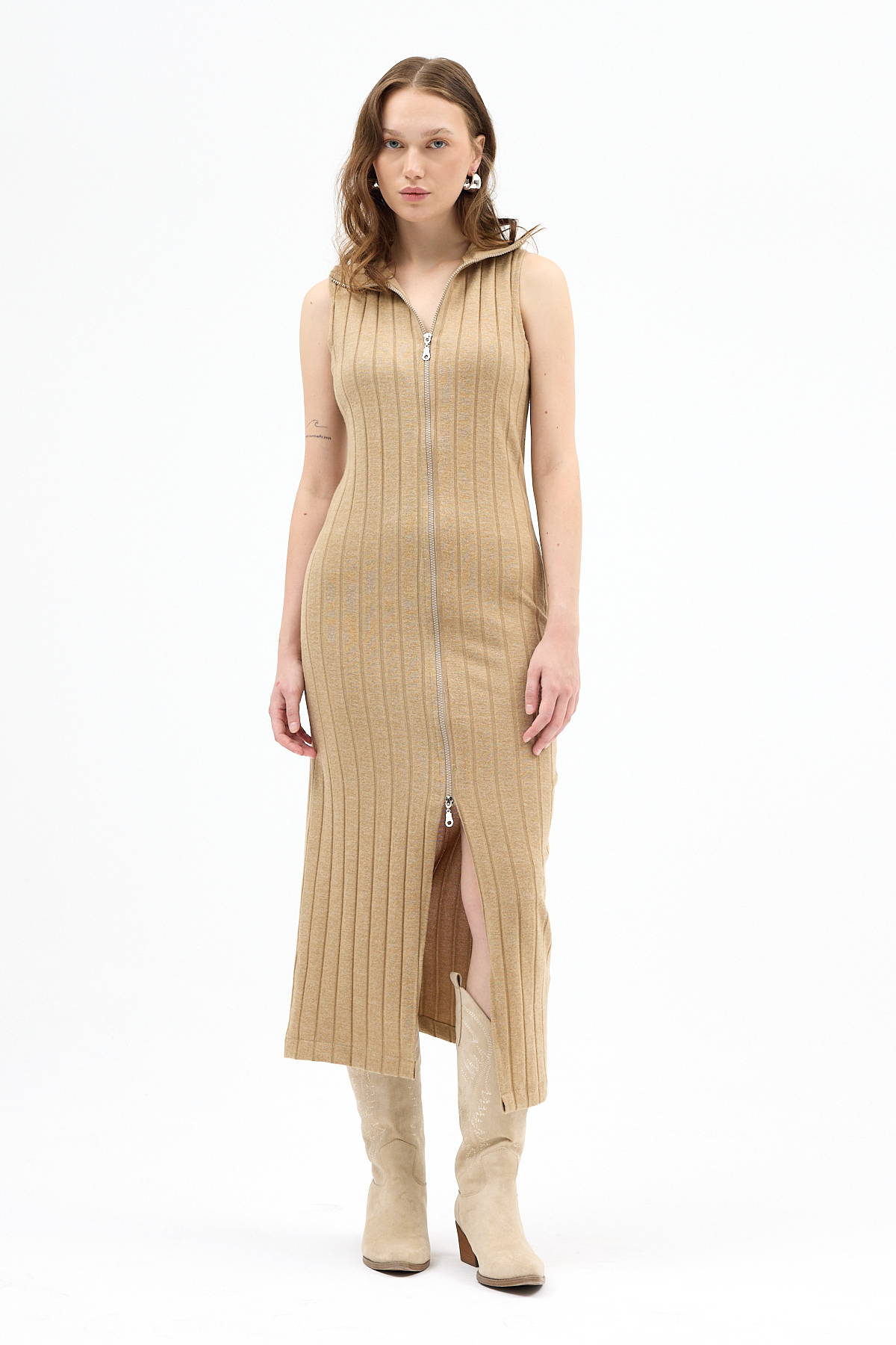 Vizon Fermuarlı Dik Yaka Triko Elbise 8152A