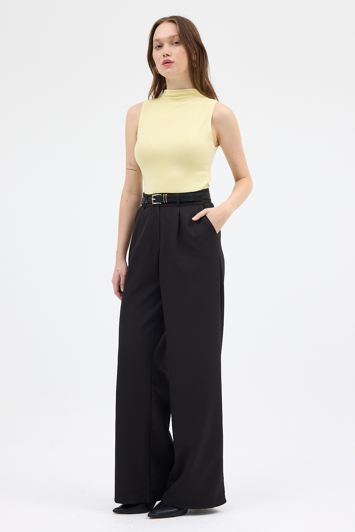 Sarı Kadın Kolsuz Yüksek Yaka Body 8155A