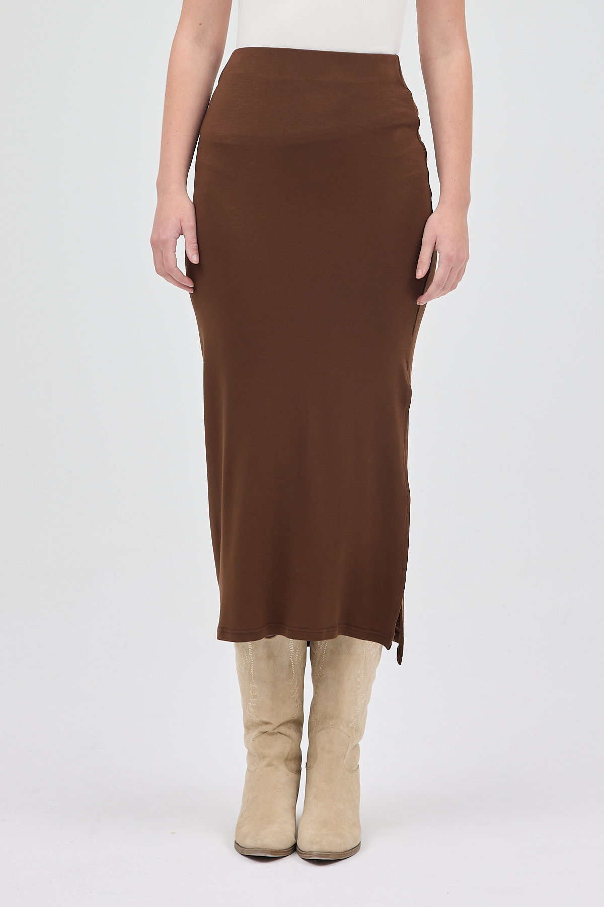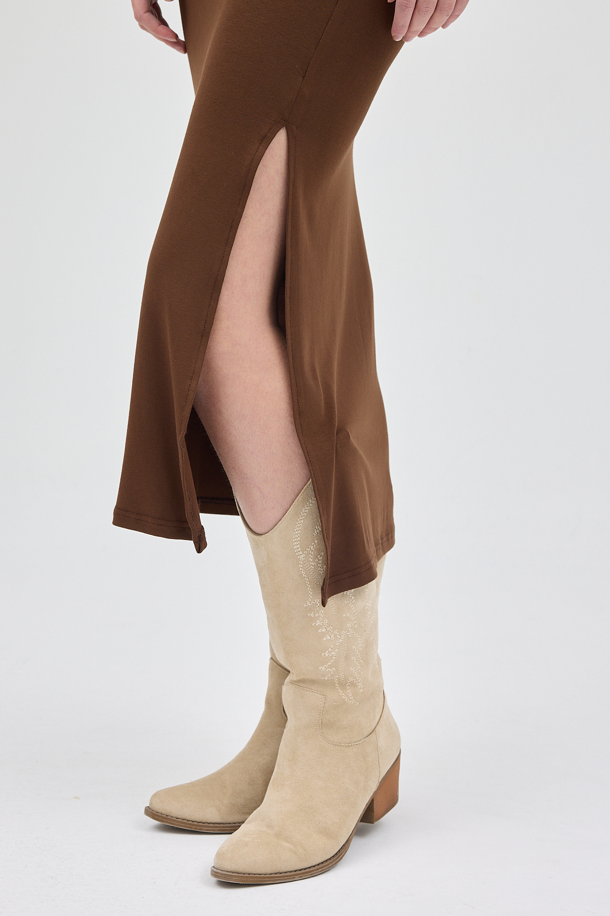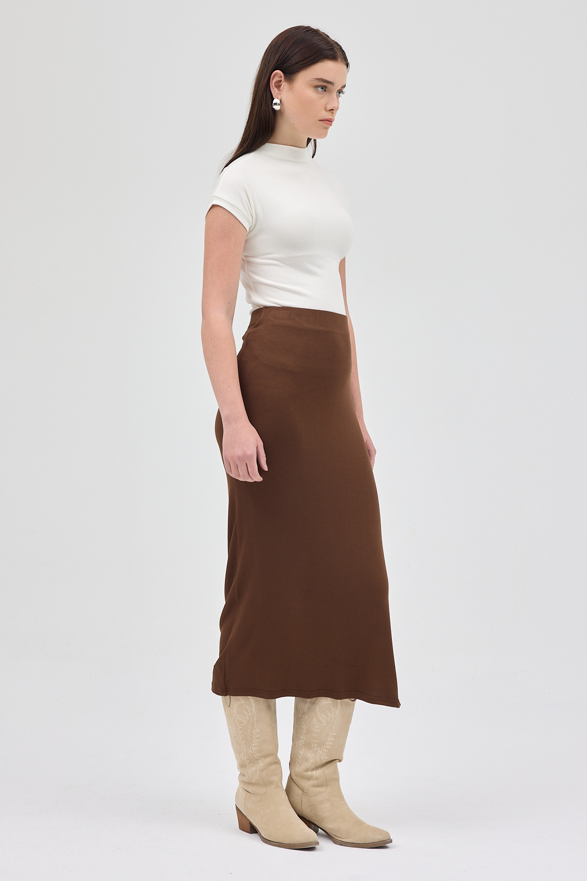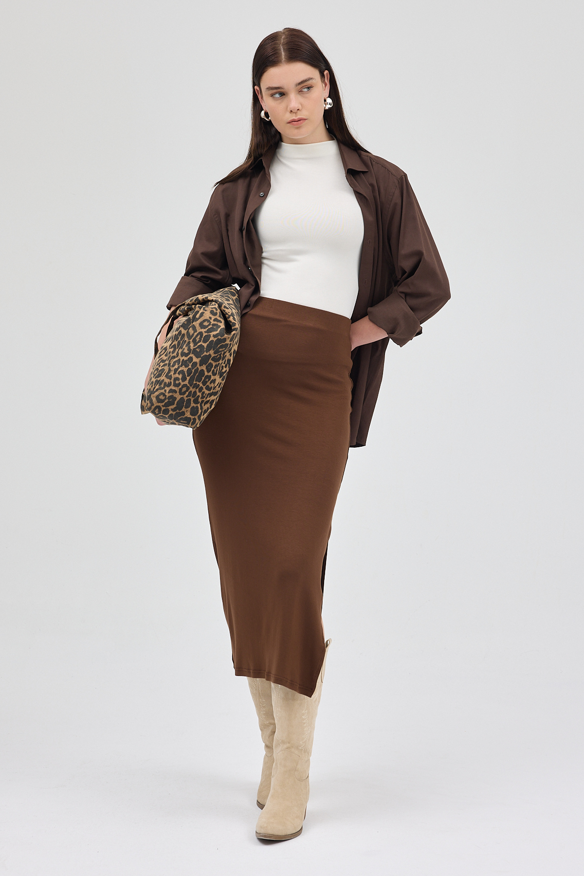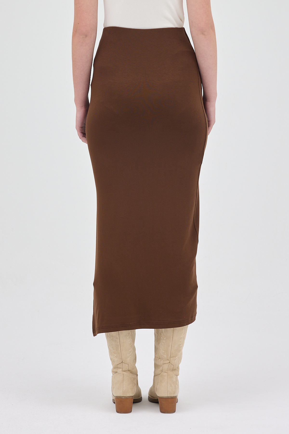 Kahve Likralı Uzun Lastik Bel Etek 8157A