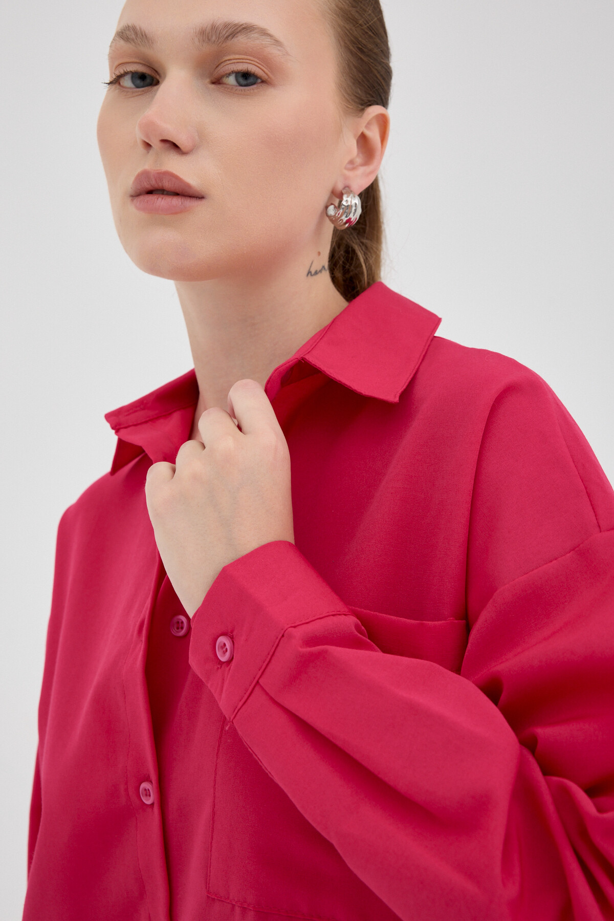 Fuşya Tek Cepli Oversize Gömlek 8158A